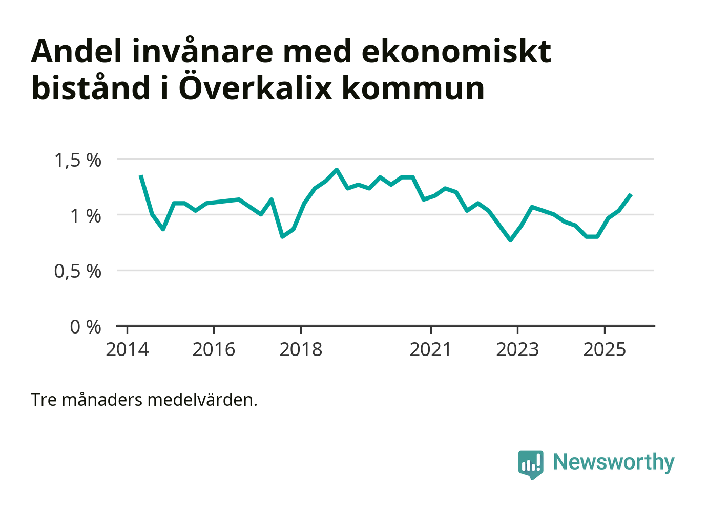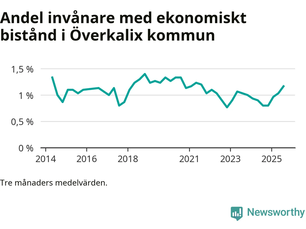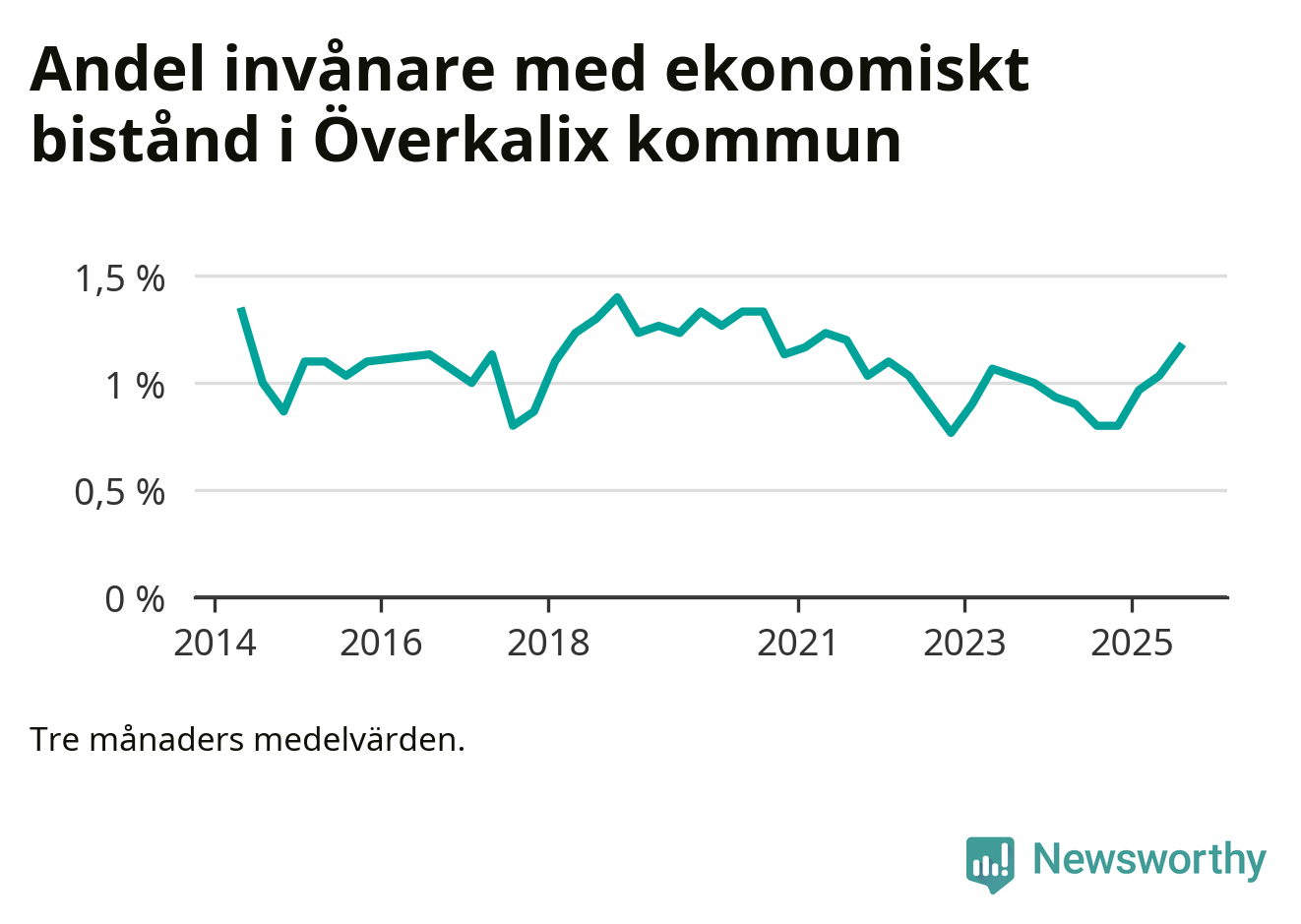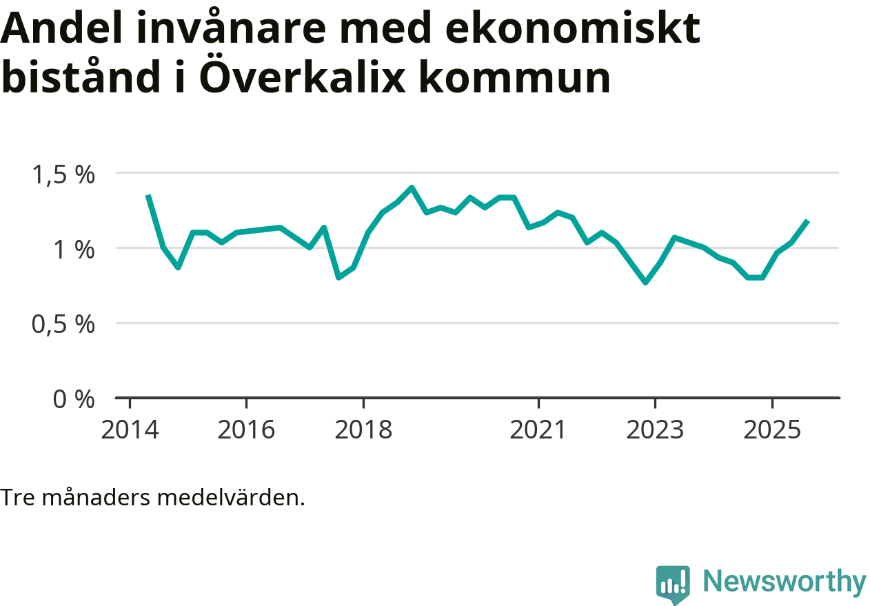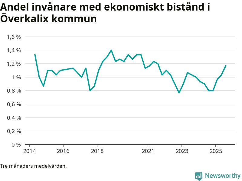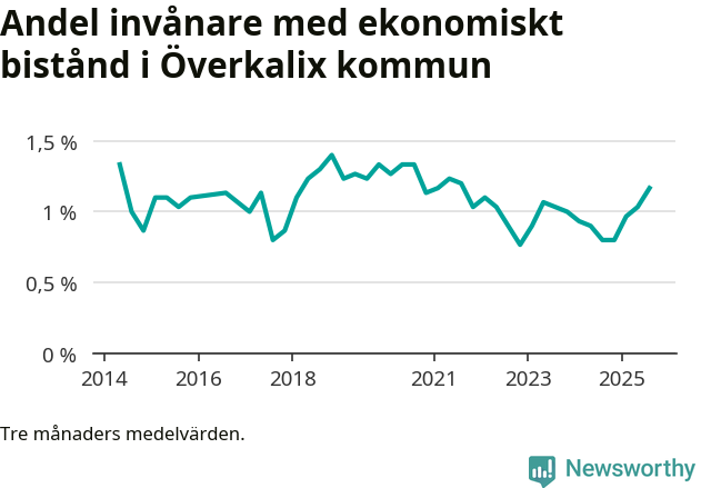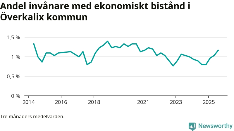 Andelen invånare med ekonomiskt bistånd i Överkalix kommun