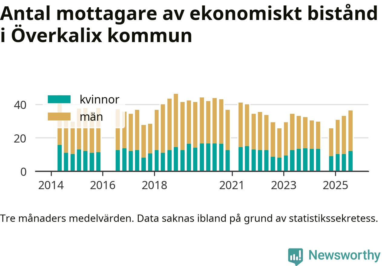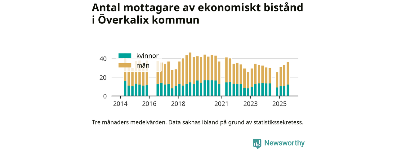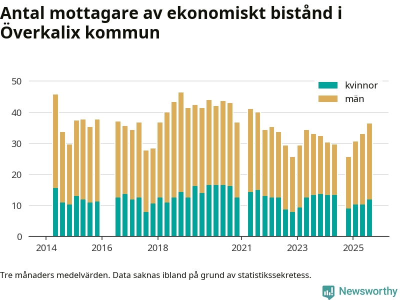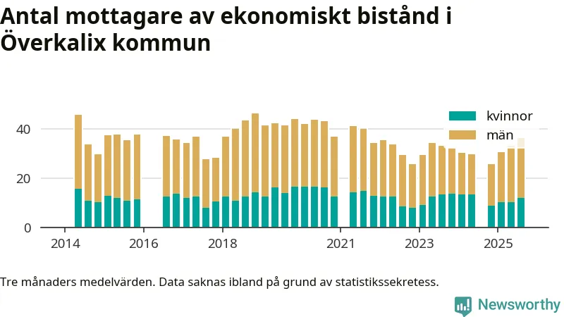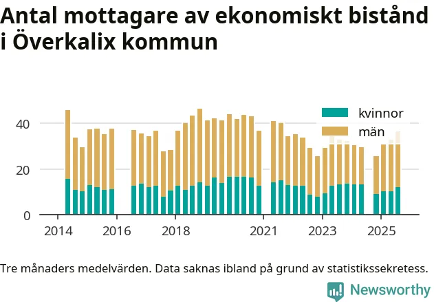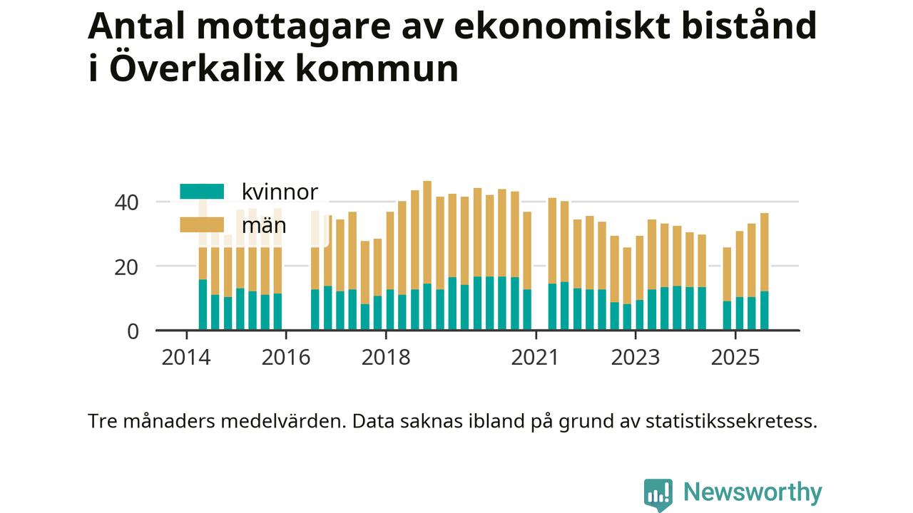I genomsnitt 36 personer per månad fick ekonomiskt bistånd i Överkalix kommun
