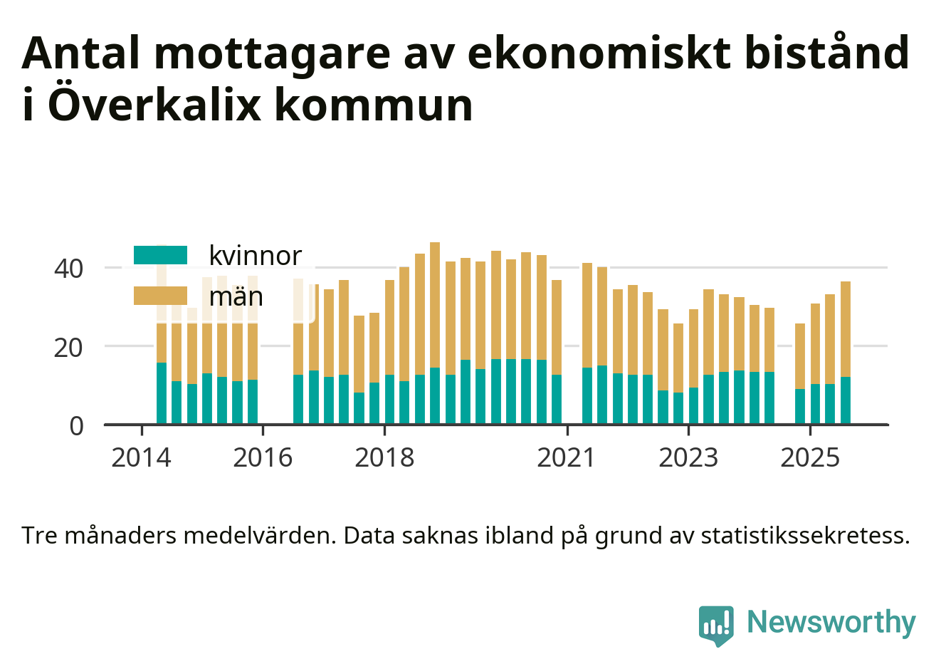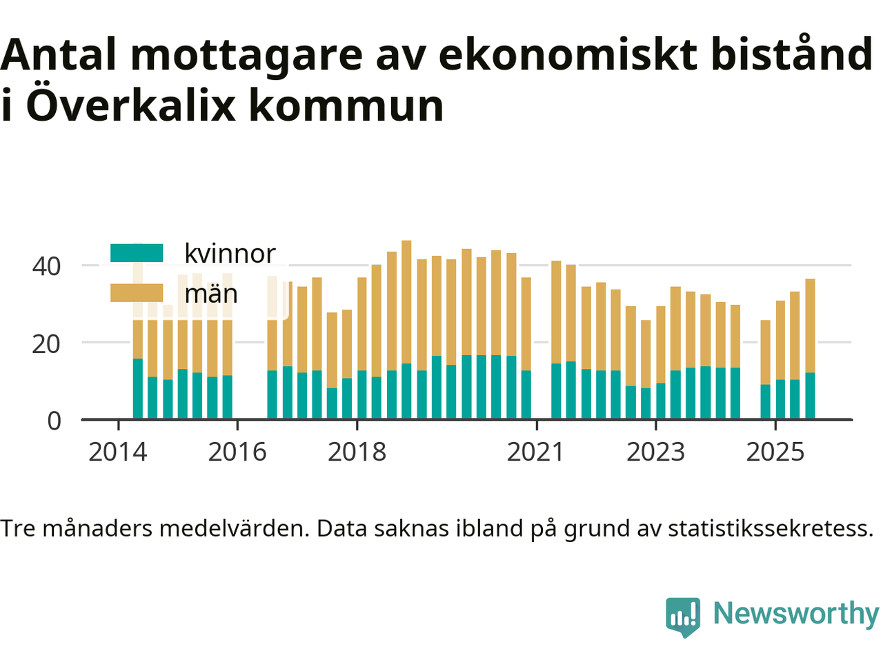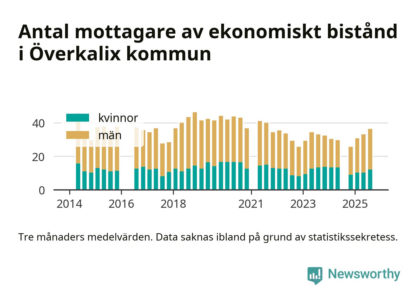 I genomsnitt 36 personer per månad fick ekonomiskt bistånd i Överkalix kommun