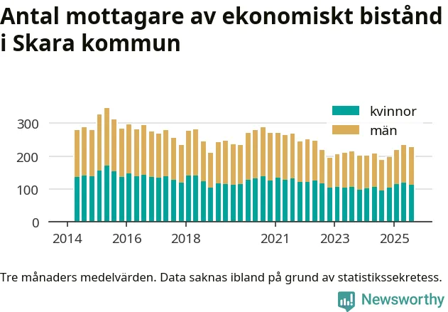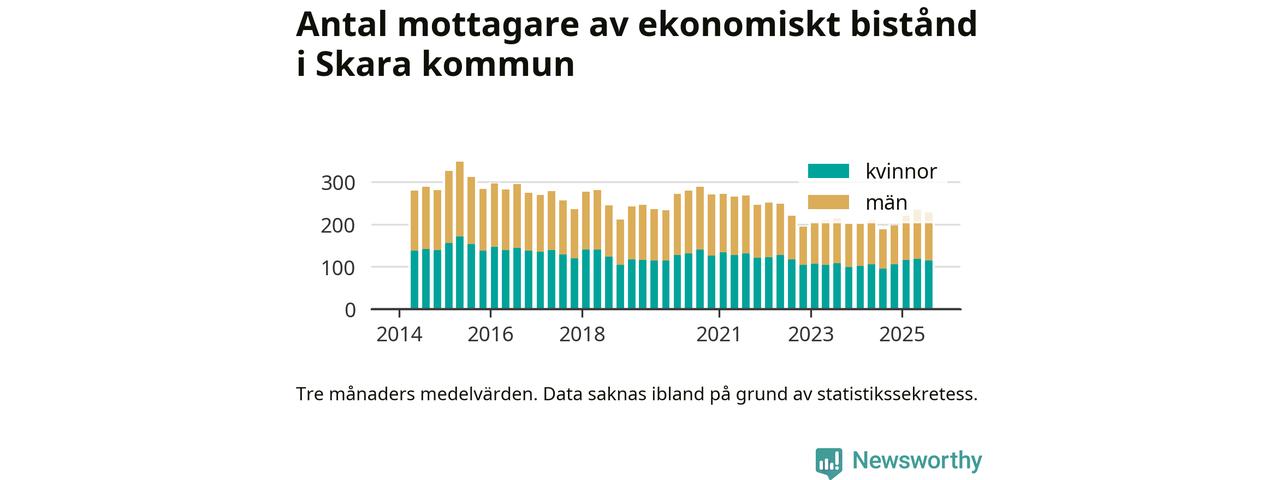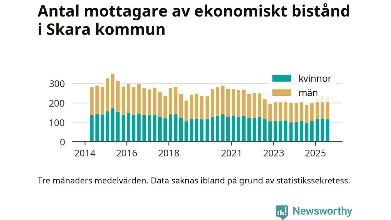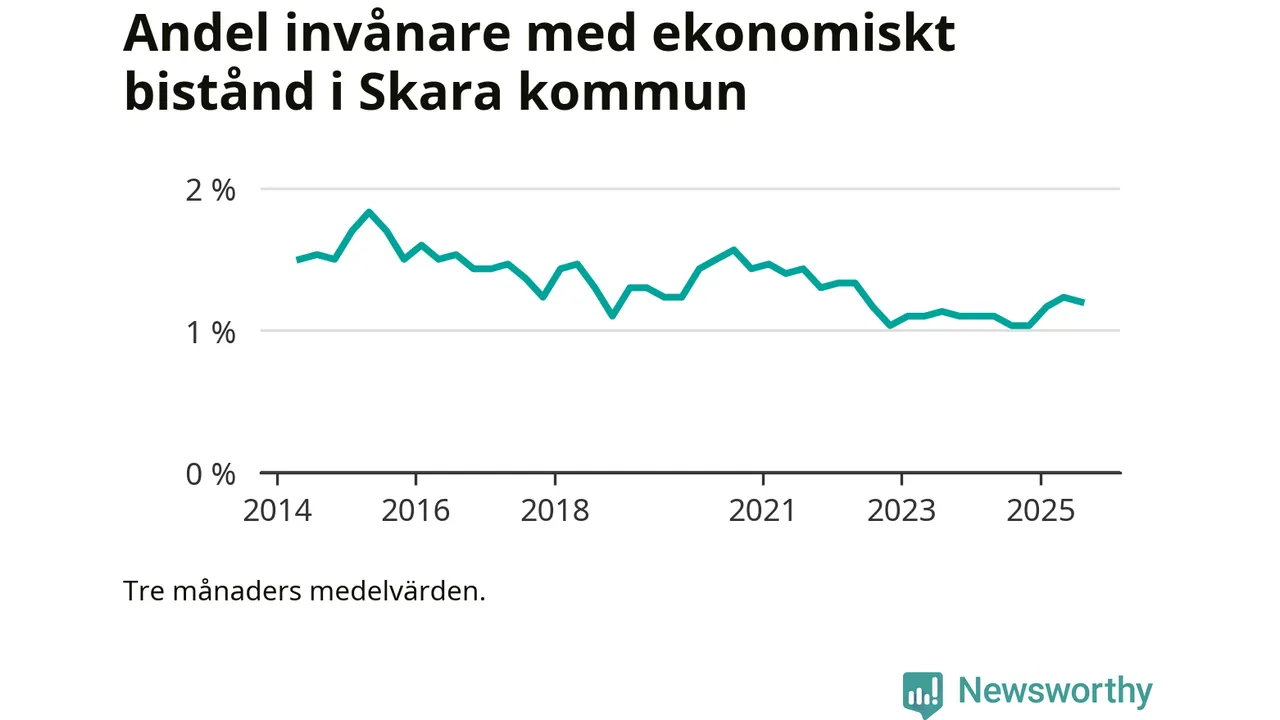 Andelen invånare med ekonomiskt bistånd i Skara kommun var högre under sommaren jämfört med motsvarande period året innan. Det visar den senaste, preliminära statistiken från Socialstyrelsen.