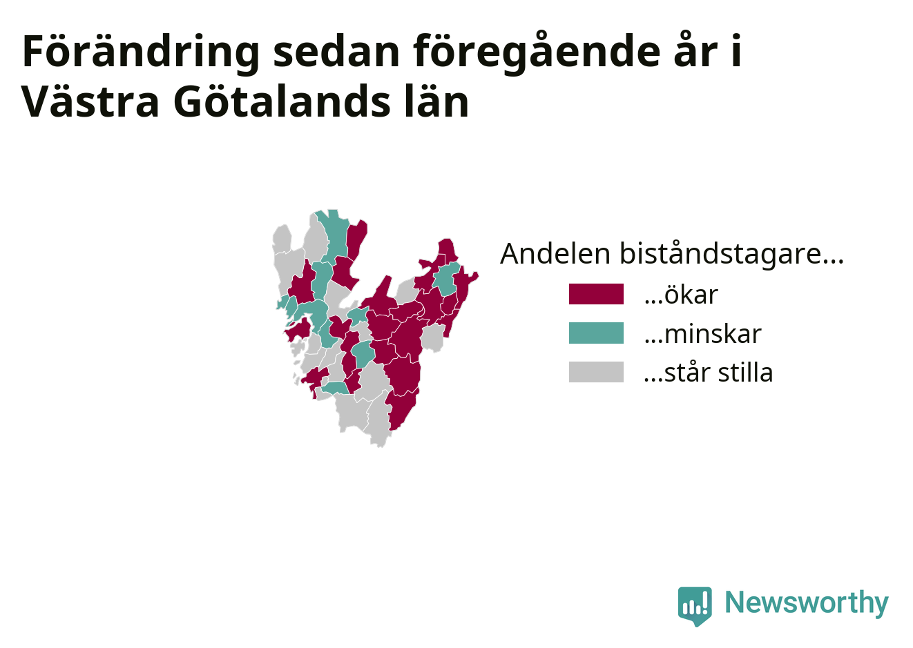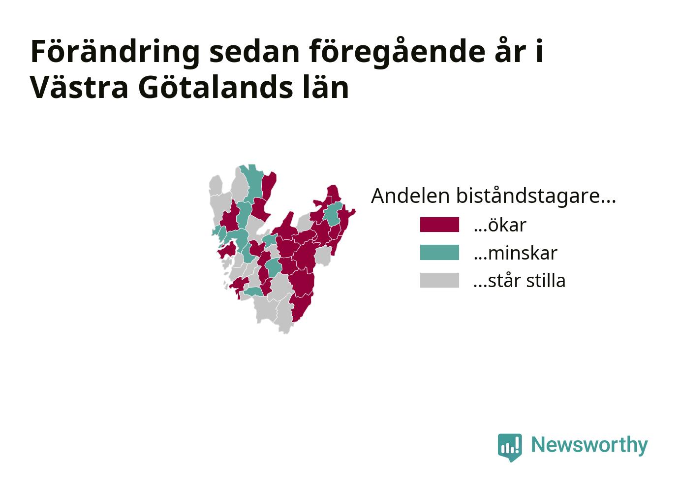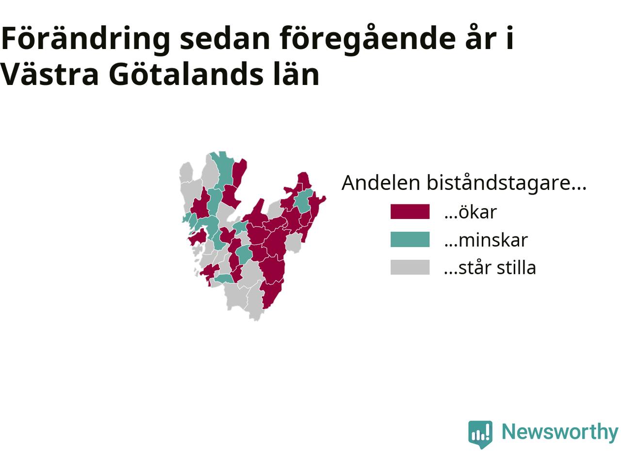 I Västra Götaland som helhet var andelen biståndstagare 1,1 procent, vilket är ungefär samma nivå som månaden innan.