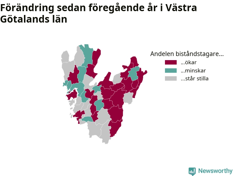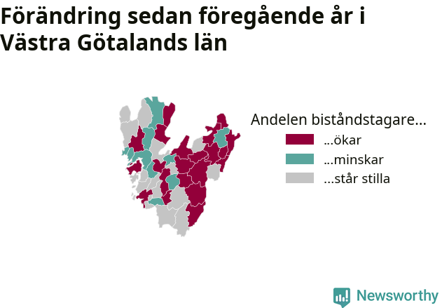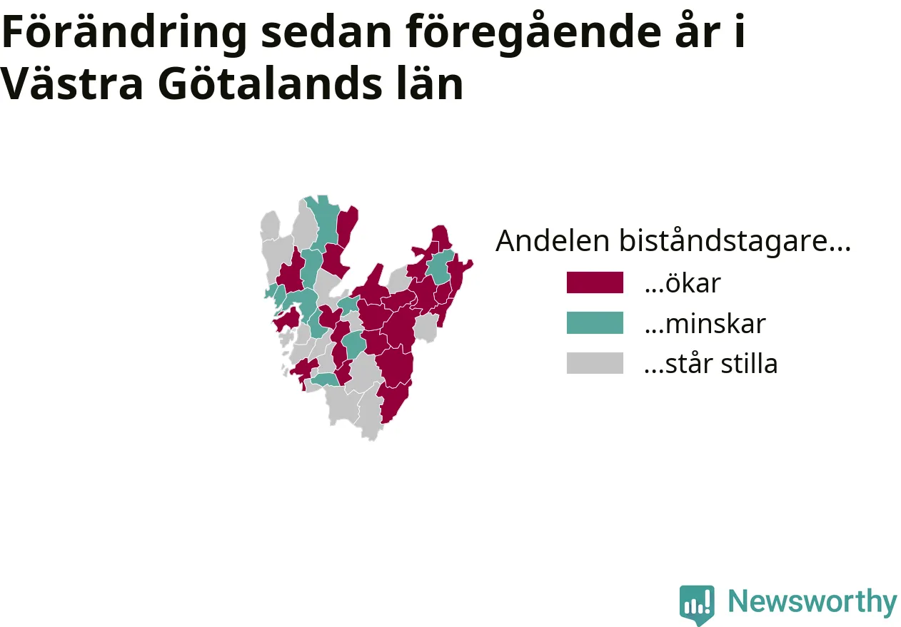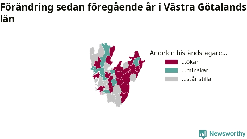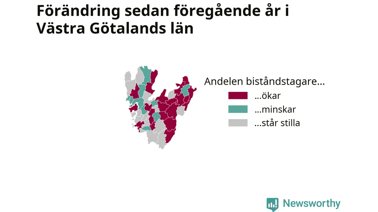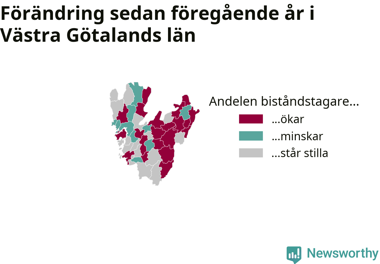 I Västra Götaland som helhet var andelen biståndstagare 1,1 procent, vilket är ungefär samma nivå som månaden innan.