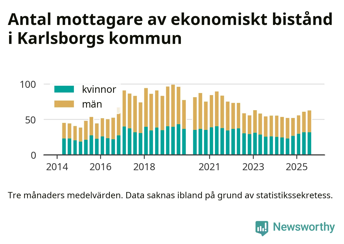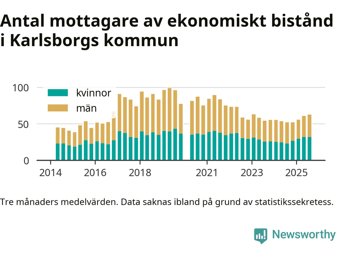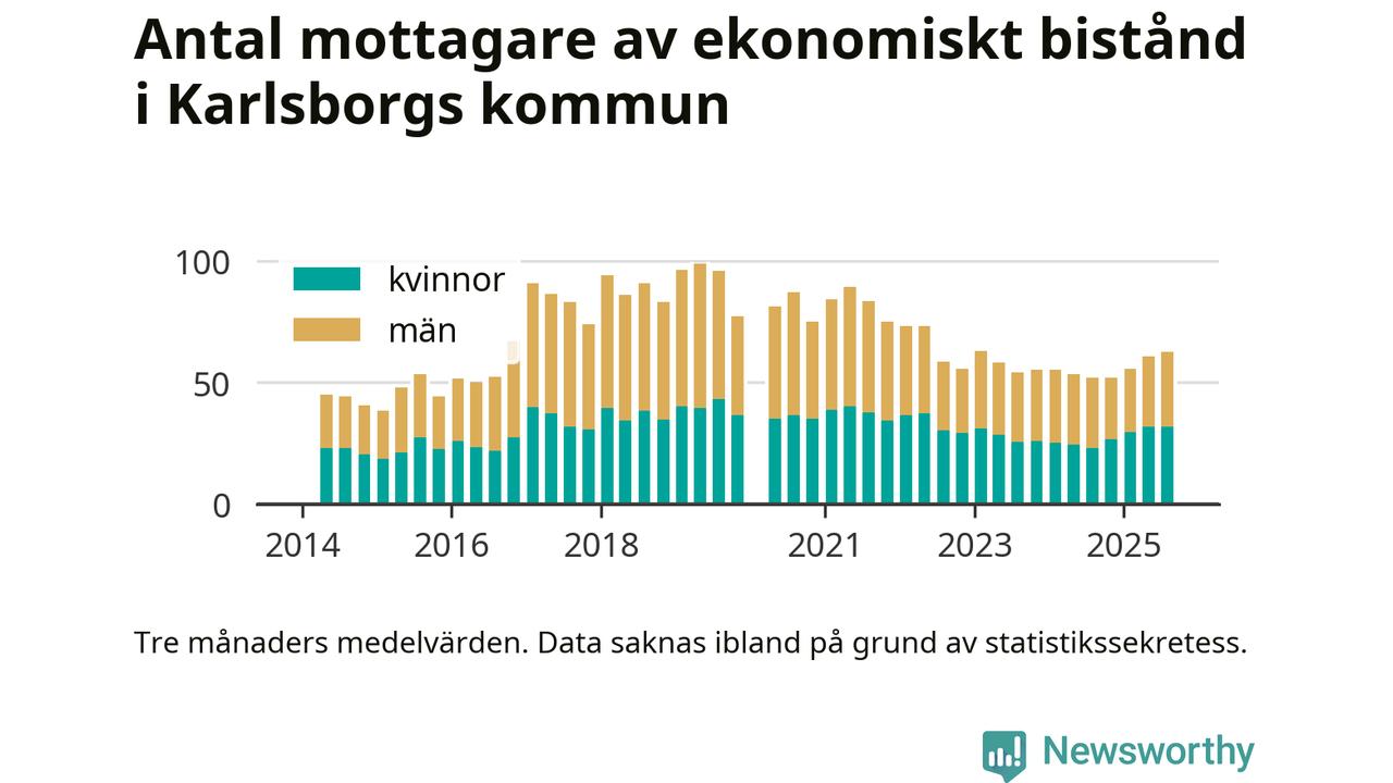 Andelen invånare med ekonomiskt bistånd i Karlsborgs kommun var högre under sommaren jämfört med motsvarande period året innan. Det visar den senaste, preliminära statistiken från Socialstyrelsen.