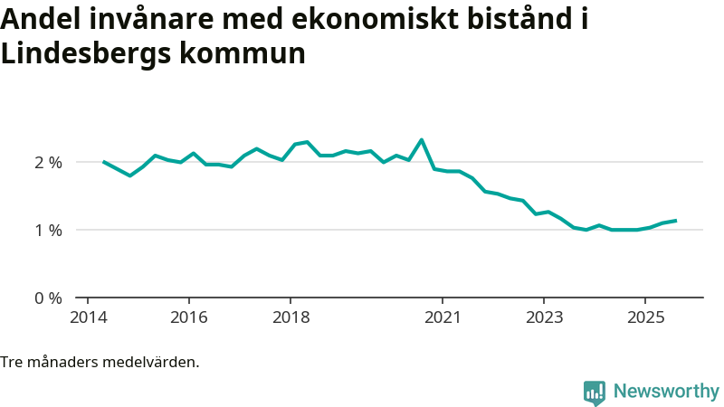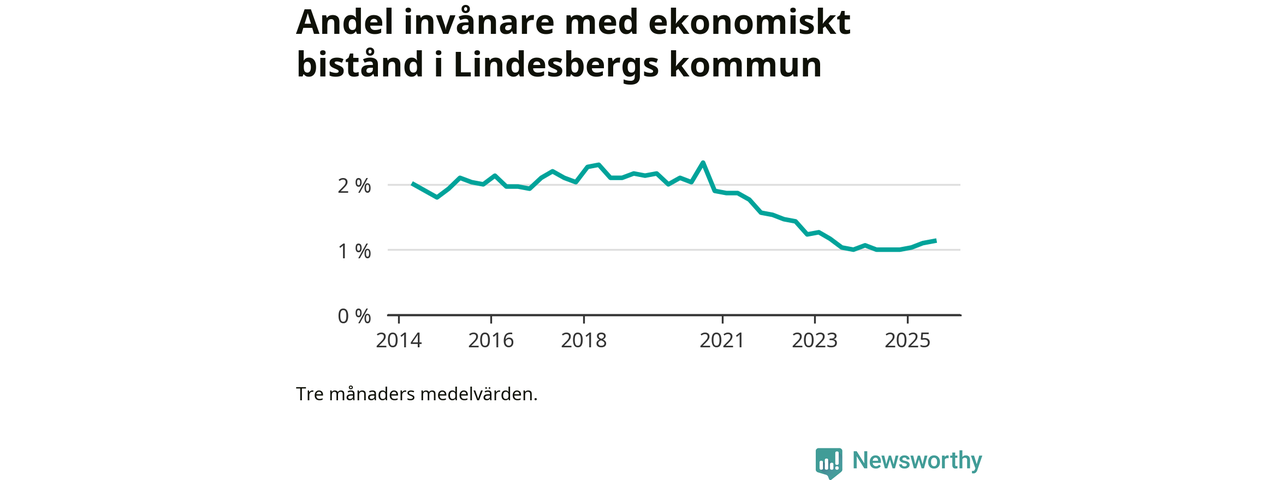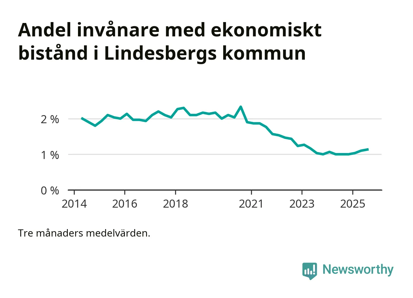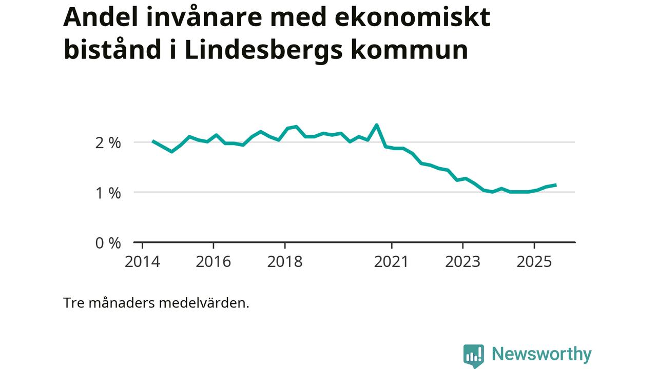 Andelen invånare med ekonomiskt bistånd i Lindesbergs kommun