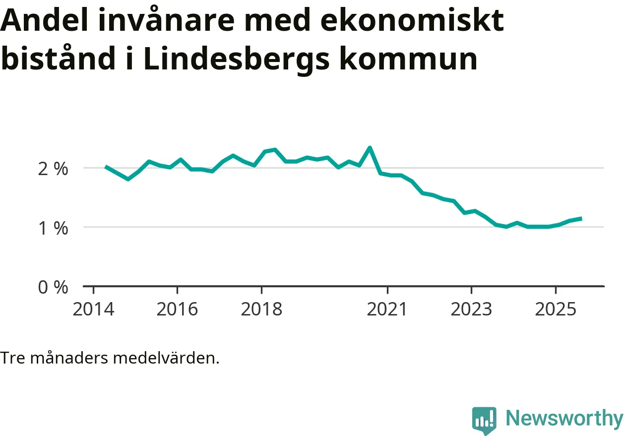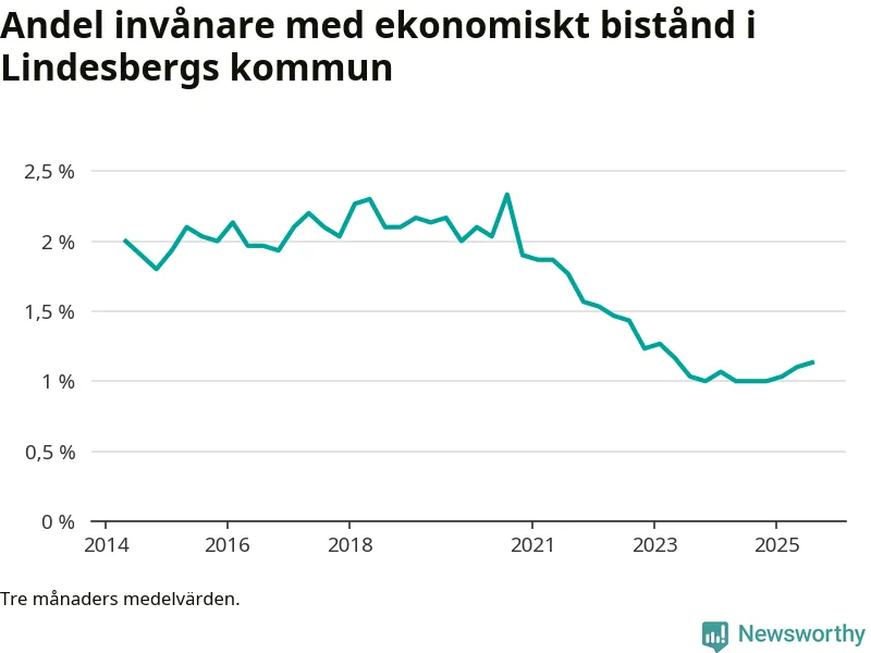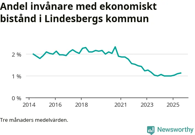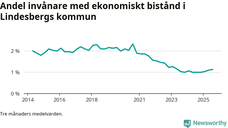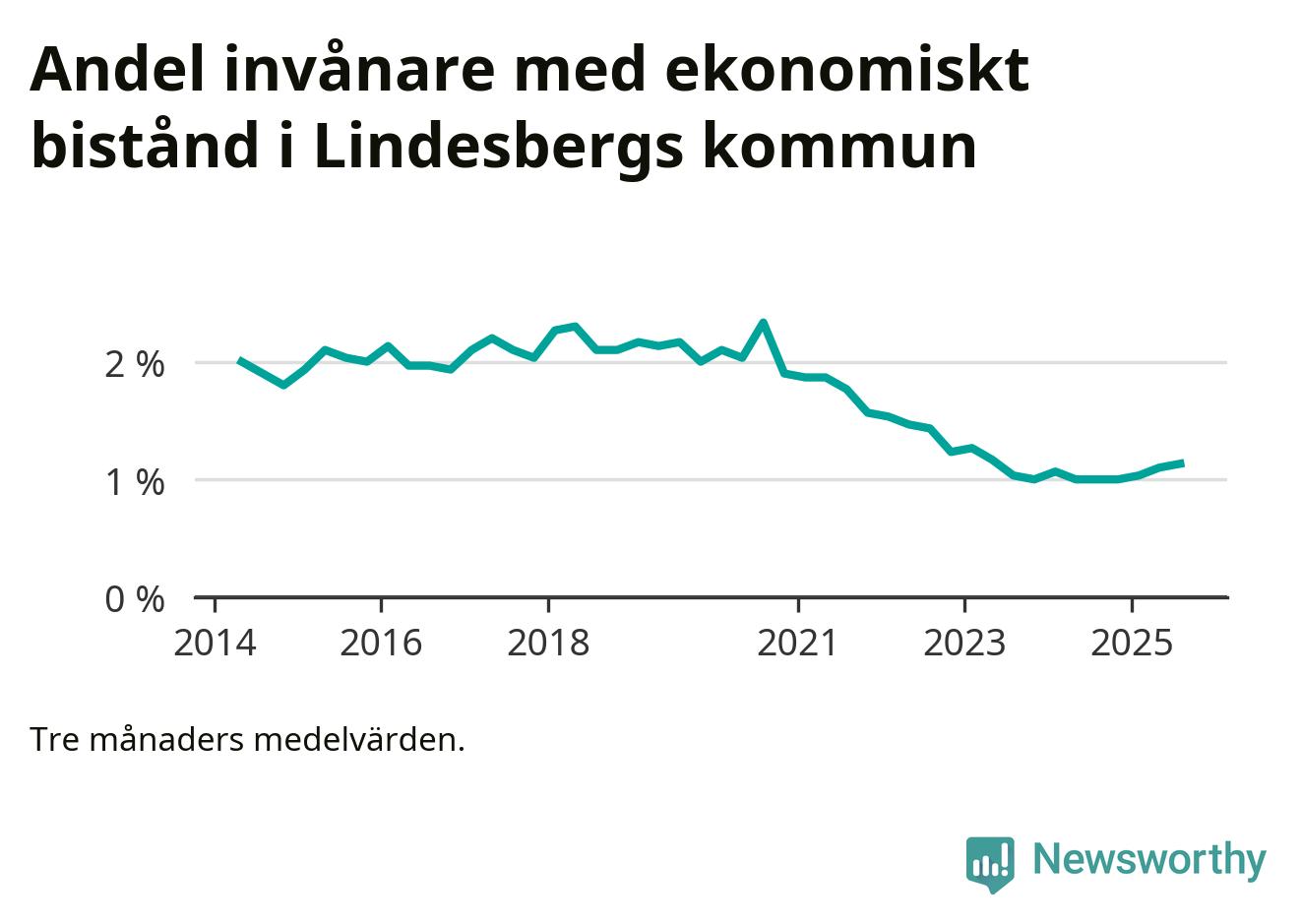 Andelen invånare med ekonomiskt bistånd i Lindesbergs kommun