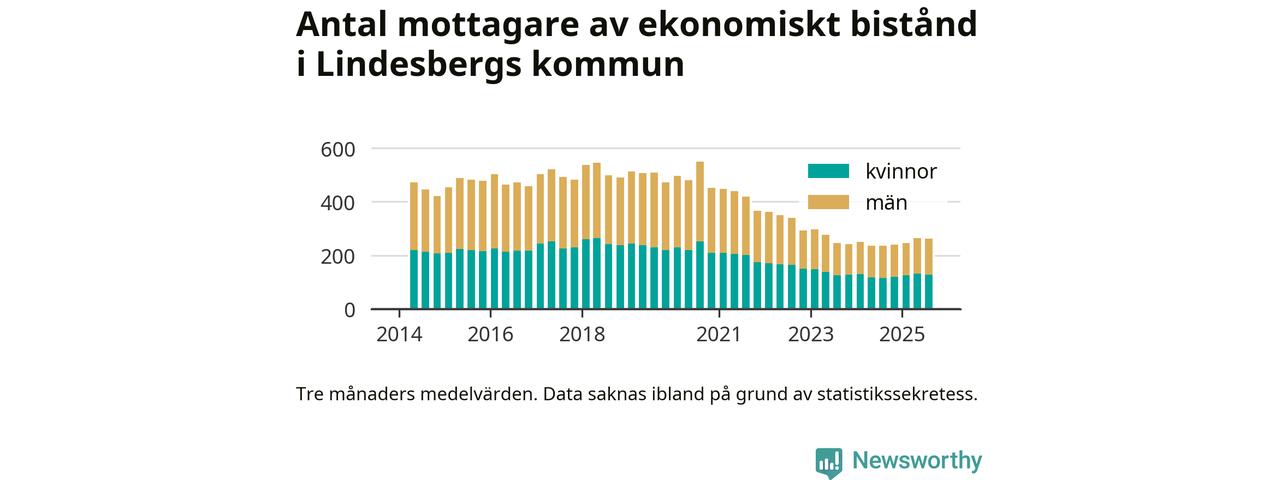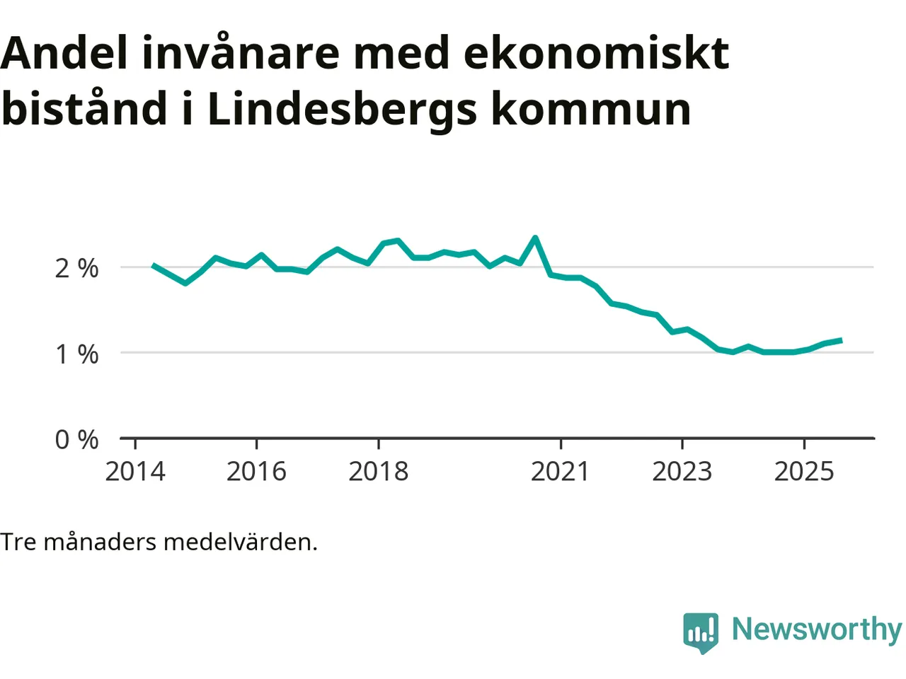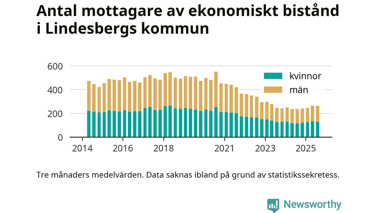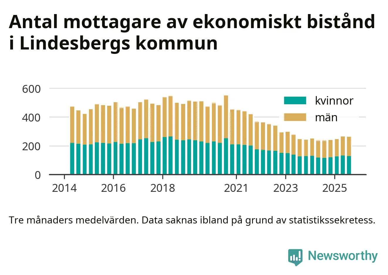 I genomsnitt 263 personer per månad fick ekonomiskt bistånd i Lindesbergs kommun