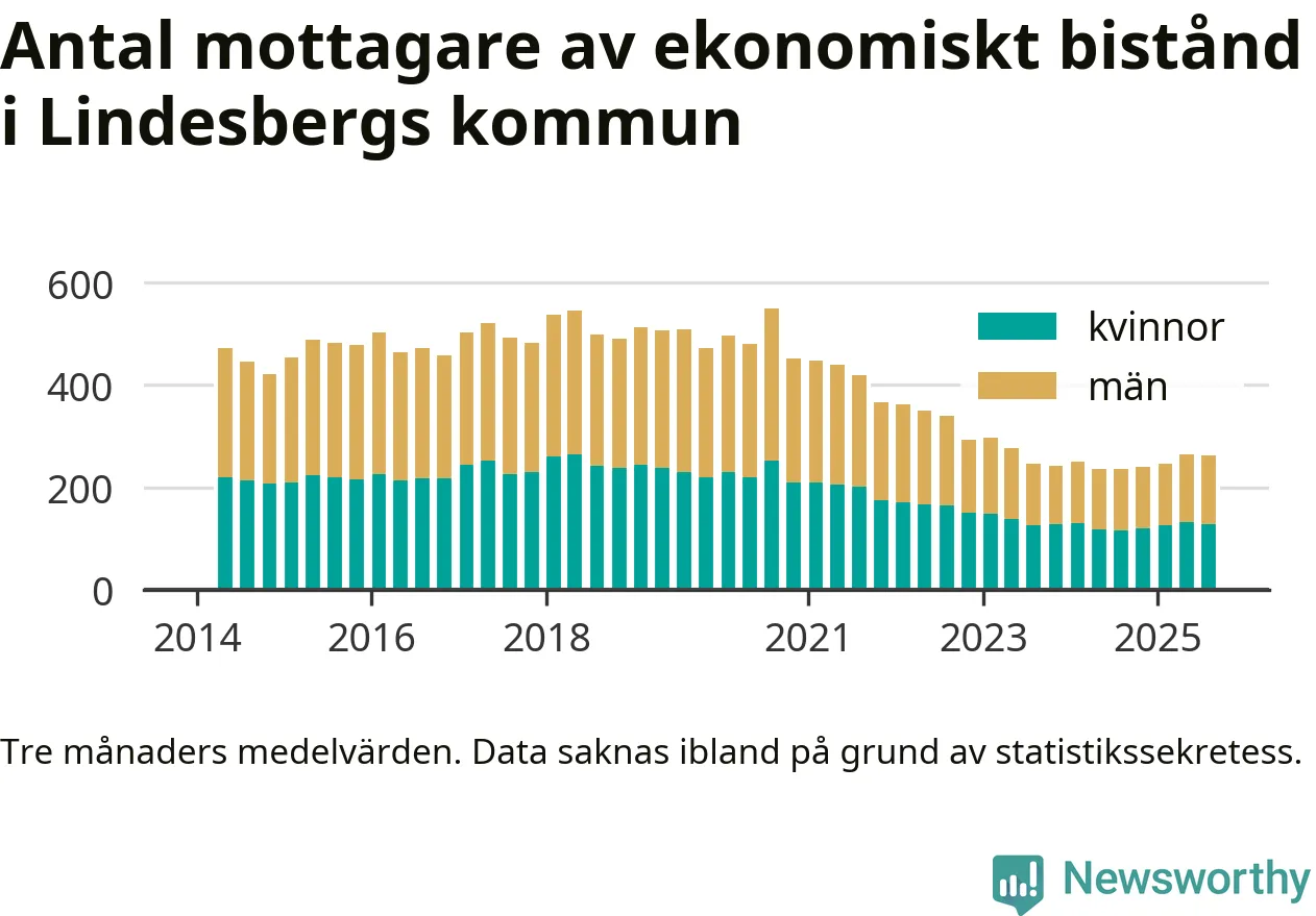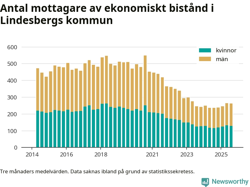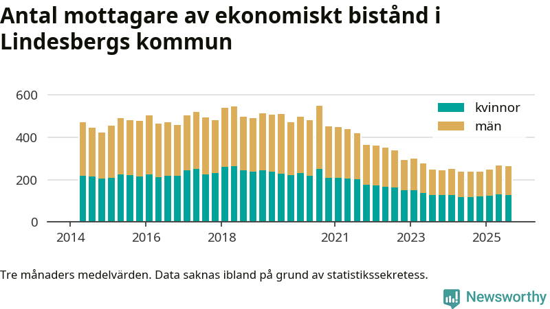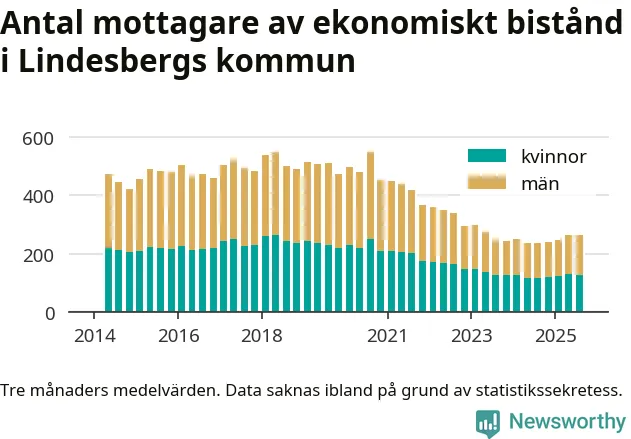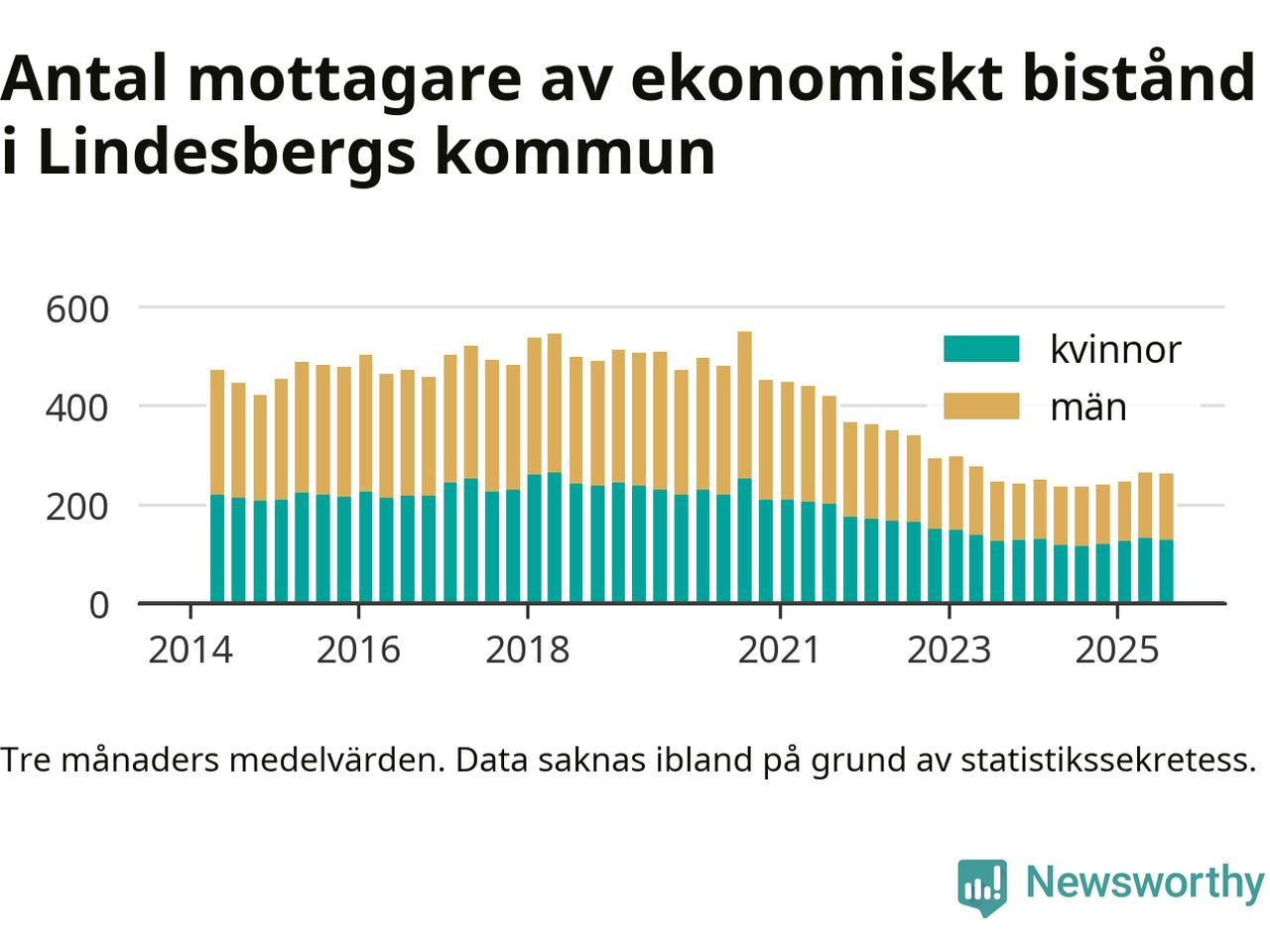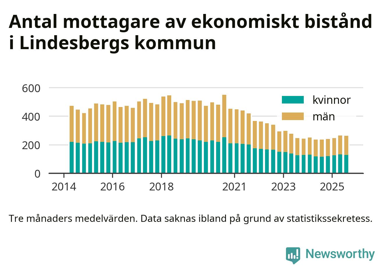 I genomsnitt 263 personer per månad fick ekonomiskt bistånd i Lindesbergs kommun
