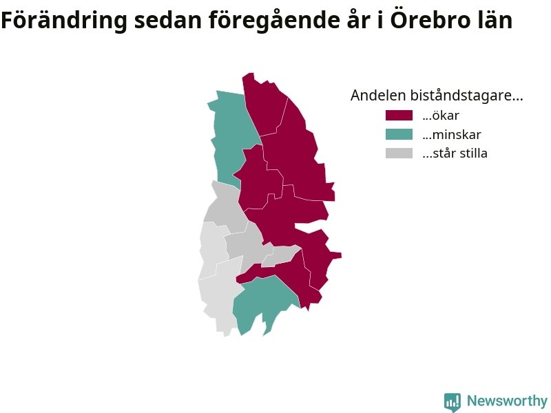 i samtliga kommuner utom en (Ljusnarsbergs kommun), jämfört med i våras. För Degerfors kommun och Laxå kommun saknas data de senaste månaderna.