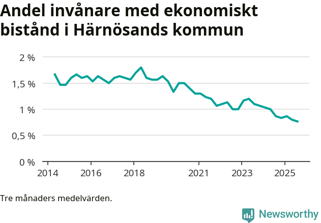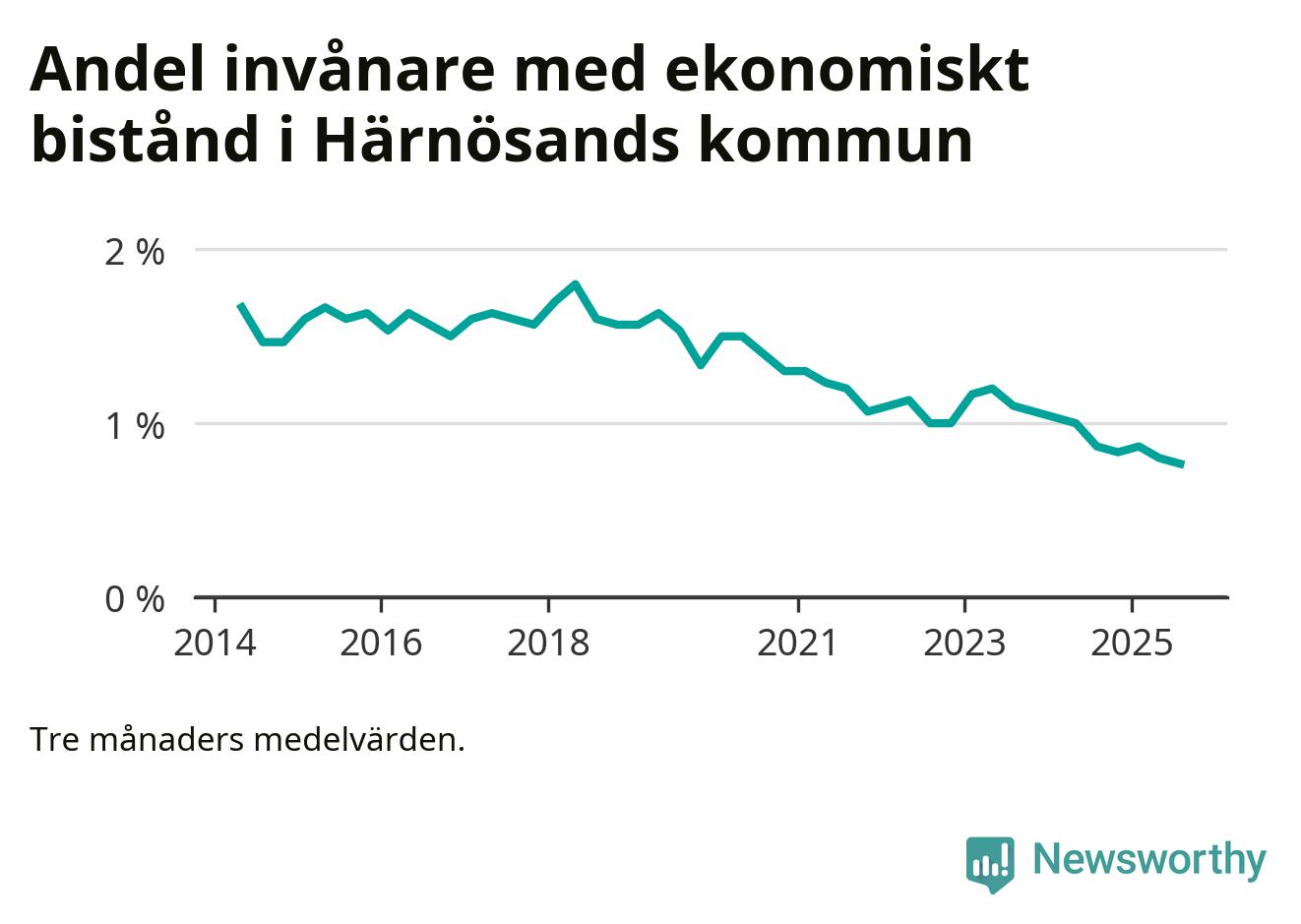 Andelen invånare med ekonomiskt bistånd i Härnösands kommun
