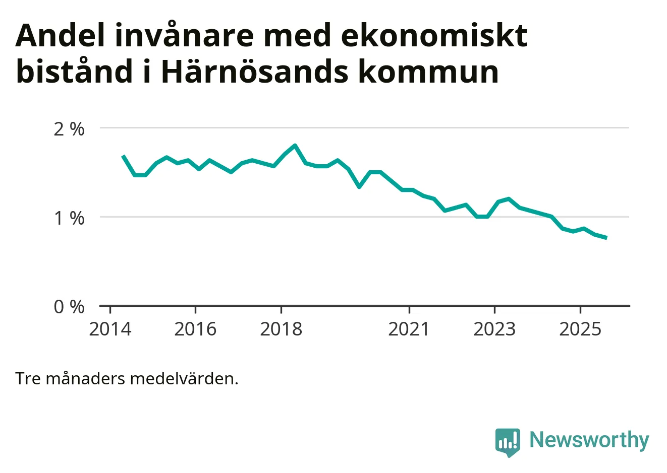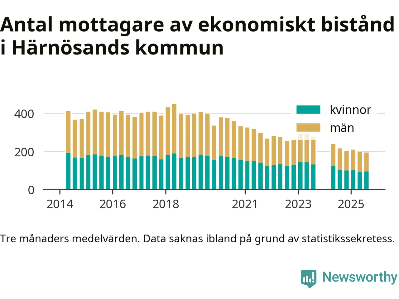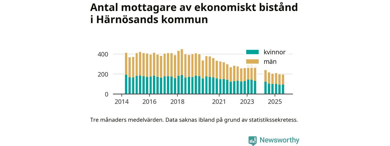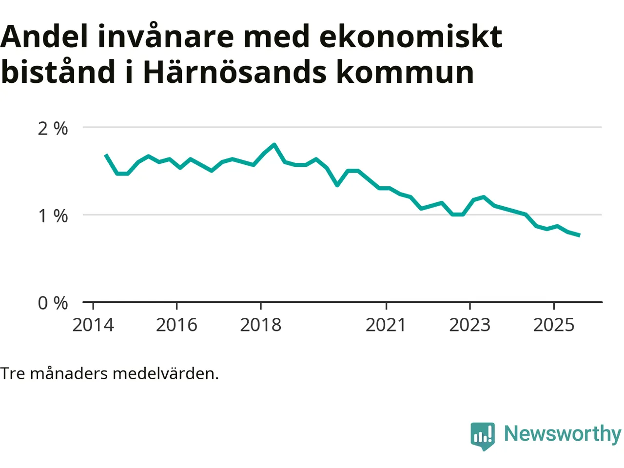 I genomsnitt 194 personer per månad fick ekonomiskt bistånd i Härnösands kommun