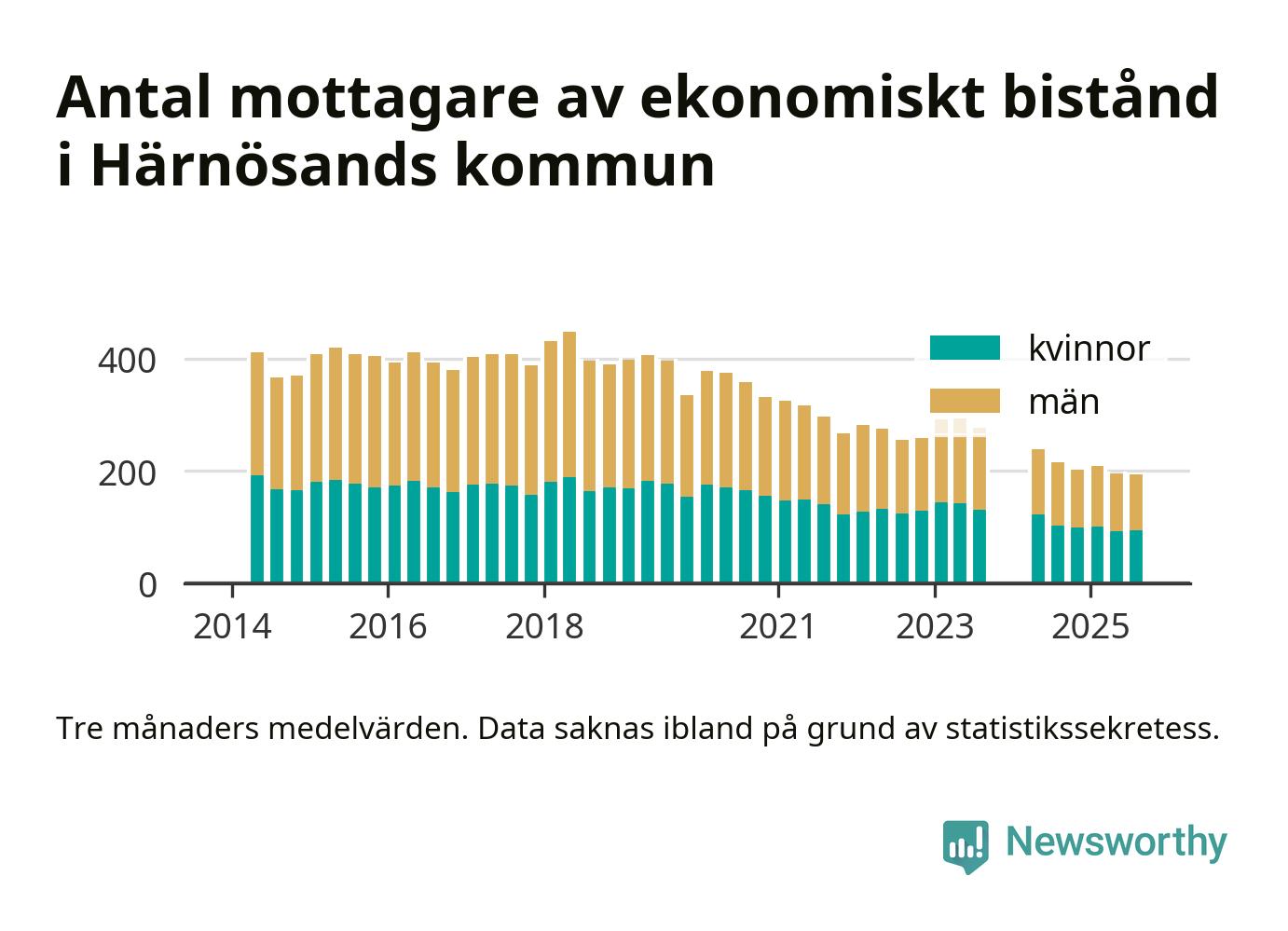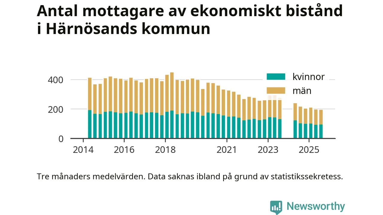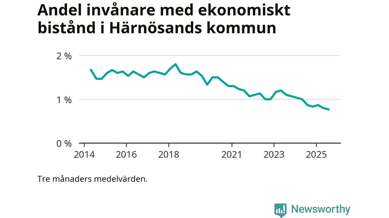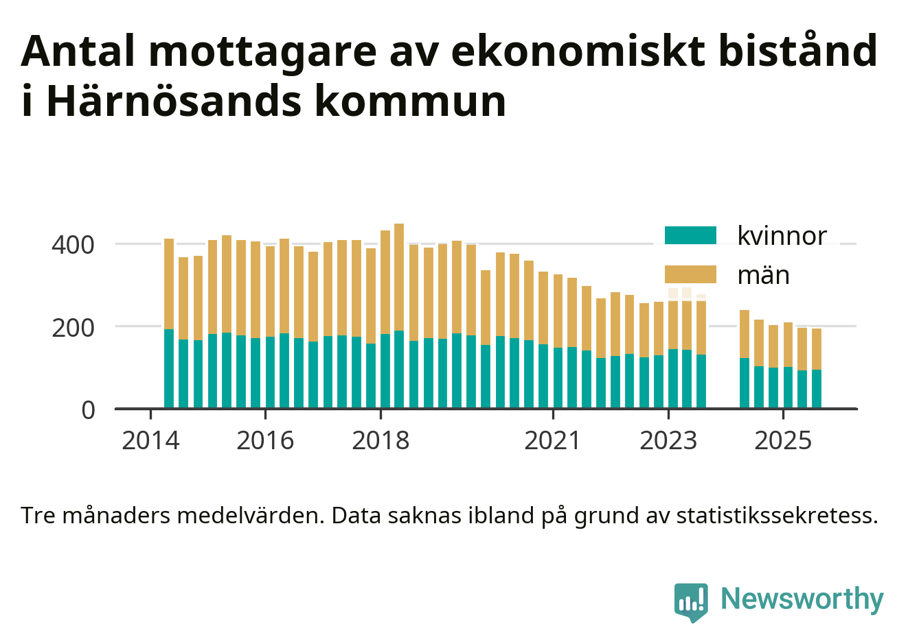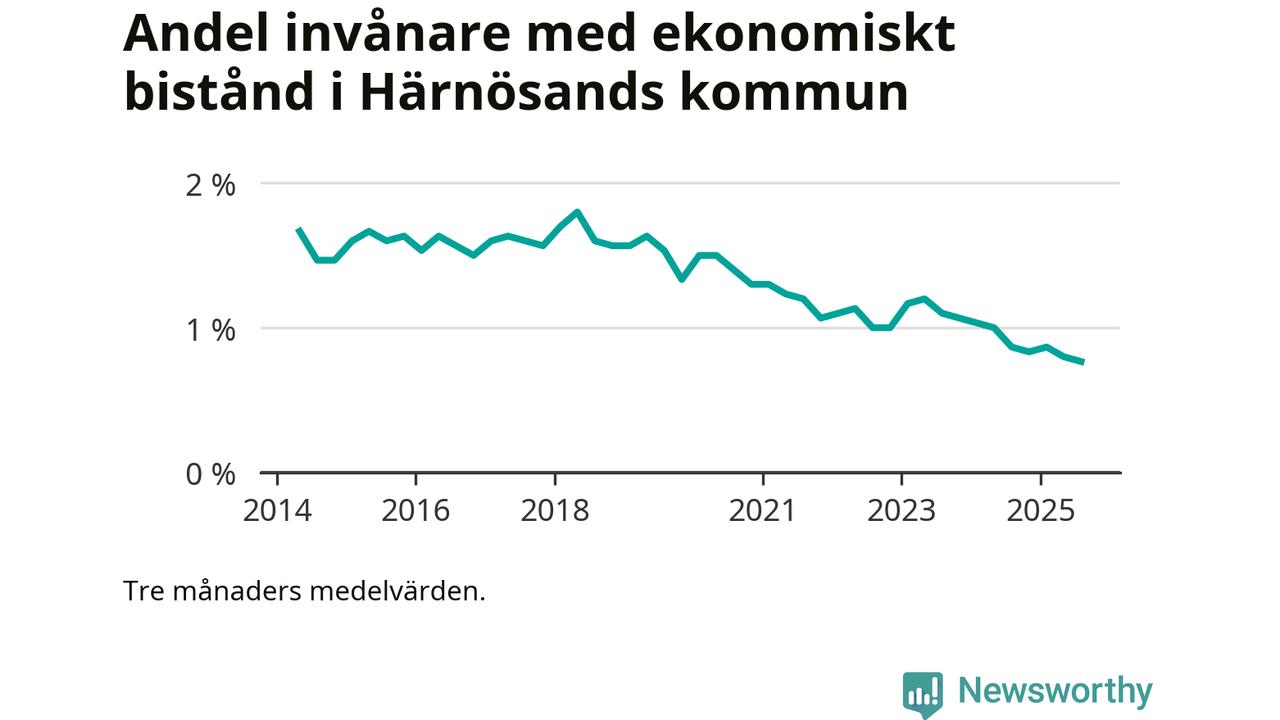 I genomsnitt 194 personer per månad fick ekonomiskt bistånd i Härnösands kommun