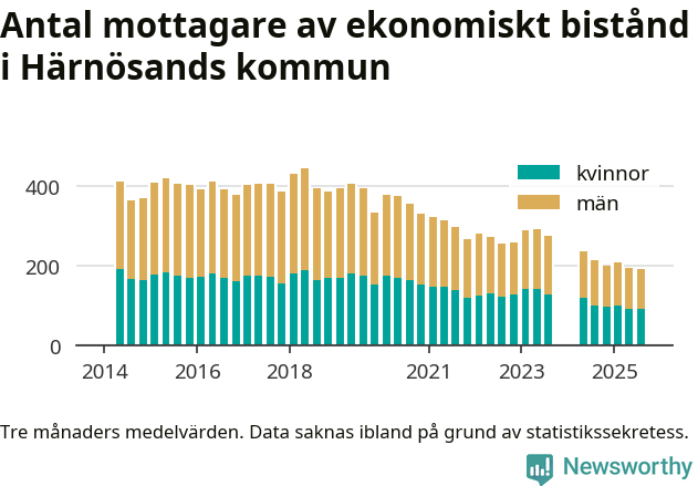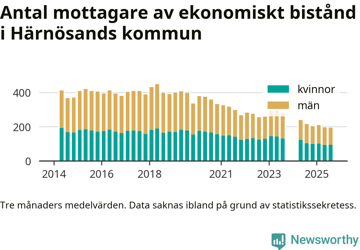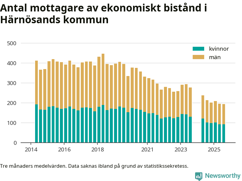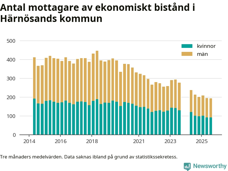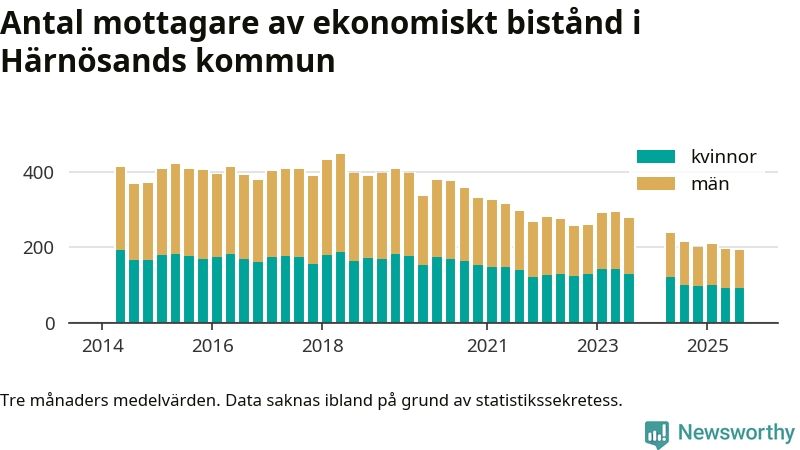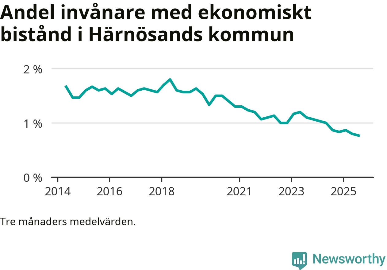 I genomsnitt 194 personer per månad fick ekonomiskt bistånd i Härnösands kommun