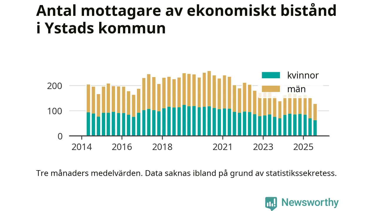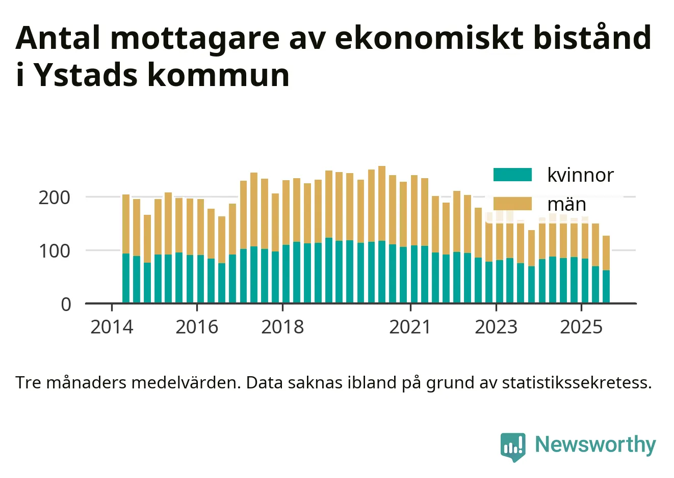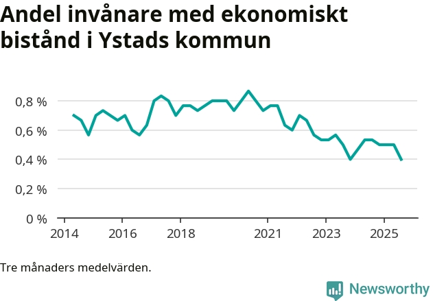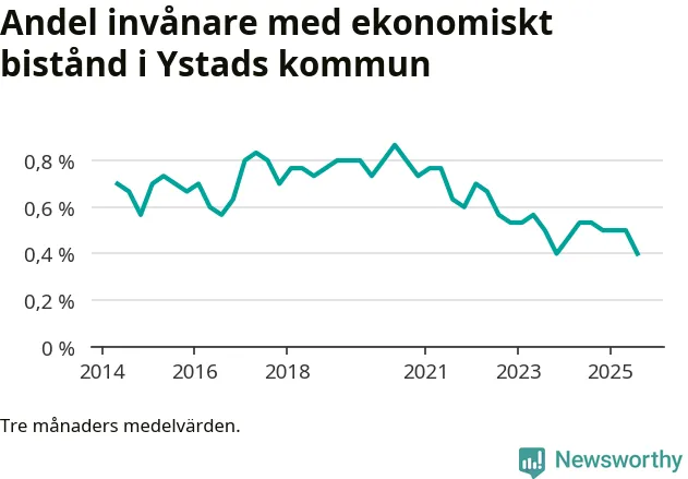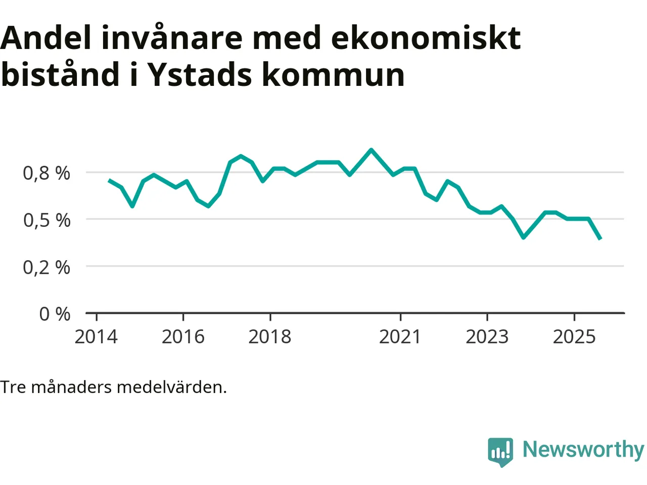 Andelen invånare med ekonomiskt bistånd i Ystads kommun var lägre under sommaren jämfört med motsvarande period året innan. Det visar den senaste, preliminära statistiken från Socialstyrelsen.