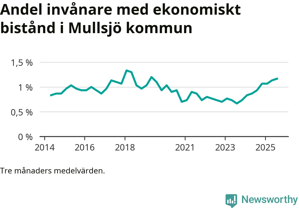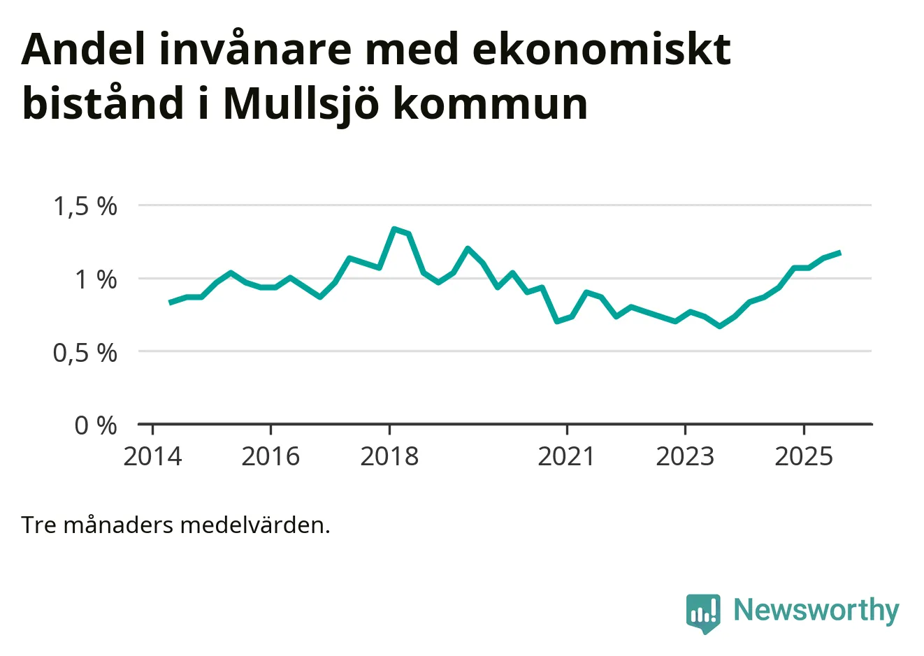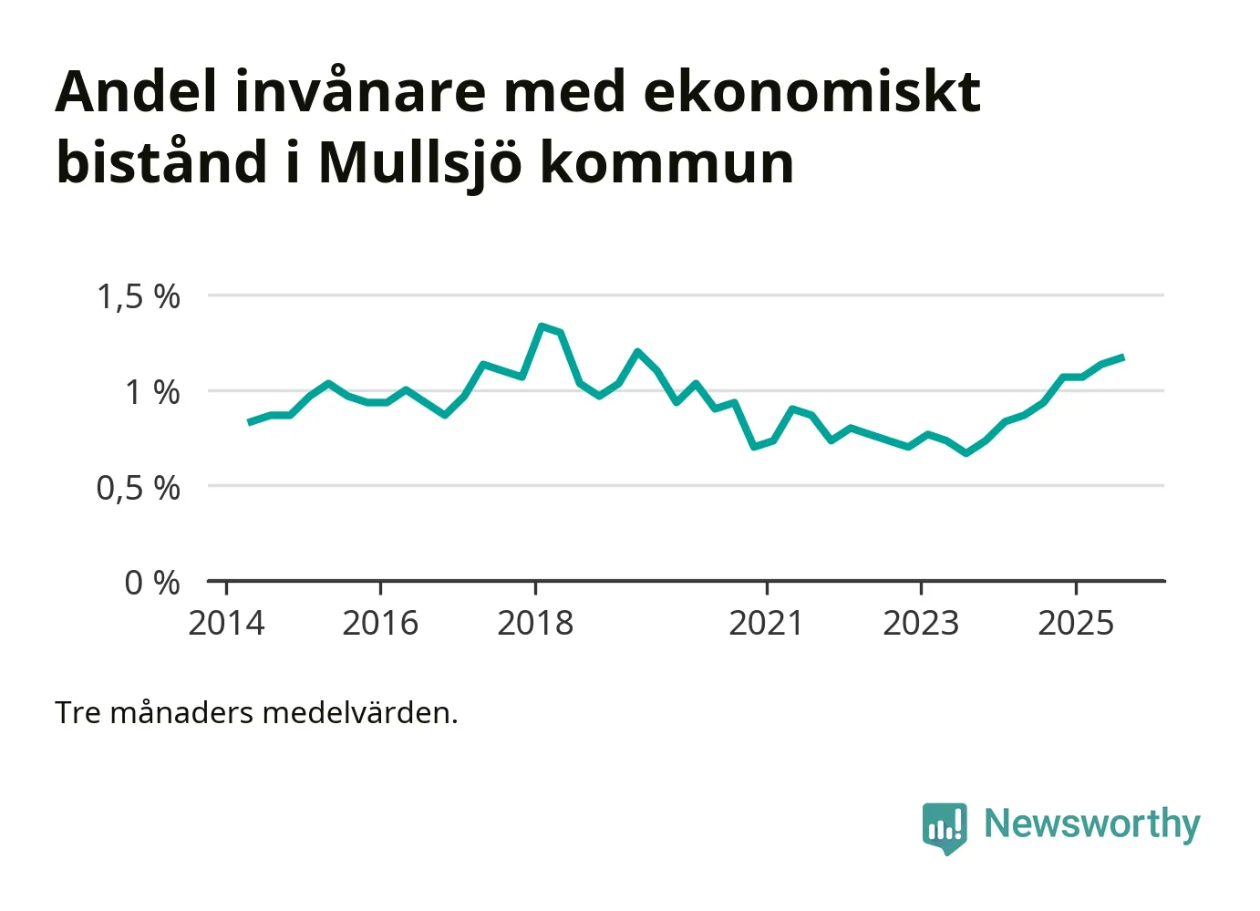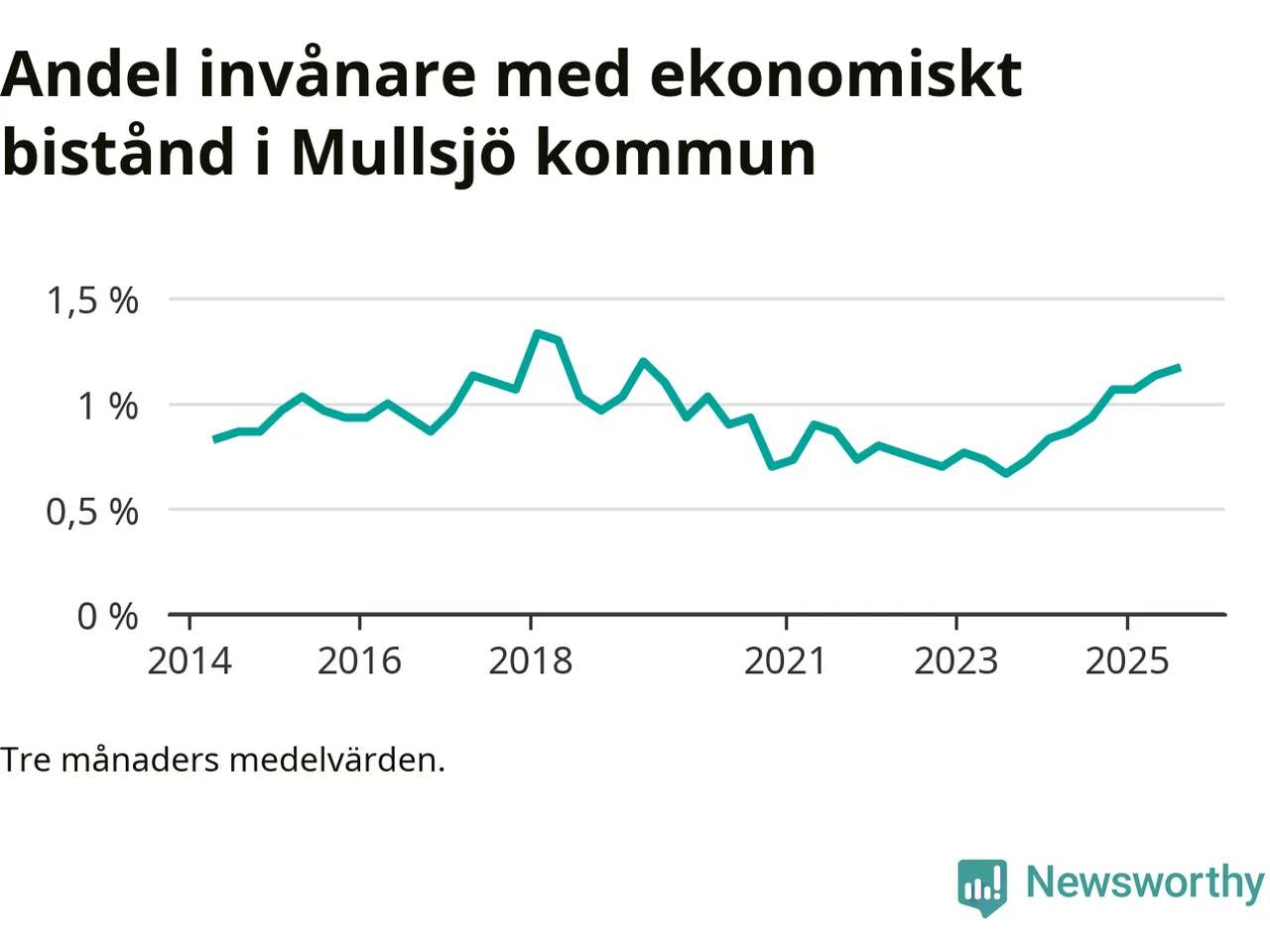 Andelen invånare med ekonomiskt bistånd i Mullsjö kommun var högre under sommaren jämfört med motsvarande period året innan. Det visar den senaste, preliminära statistiken från Socialstyrelsen.