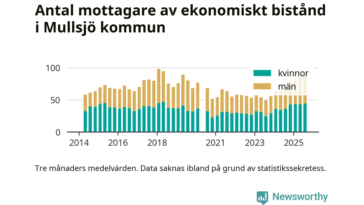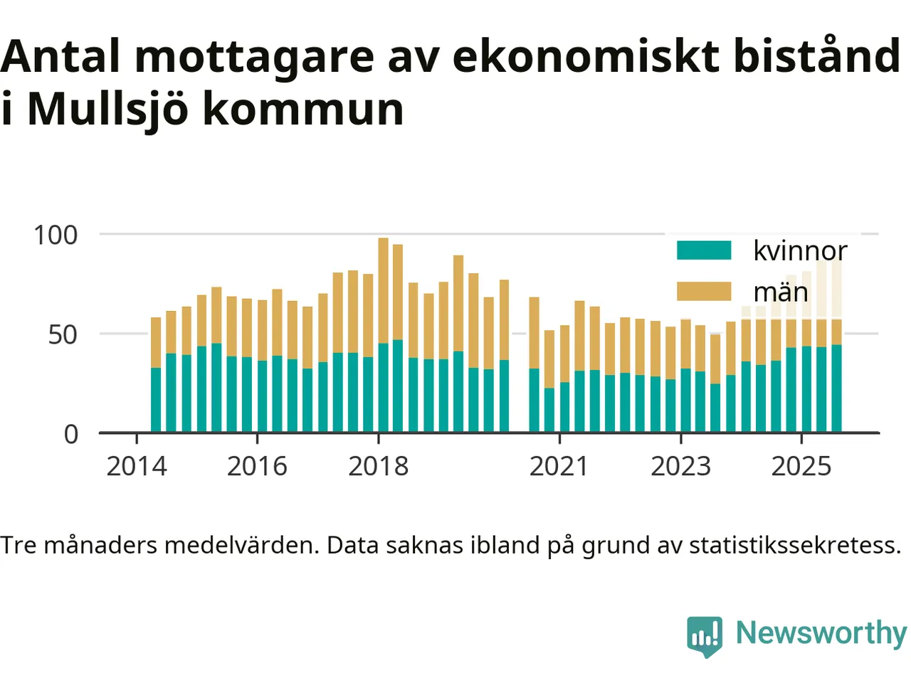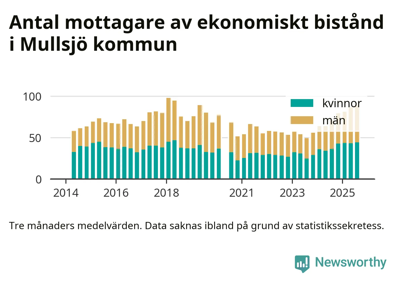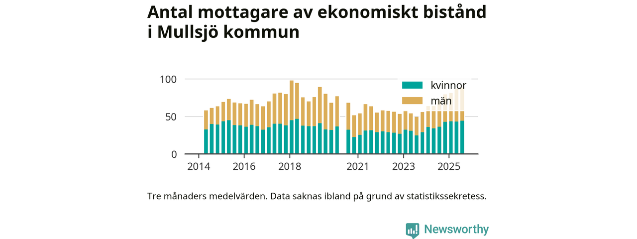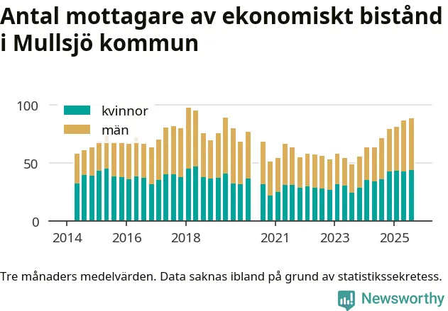 Andelen invånare med ekonomiskt bistånd i Mullsjö kommun var högre under sommaren jämfört med motsvarande period året innan. Det visar den senaste, preliminära statistiken från Socialstyrelsen.