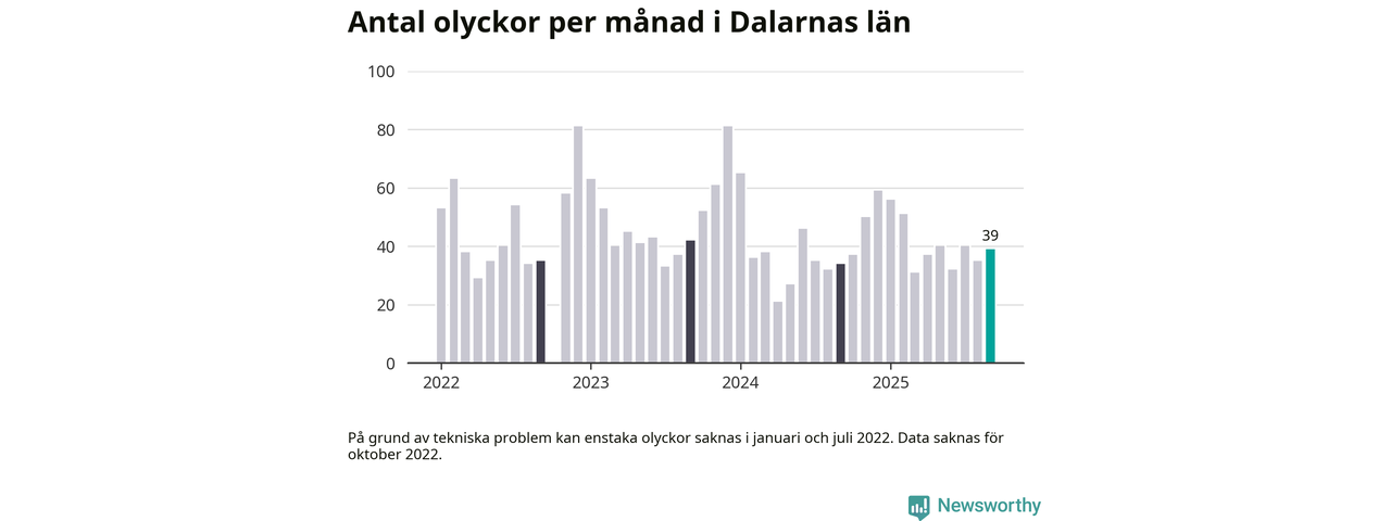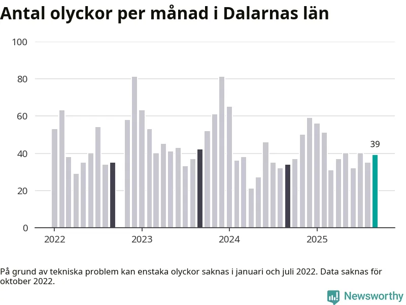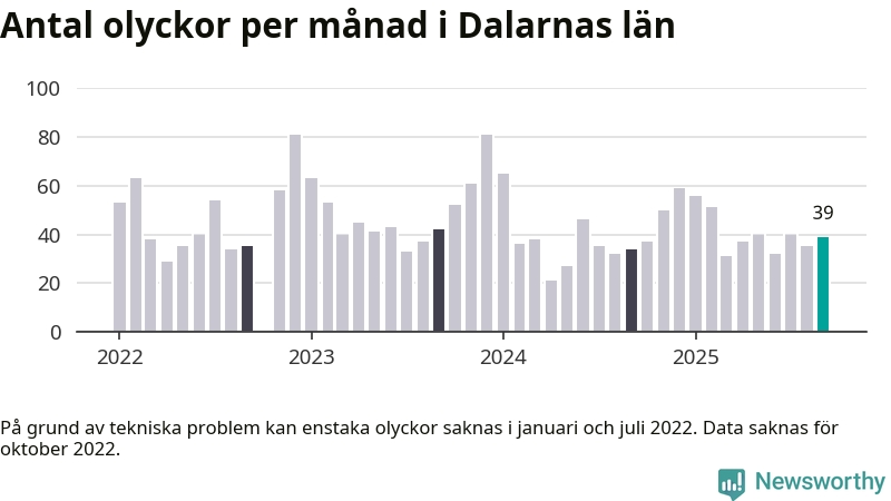 De senaste årens mest olycksdrabbade månader var december för två år sedan och december för tre år sedan, med 81 olyckor. I genomsnitt rapporteras omkring 49 olyckor per månad i länet, sedan början av 2022.