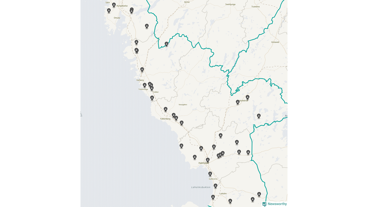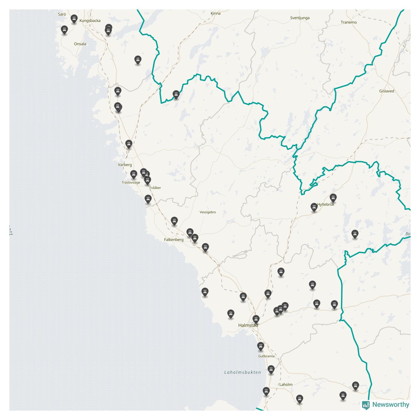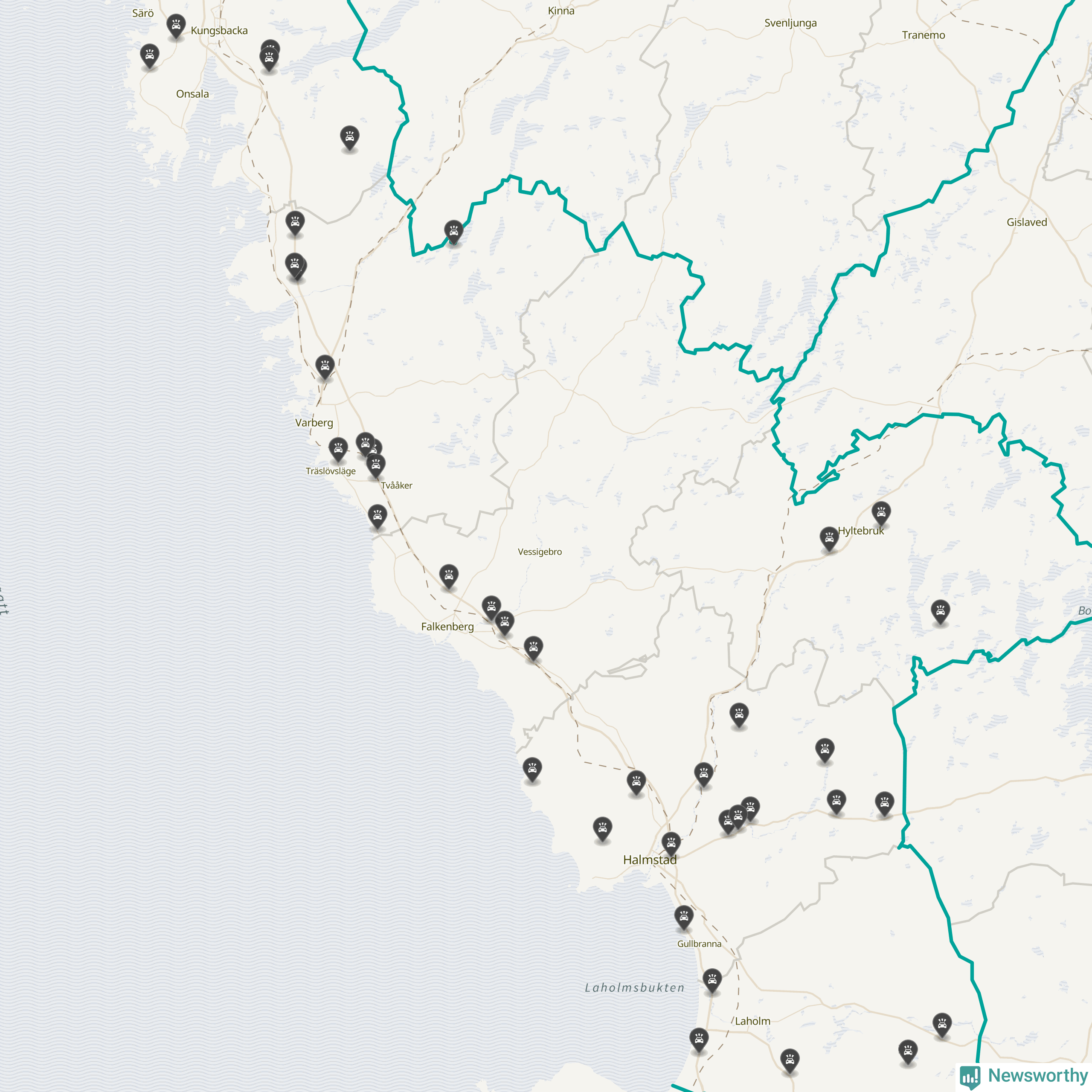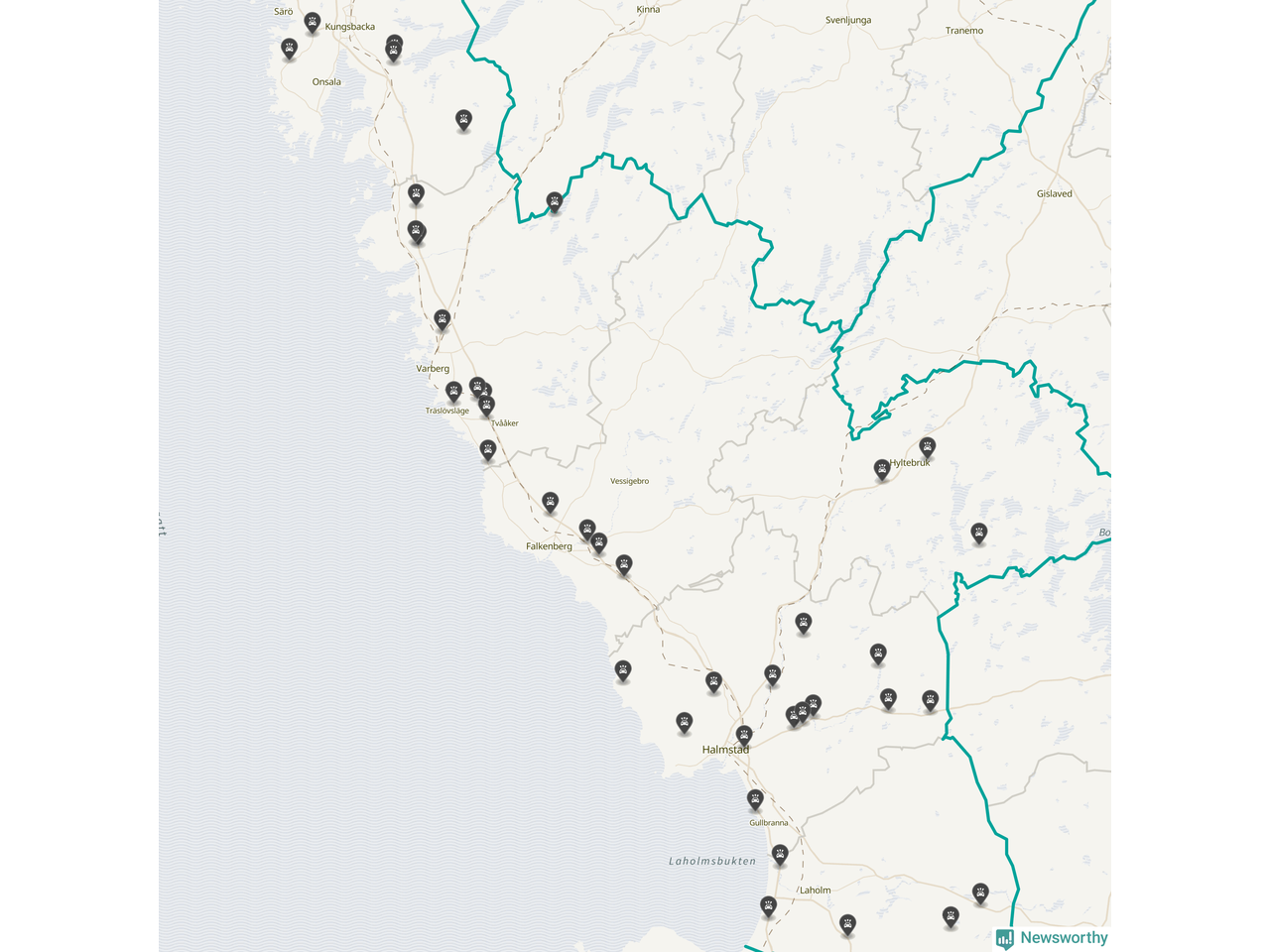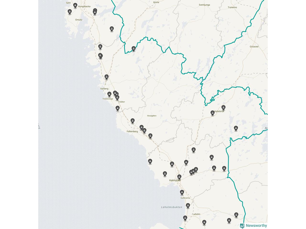 I Hallands län var trafikolyckorna fler än under samma månad i fjol: 40 olyckor längs de stora vägarna i länet. Det visar data från Trafikverket som Newsworthy sammanställt.
