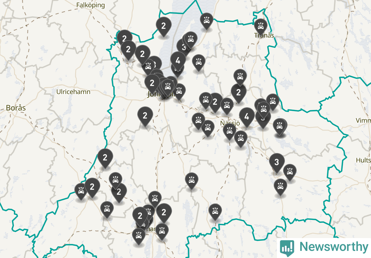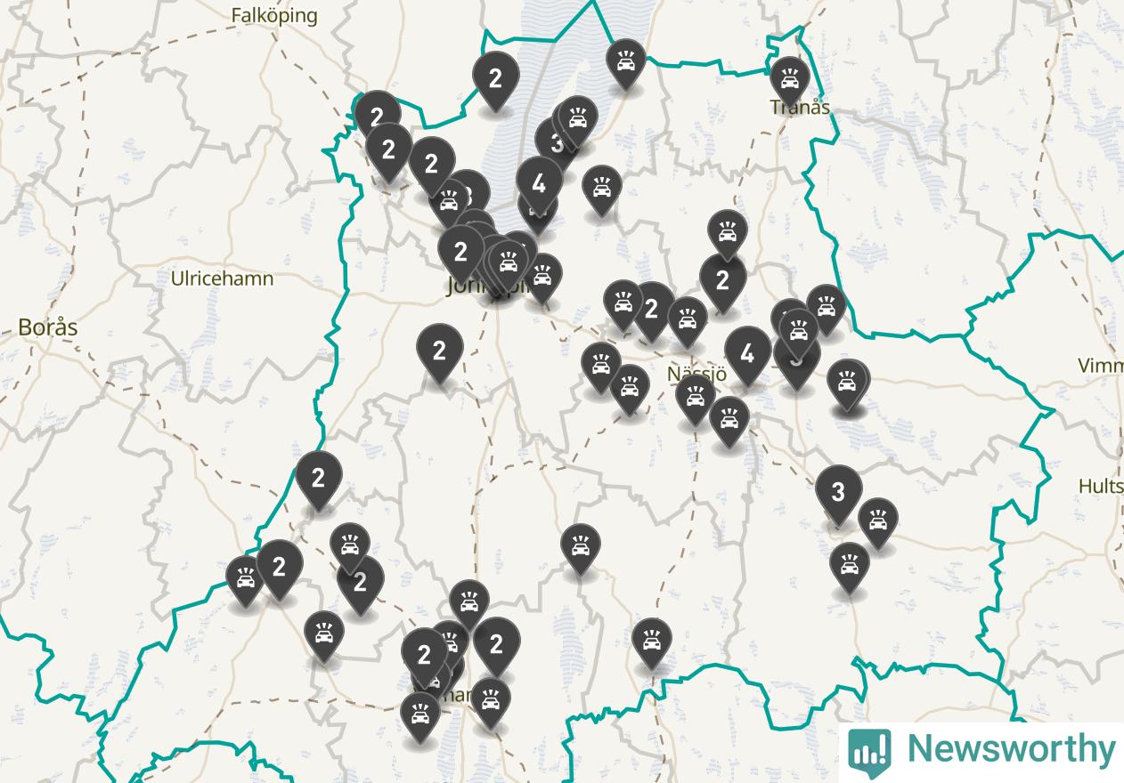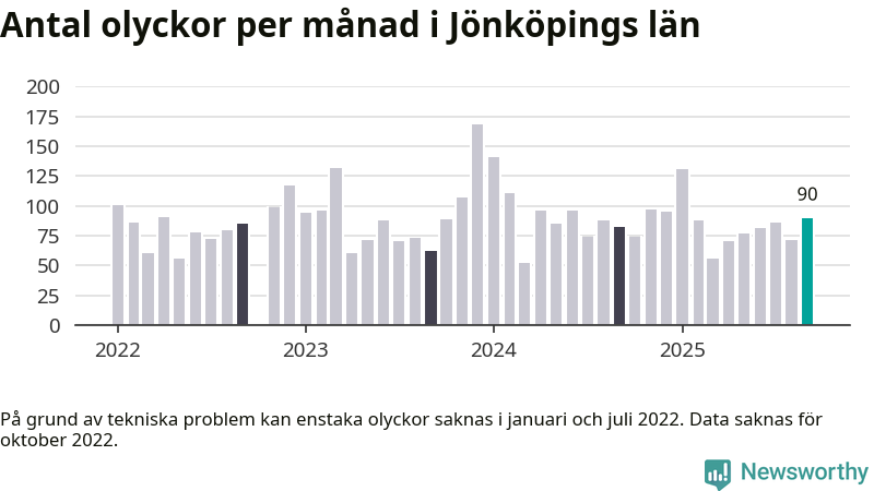 I Jönköpings län rapporterades 90 längs de stora vägarna i länet under september, visar data från Trafikverket som Newsworthy sammanställt.