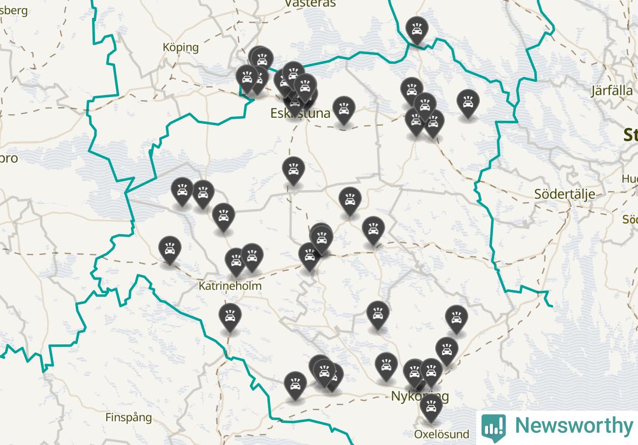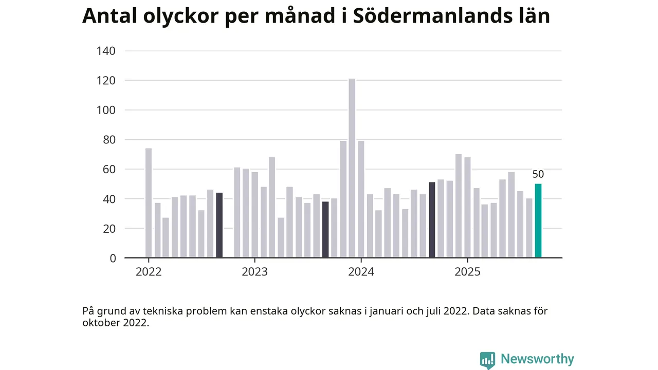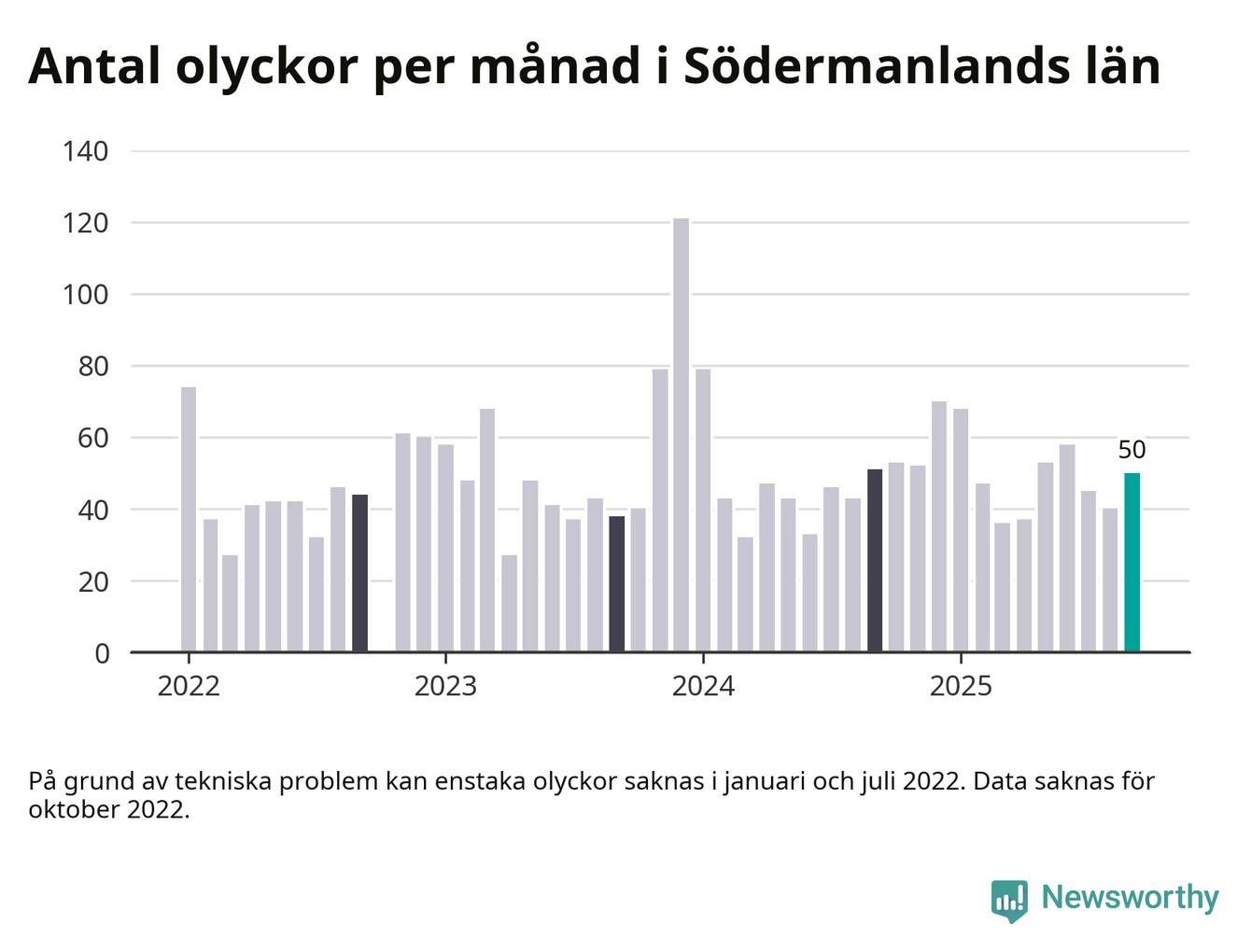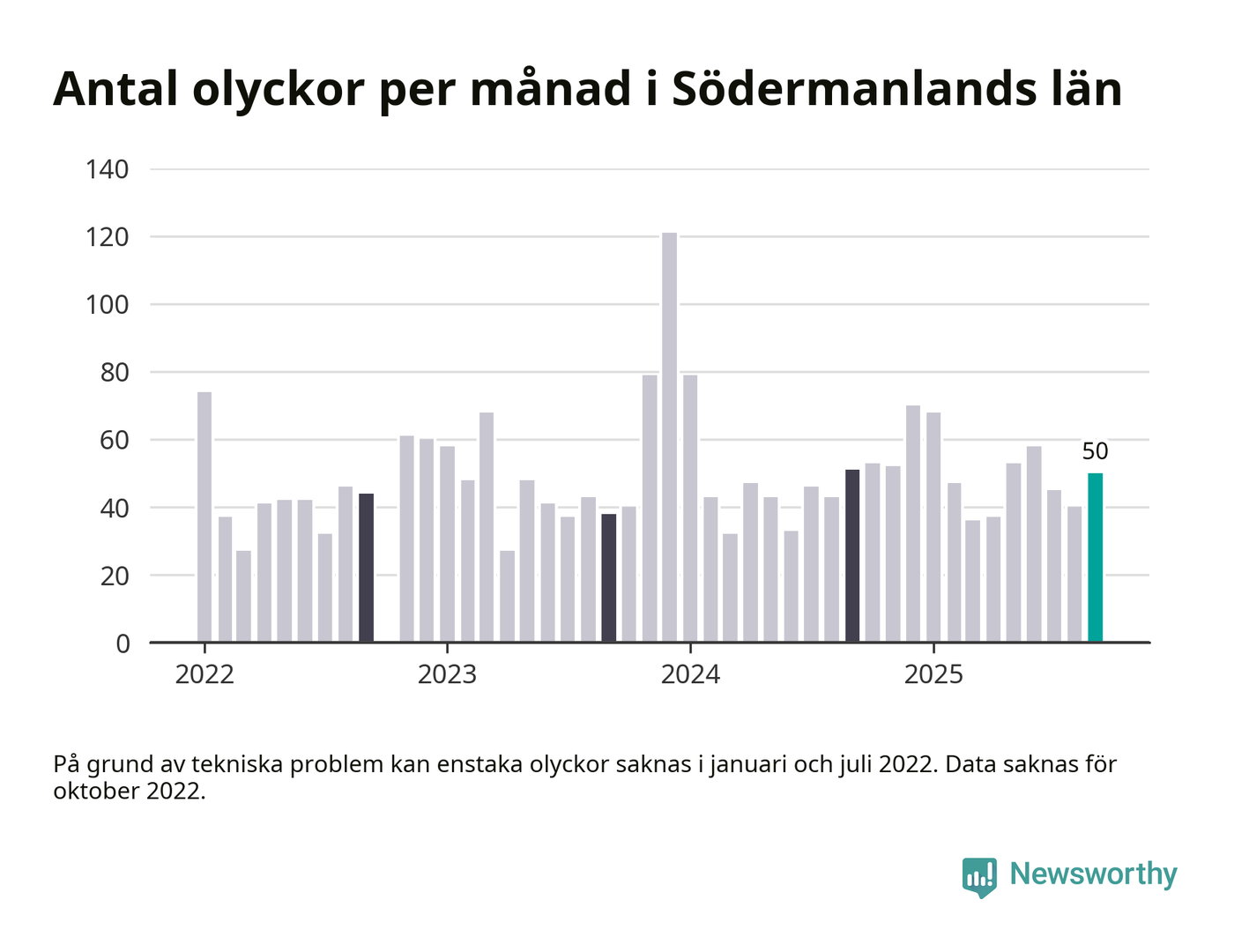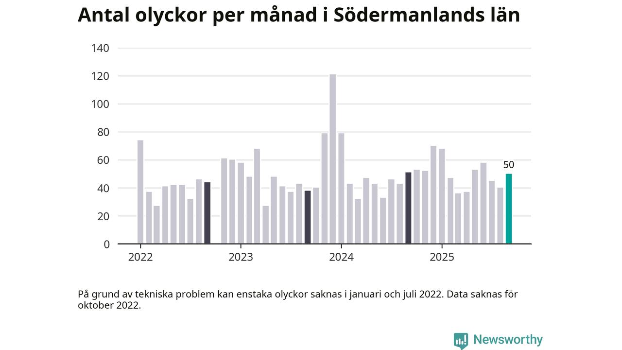 I Södermanlands län rapporterades 50 längs de stora vägarna i länet under september, visar data från Trafikverket som Newsworthy sammanställt.