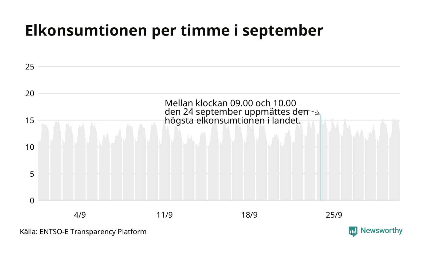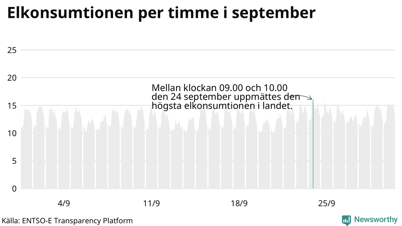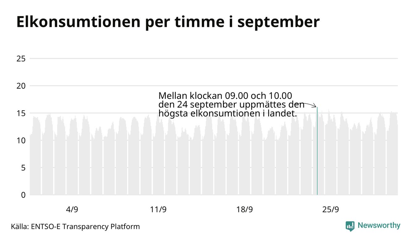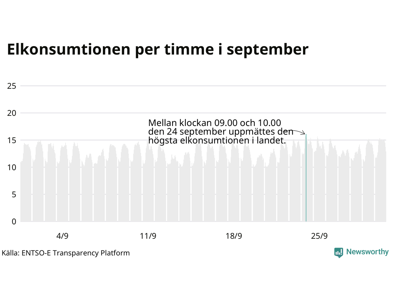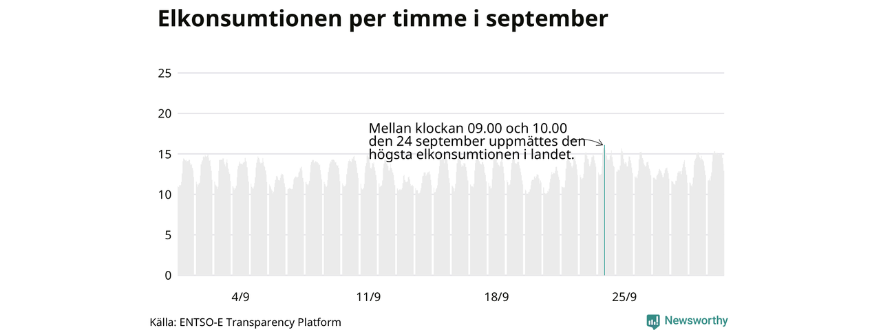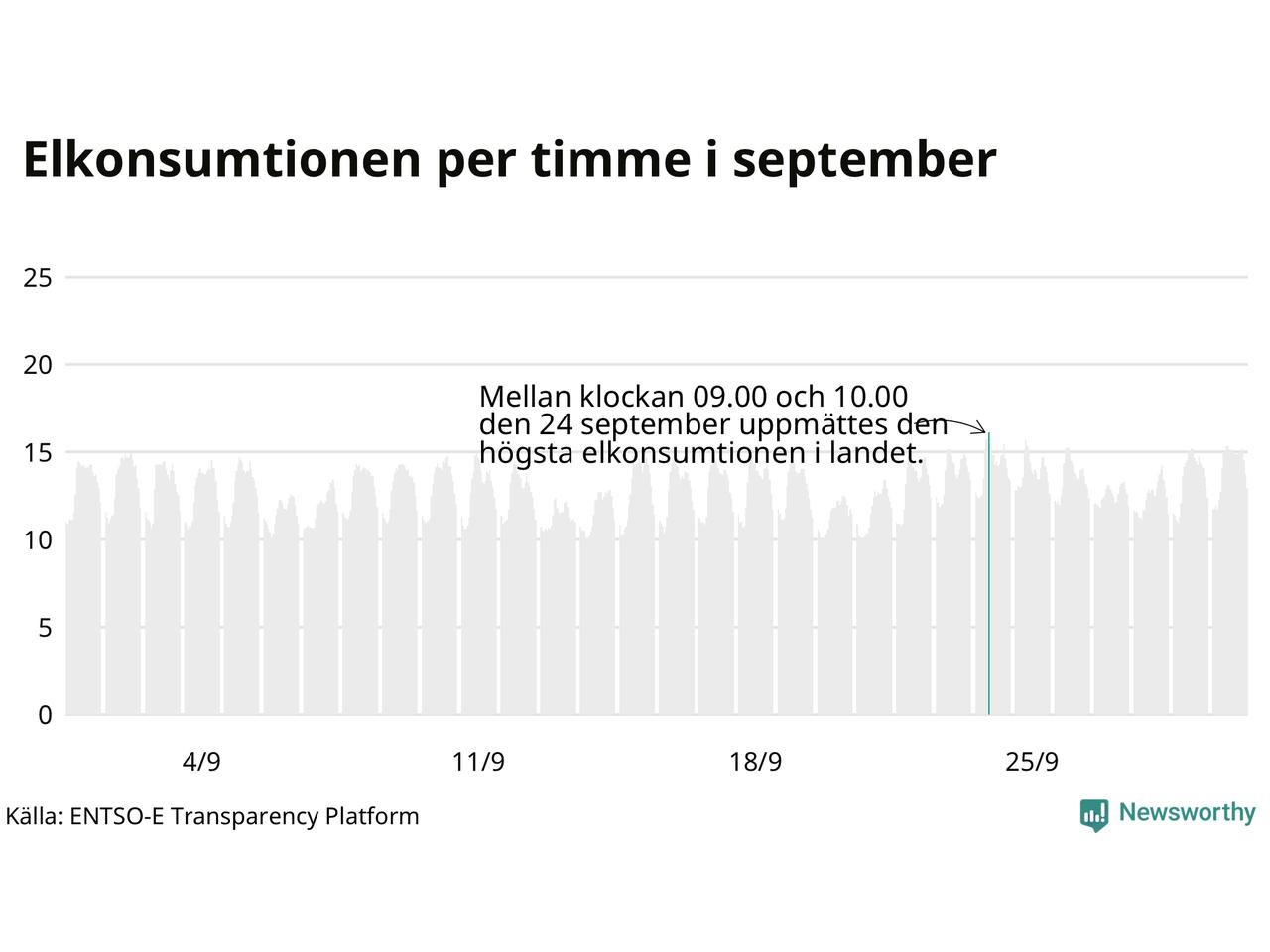 Den 24 september konsumerades som mest el under ett dygn i Sverige under månaden, det var också under det dygnet då månadens topptimme uppmättes, mellan klockan 9 och 10.