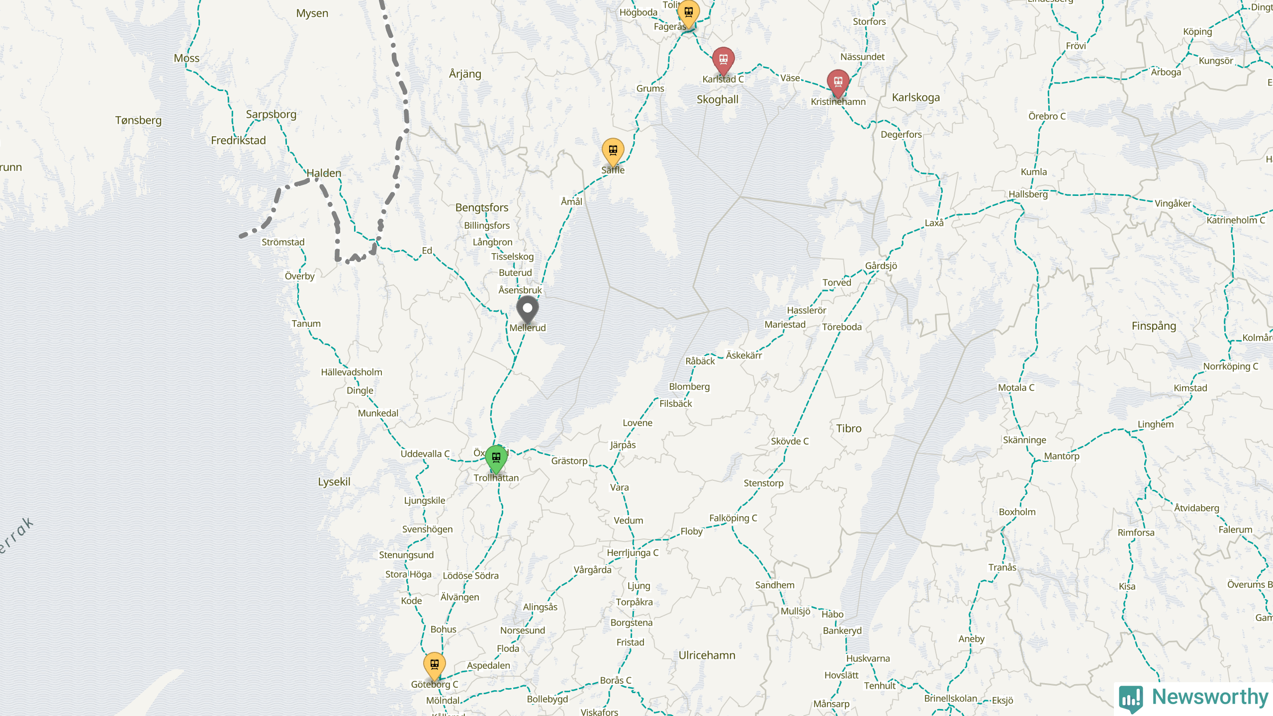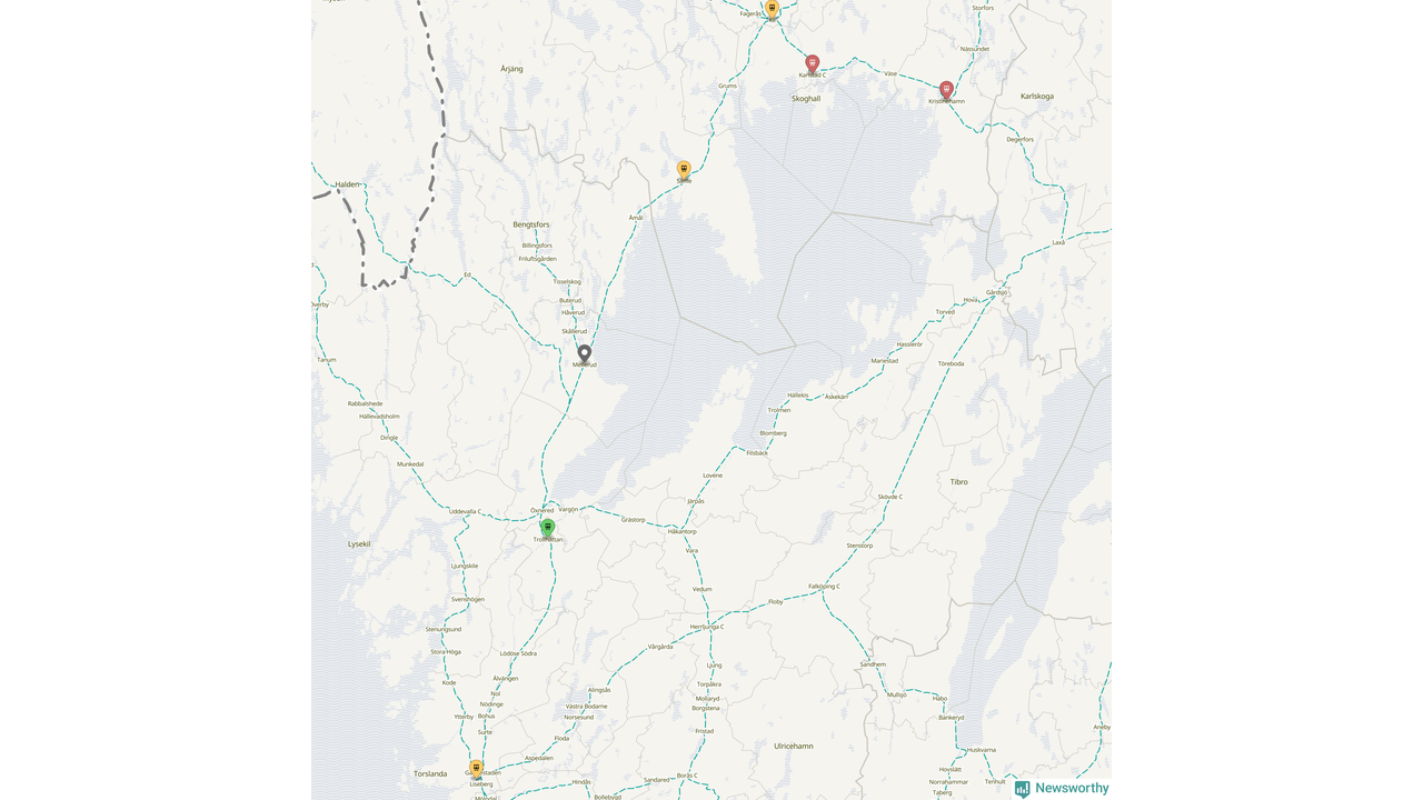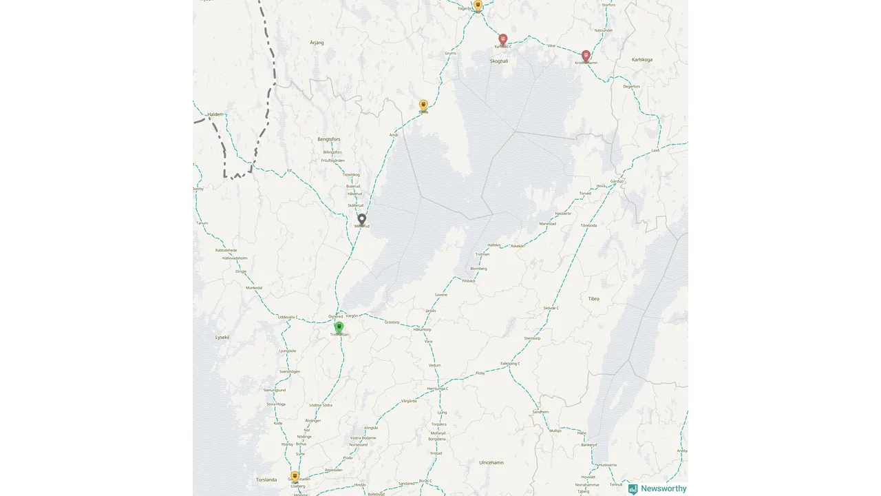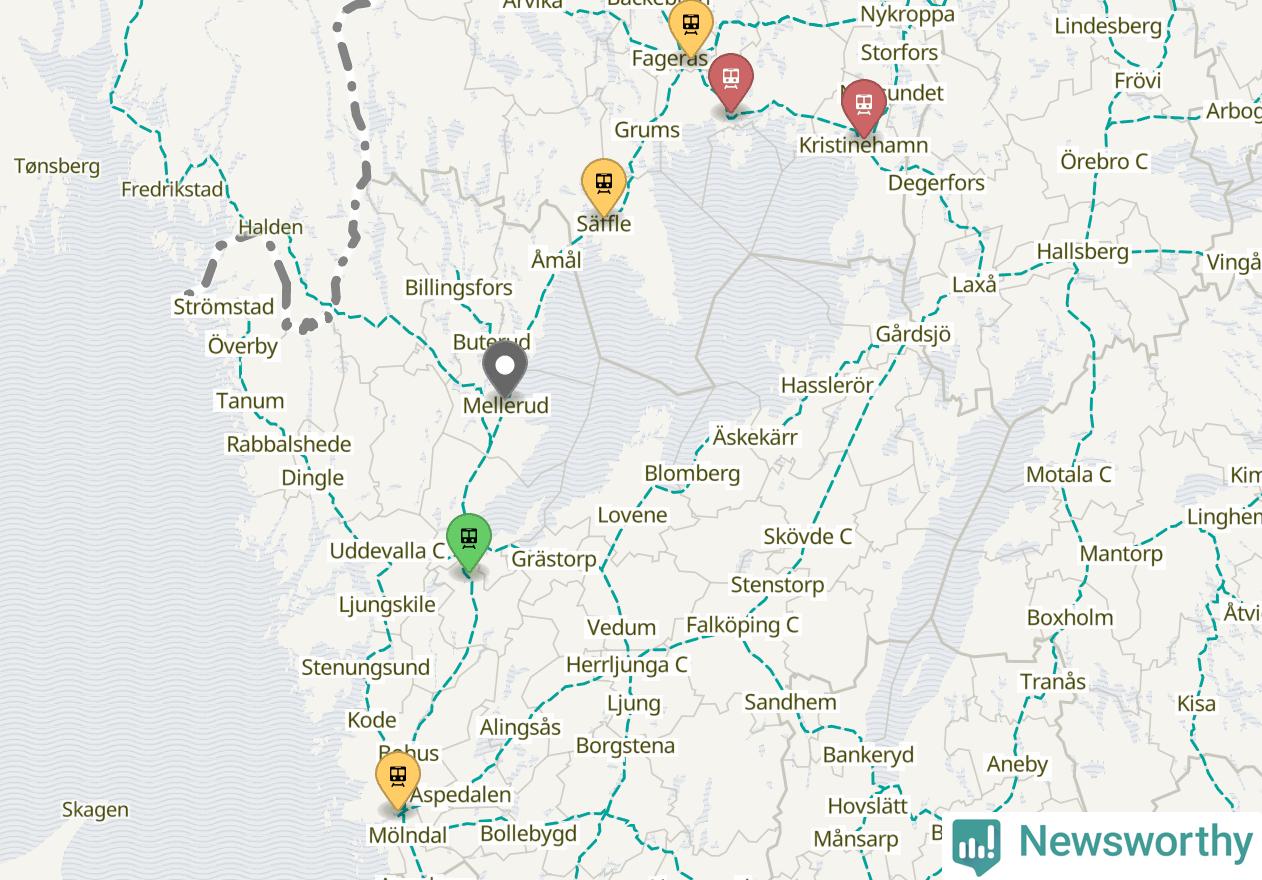 Kartdata från Mapbox, Newsworthy, OpenStreetMap och Trafikverket. Uppgifter om sträckor med passagerartrafik från jarnvag.net.