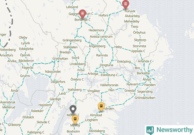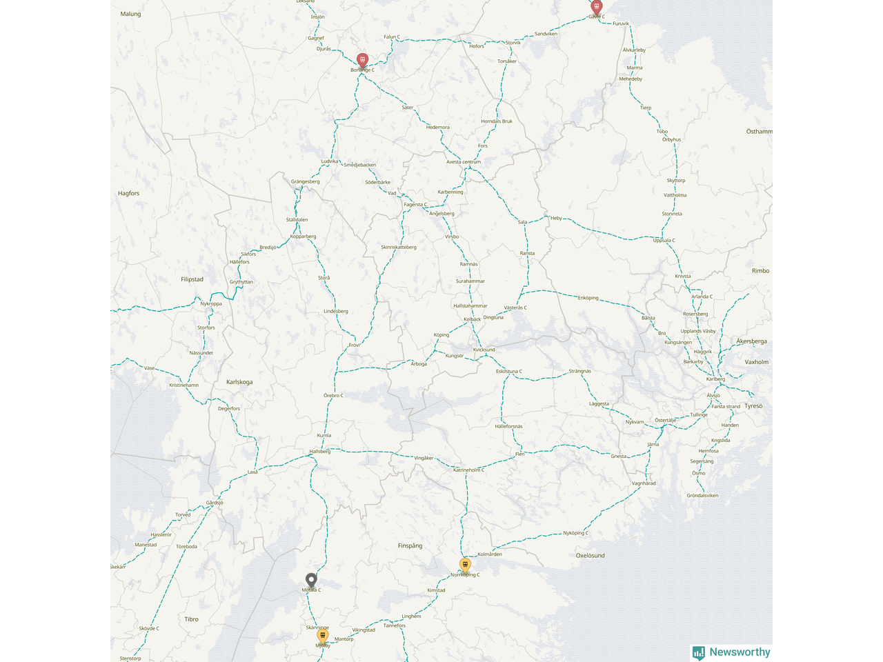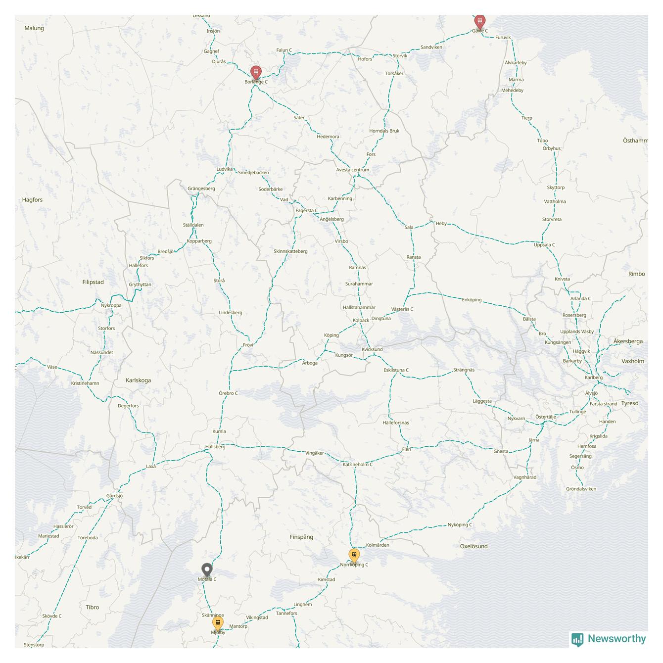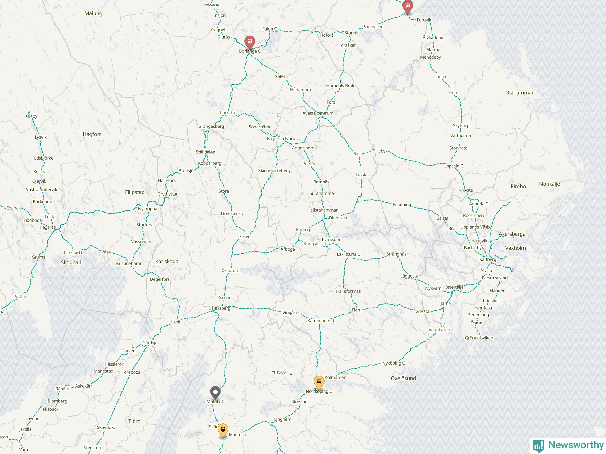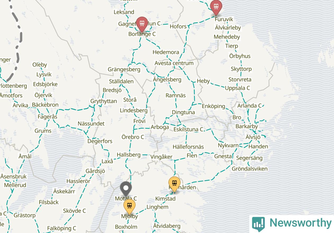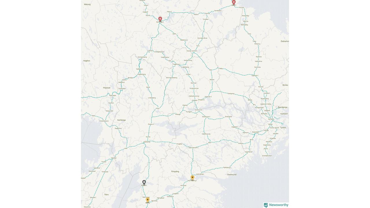 Kartdata från Mapbox, Newsworthy, OpenStreetMap och Trafikverket. Uppgifter om sträckor med passagerartrafik från jarnvag.net.