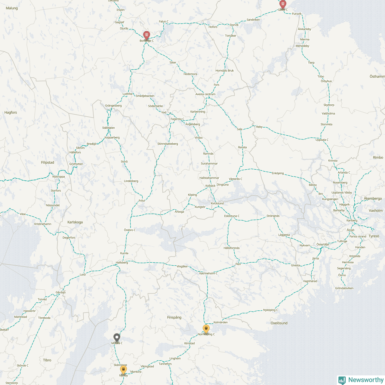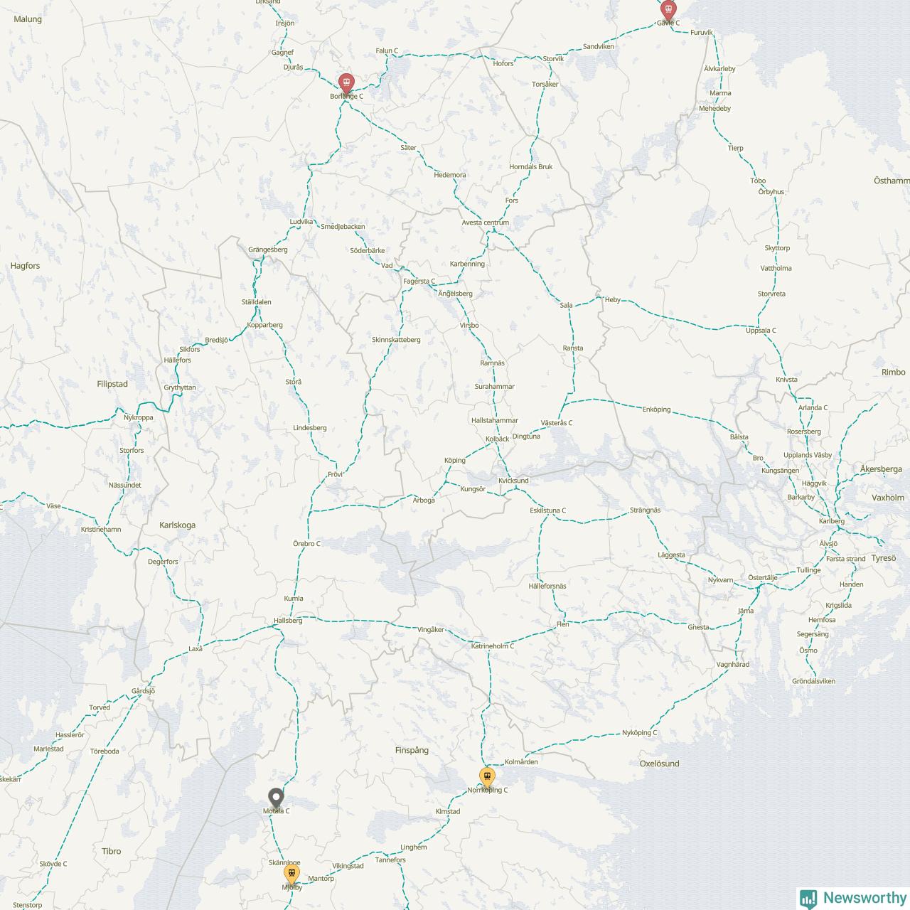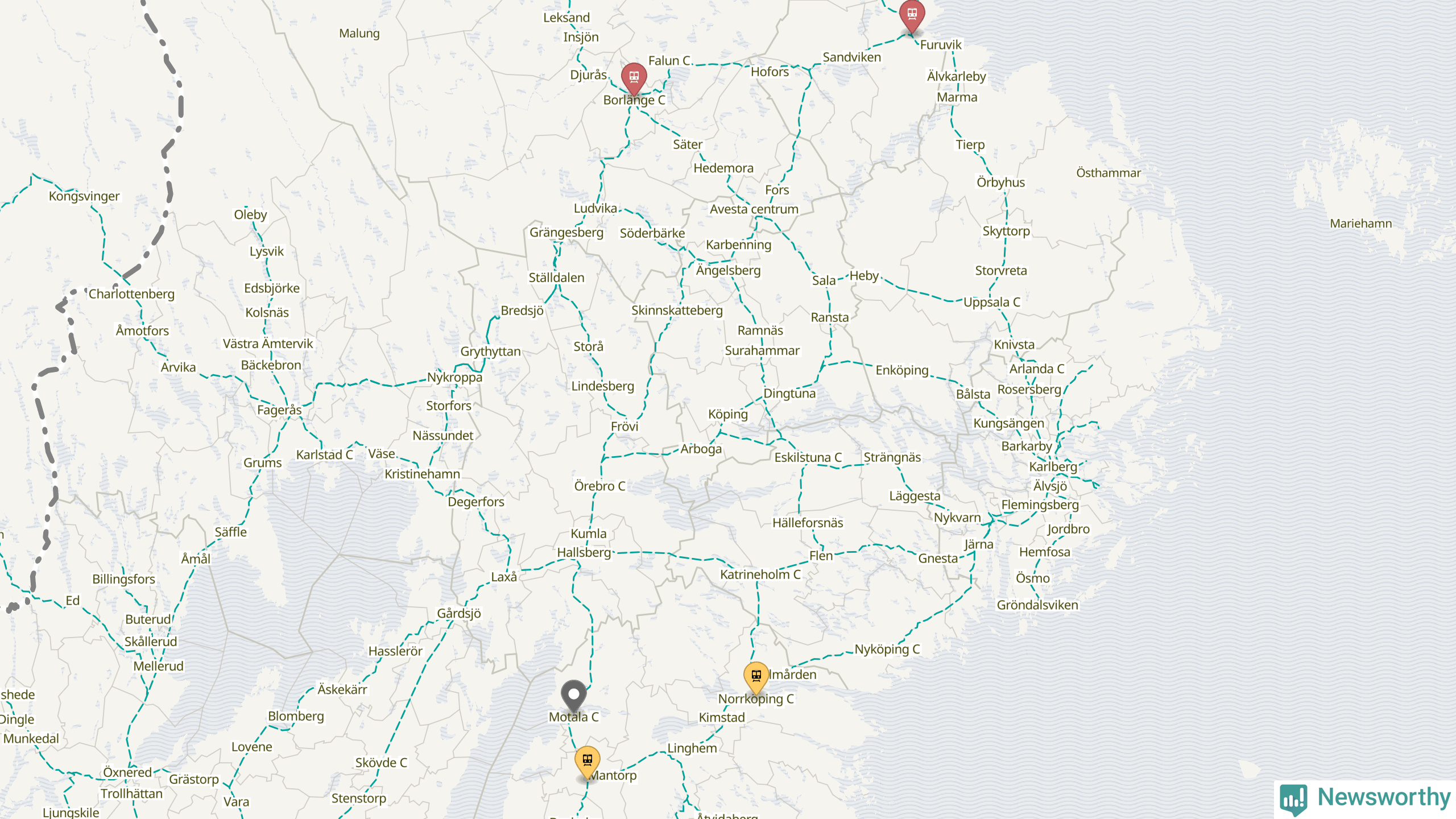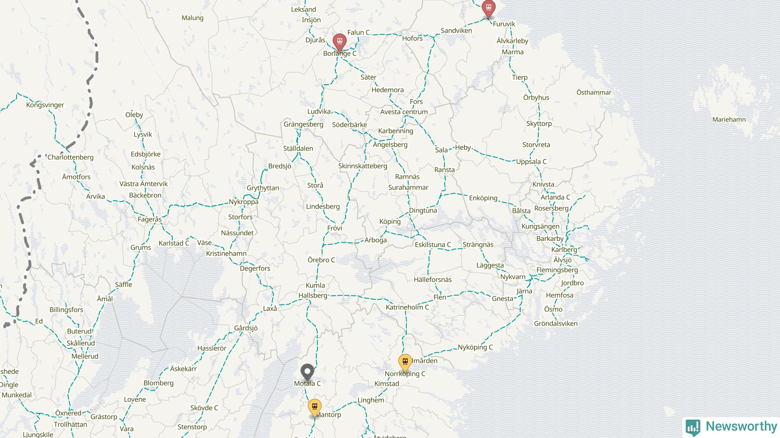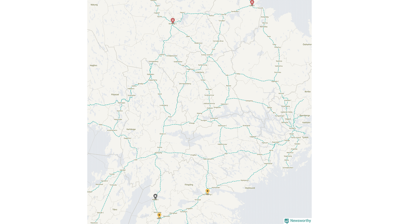 Kartdata från Mapbox, Newsworthy, OpenStreetMap och Trafikverket. Uppgifter om sträckor med passagerartrafik från jarnvag.net.