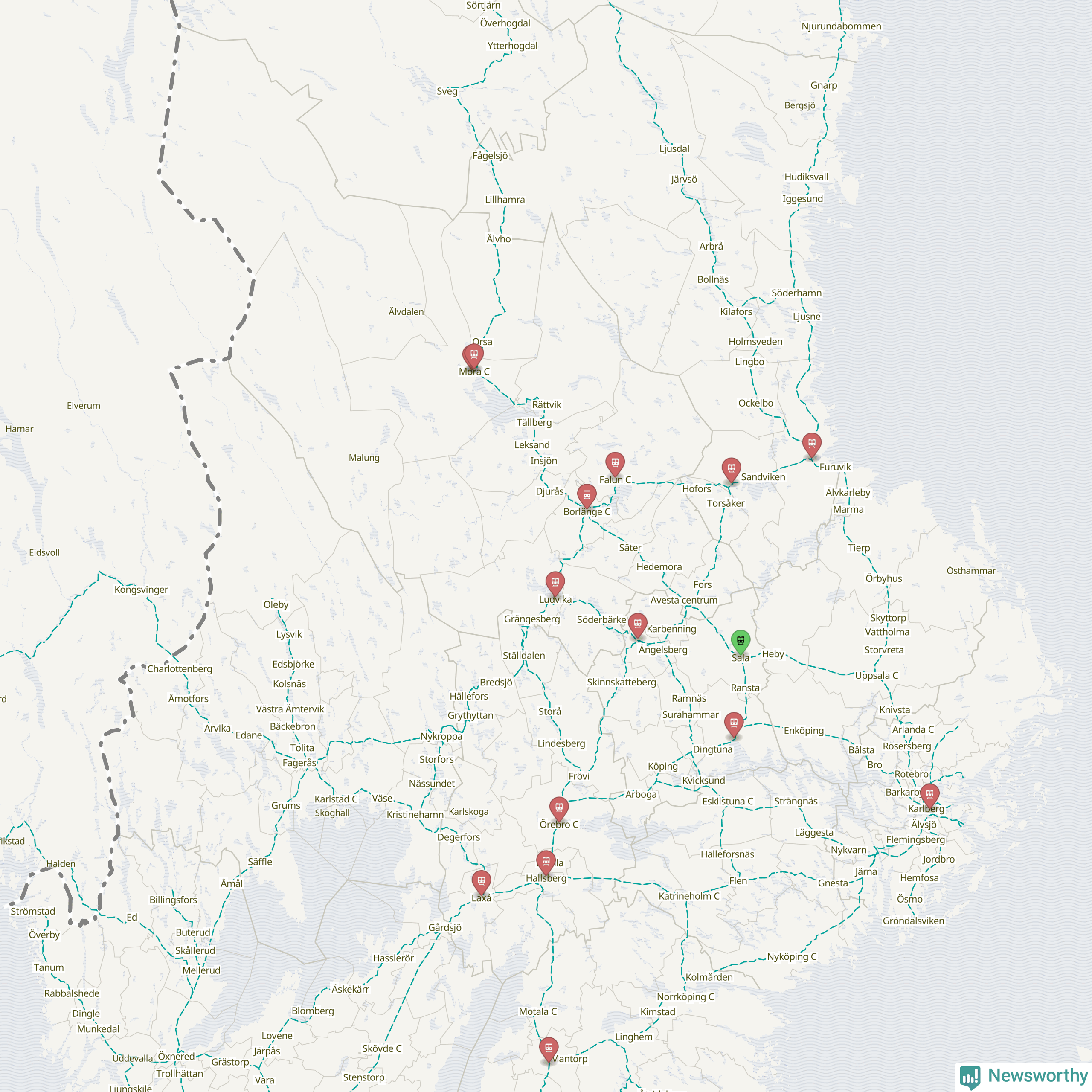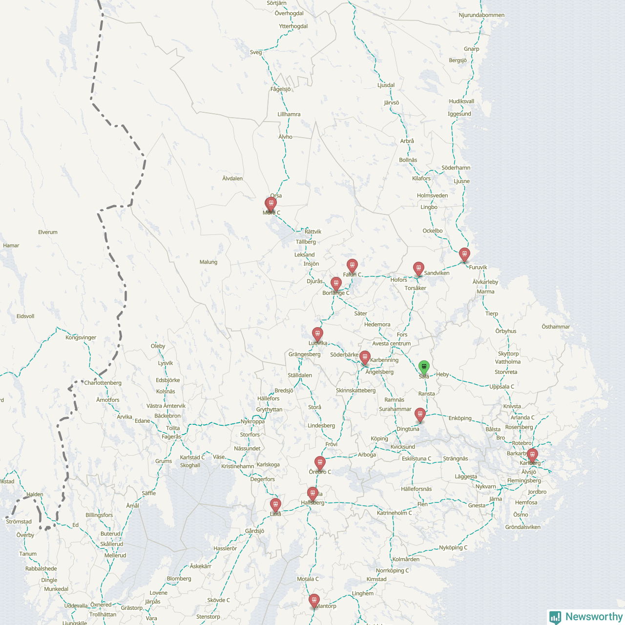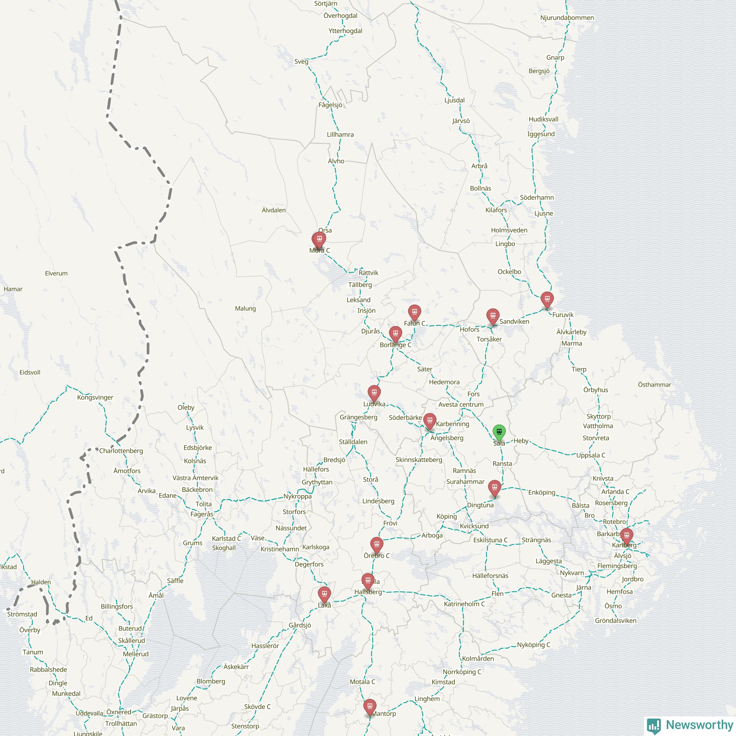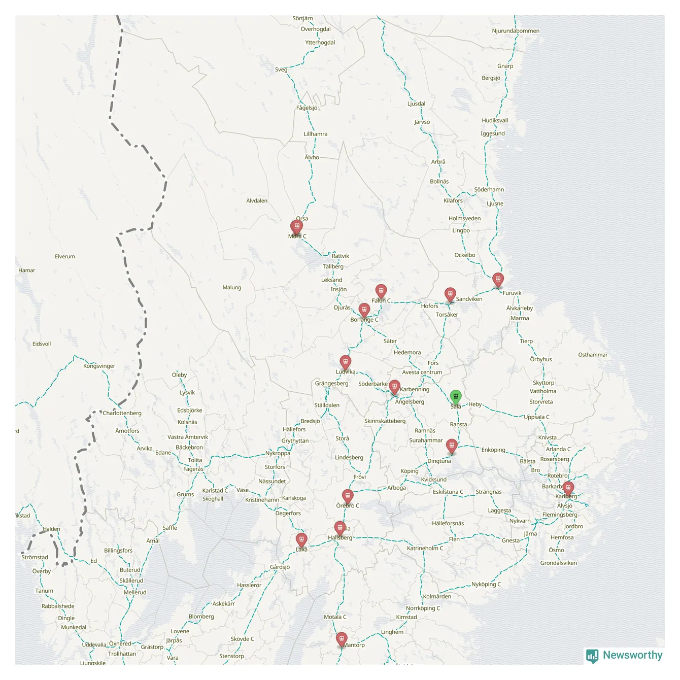 Kartdata från Mapbox, Newsworthy, OpenStreetMap och Trafikverket. Uppgifter om sträckor med passagerartrafik från jarnvag.net.