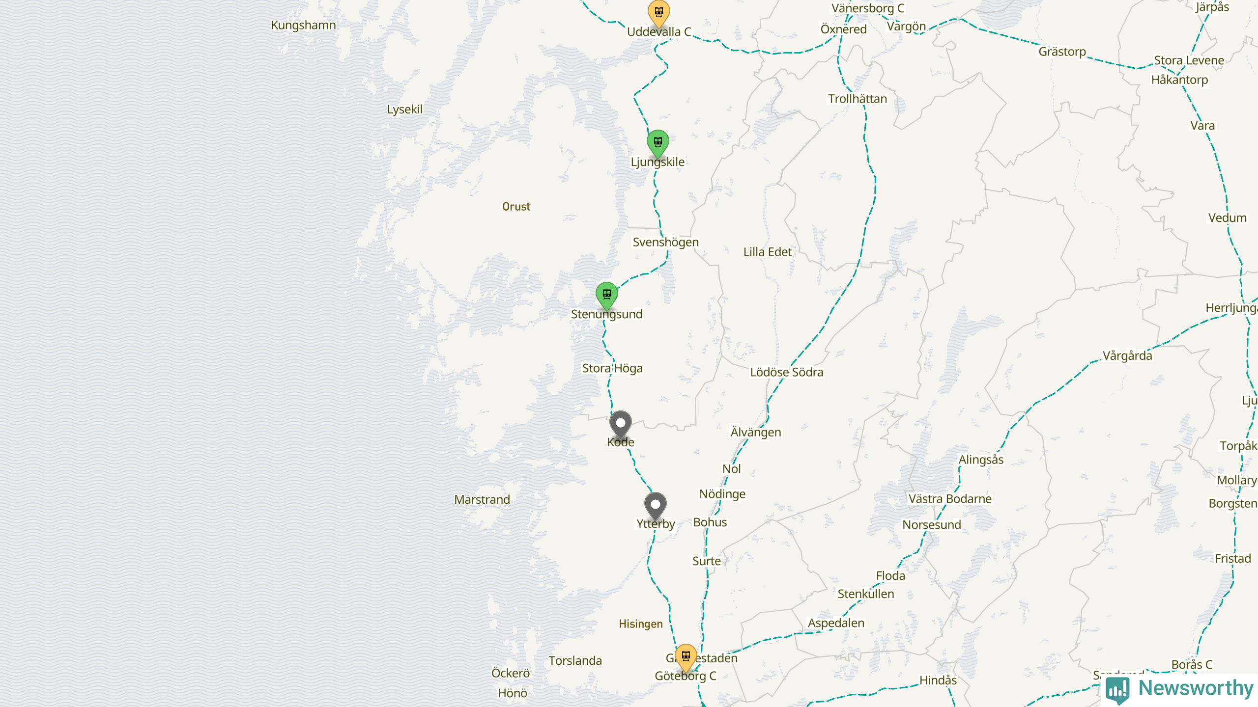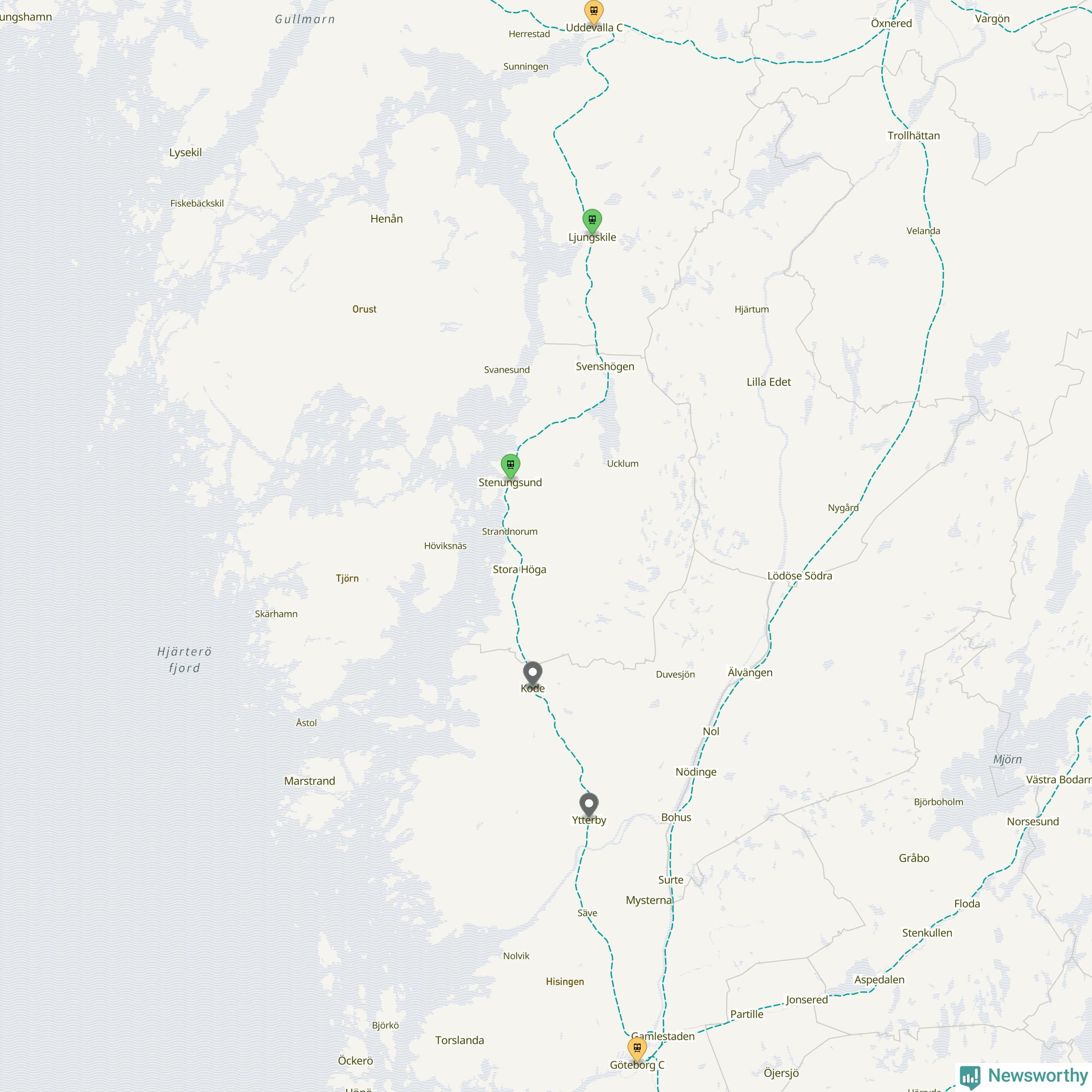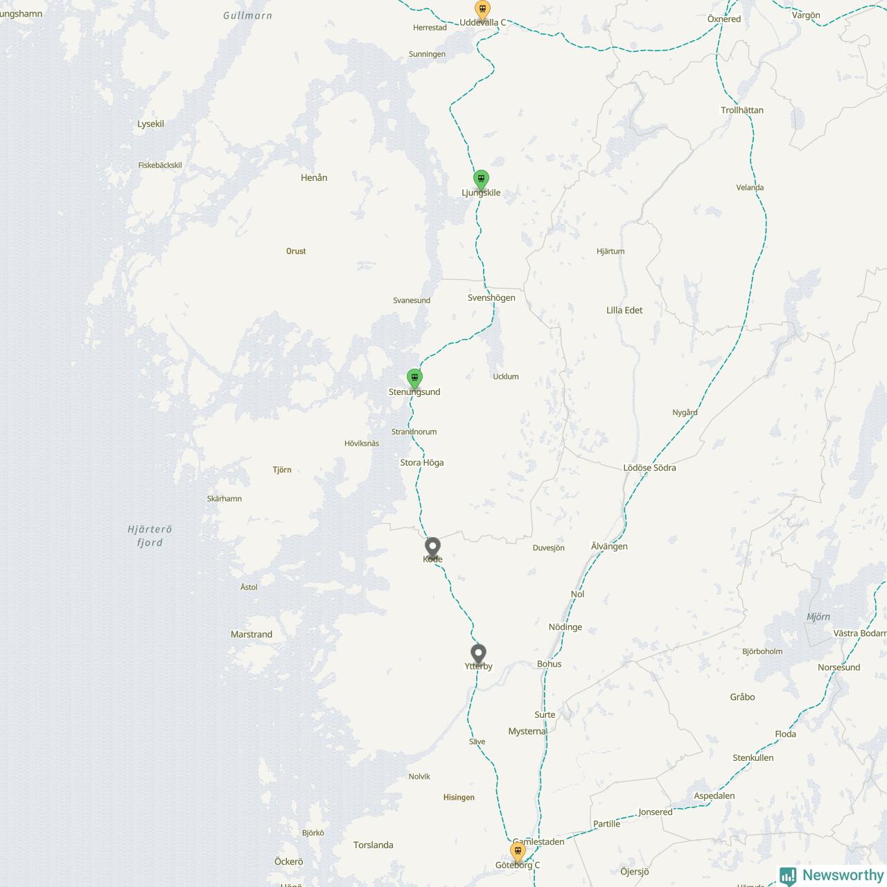 Av omkring 1 500 tåg som passerade Kode eller Ytterby i september var 84 mer än fem minuter sena. Det motsvarar 6 procent.
