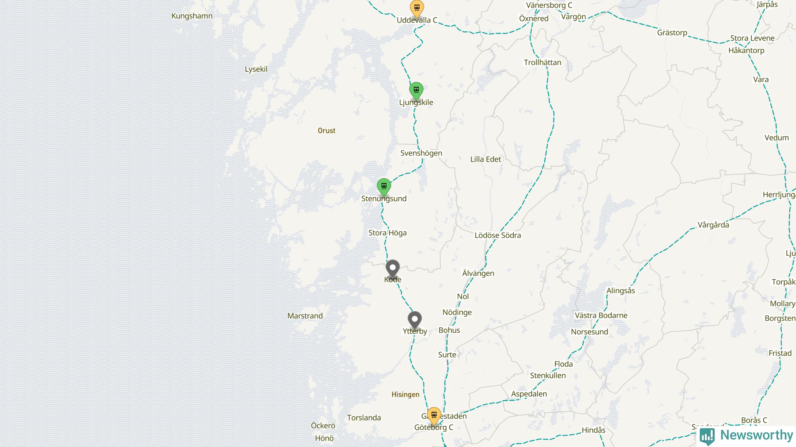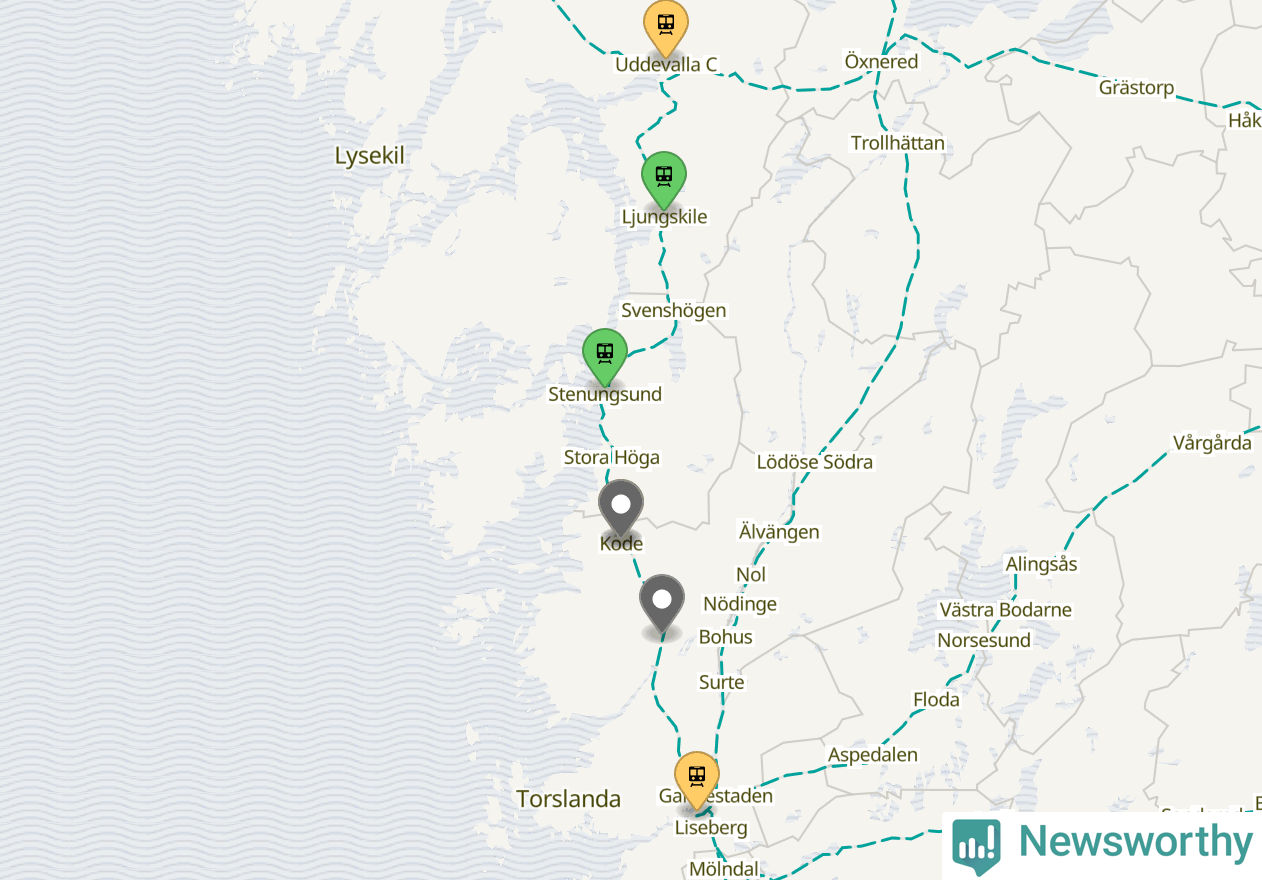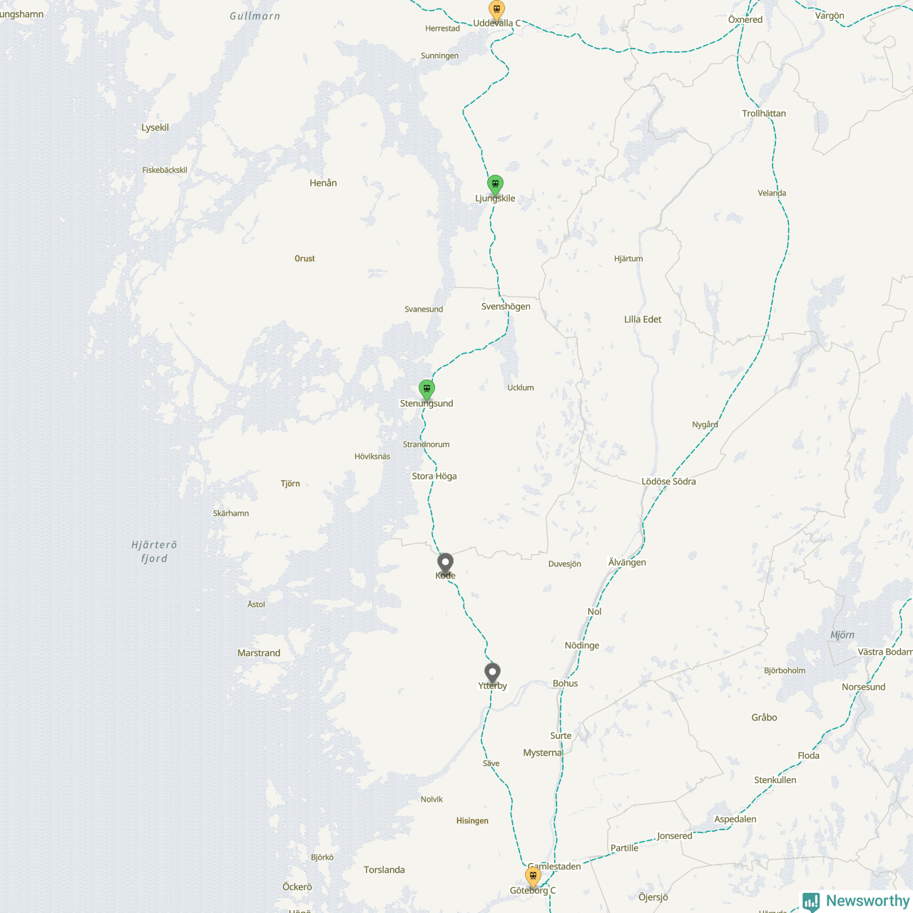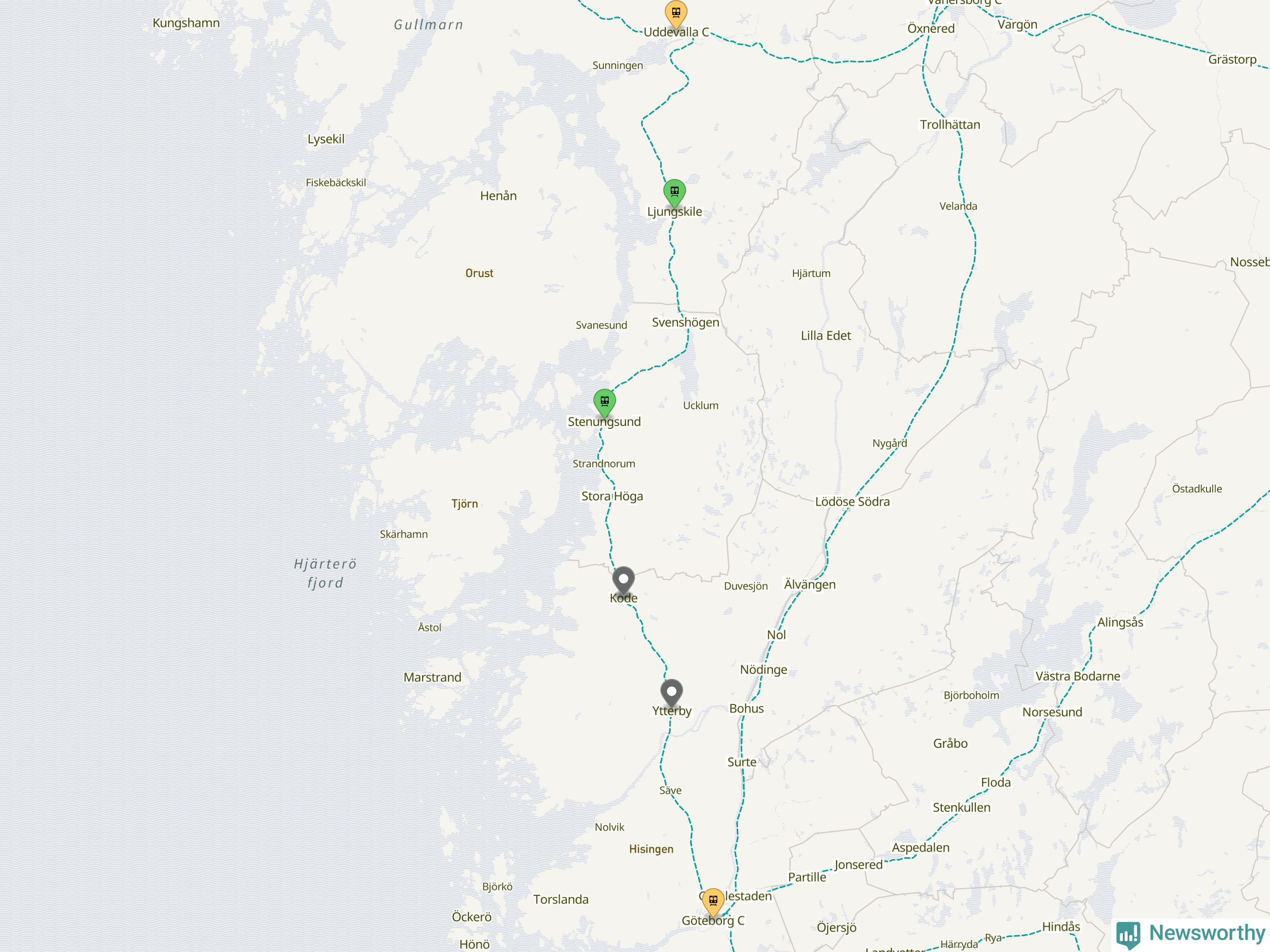 Av omkring 1 500 tåg som passerade Kode eller Ytterby i september var 84 mer än fem minuter sena. Det motsvarar 6 procent.