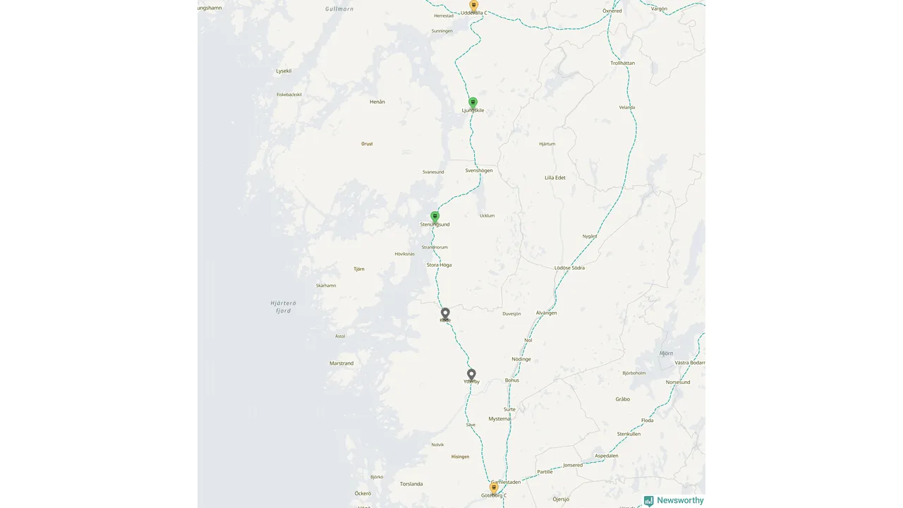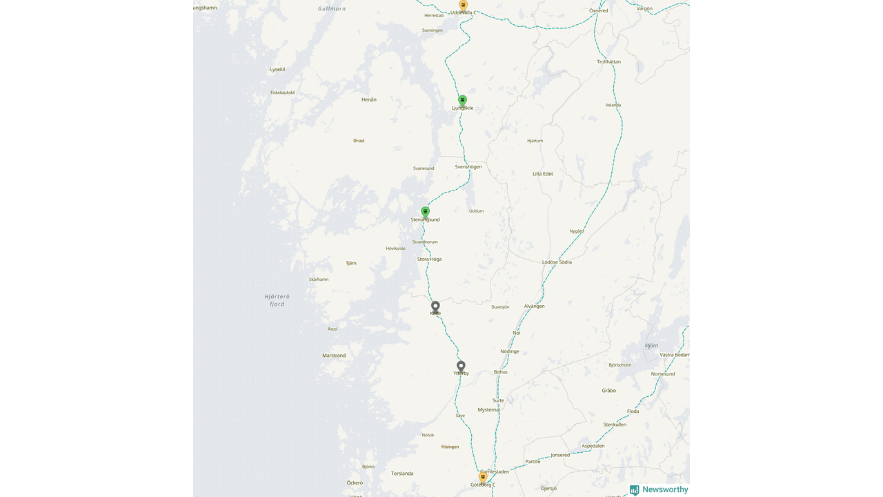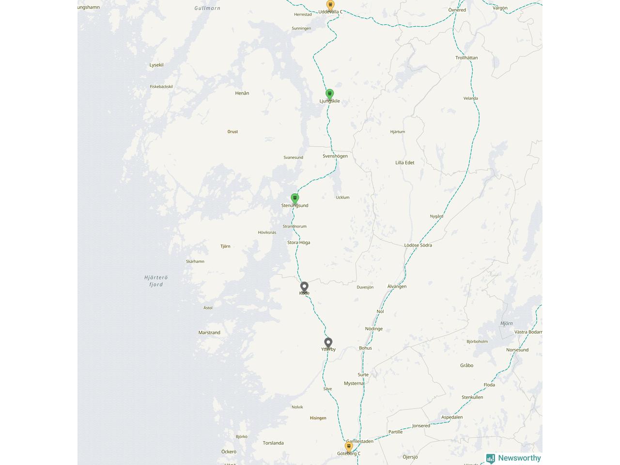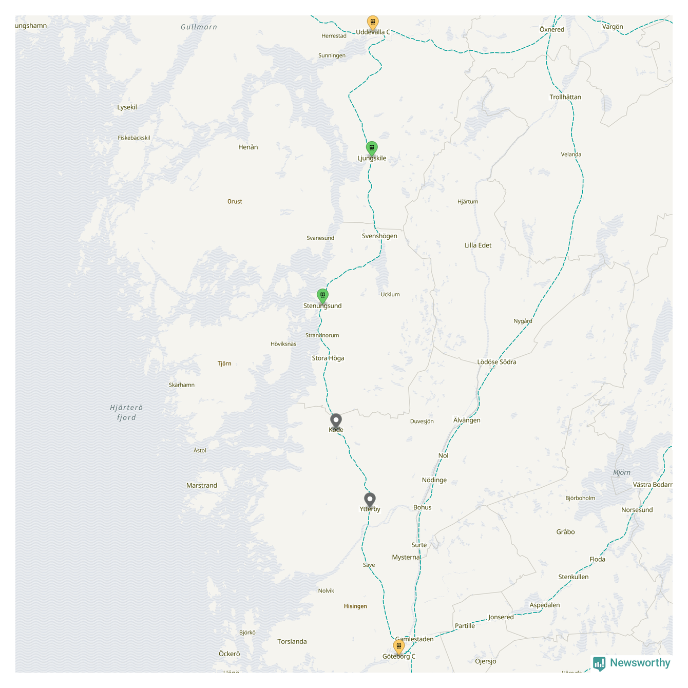 Kartdata från Mapbox, Newsworthy, OpenStreetMap och Trafikverket. Uppgifter om sträckor med passagerartrafik från jarnvag.net.
