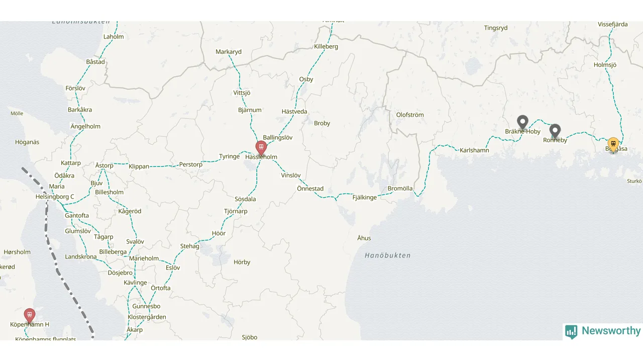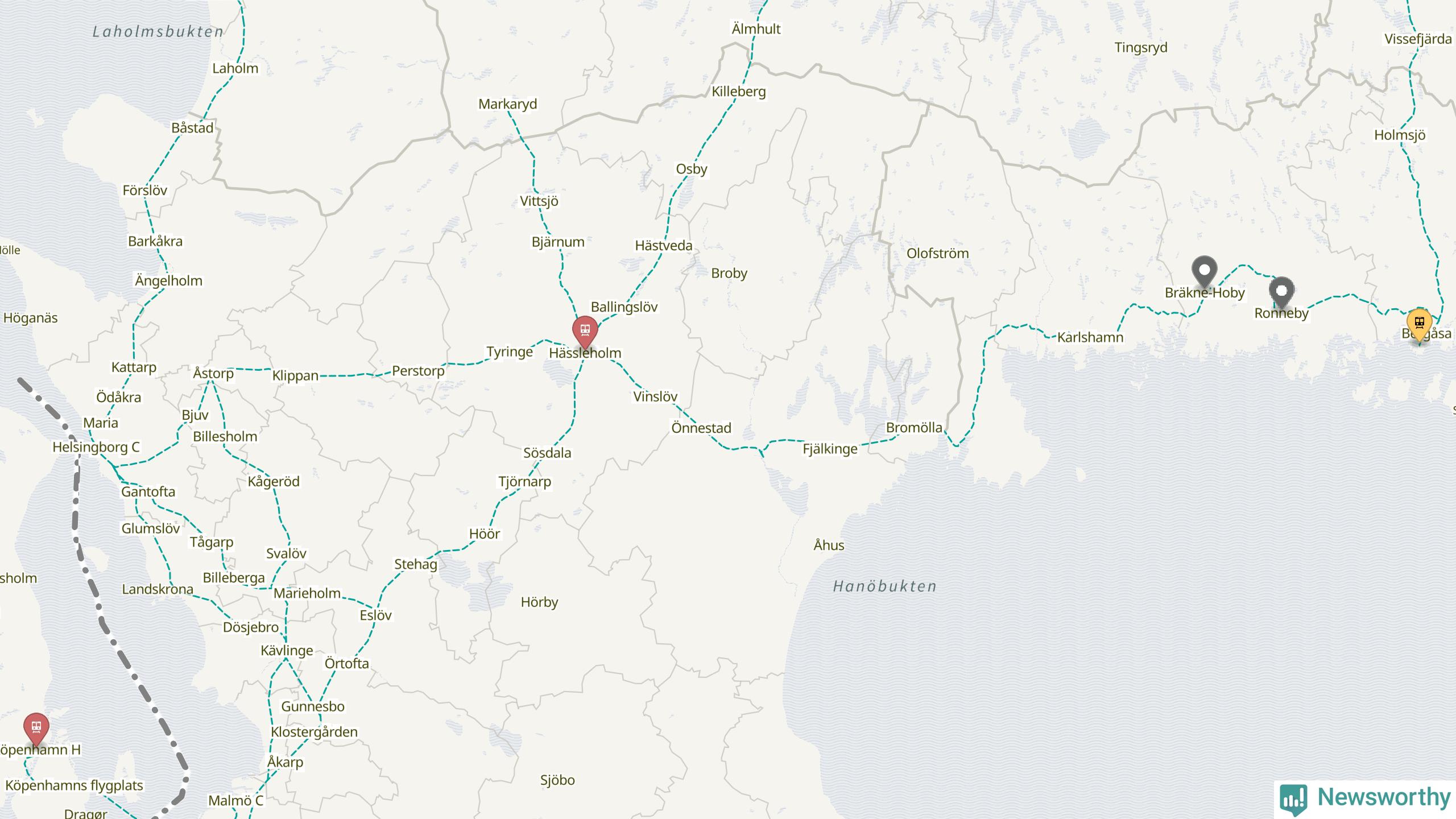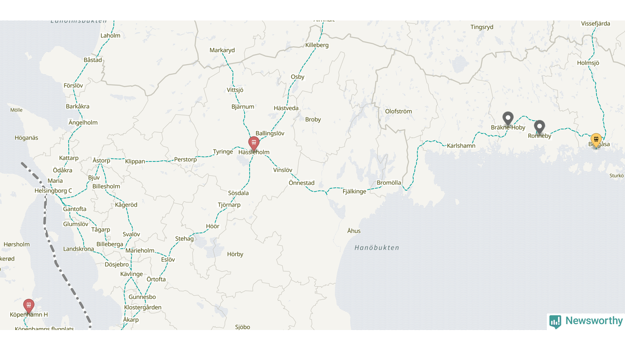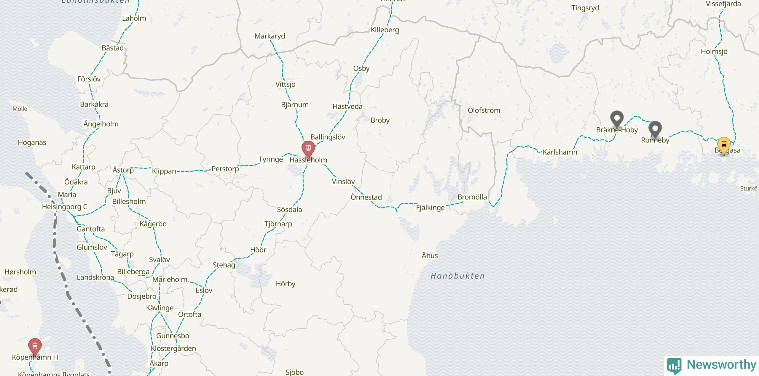 Kartdata från Mapbox, Newsworthy, OpenStreetMap och Trafikverket. Uppgifter om sträckor med passagerartrafik från jarnvag.net.