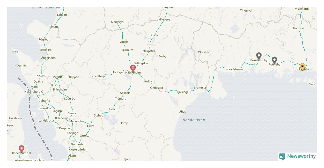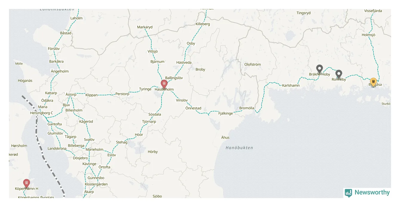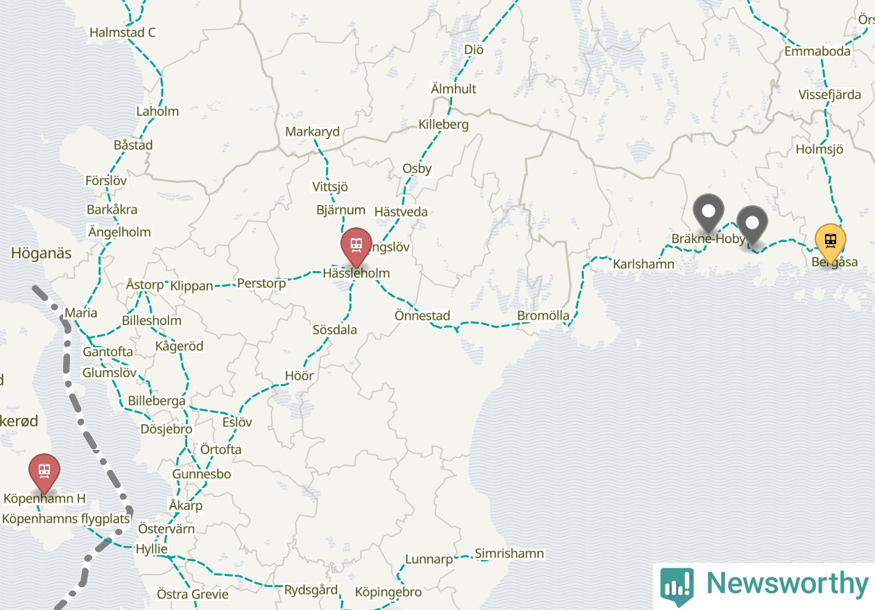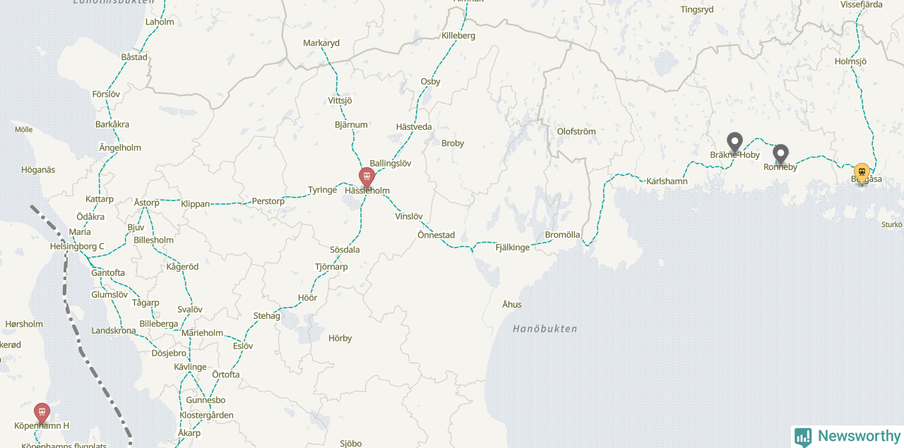 Kartdata från Mapbox, Newsworthy, OpenStreetMap och Trafikverket. Uppgifter om sträckor med passagerartrafik från jarnvag.net.