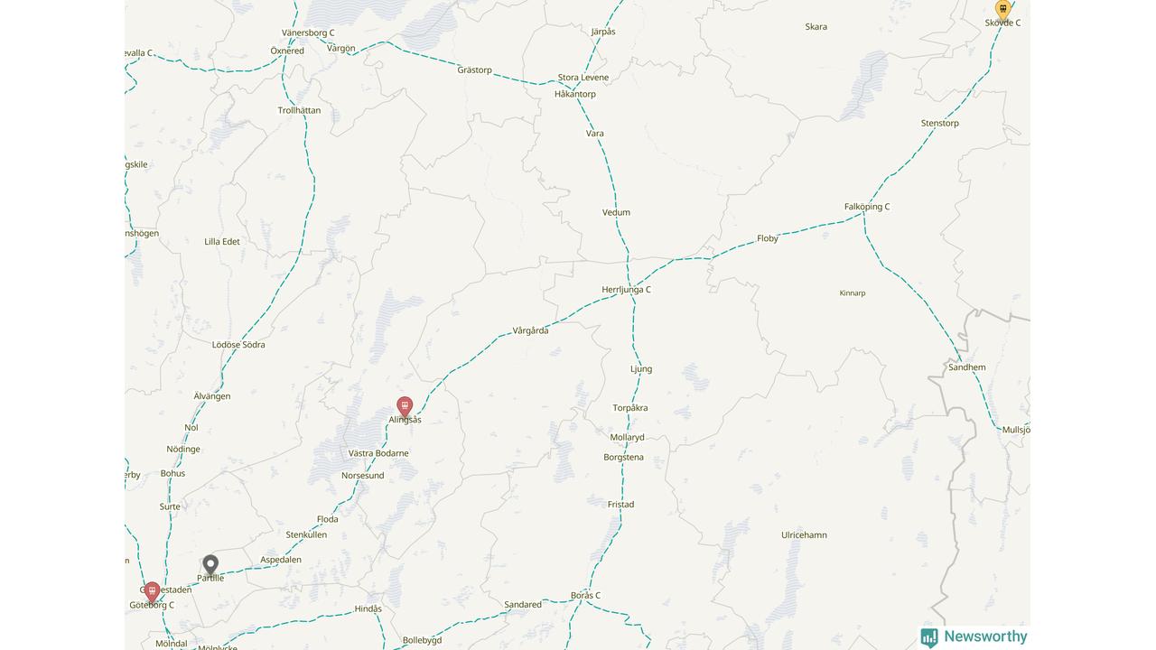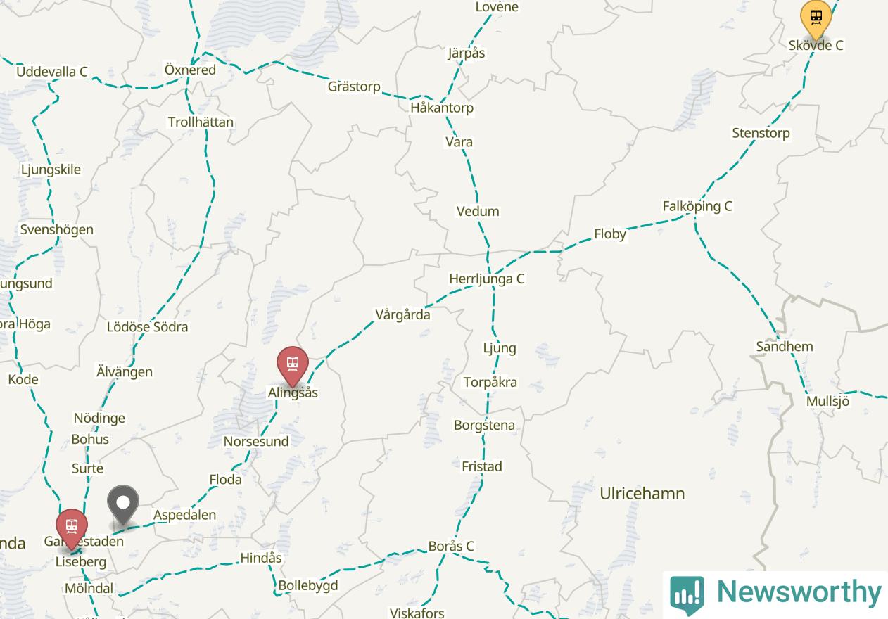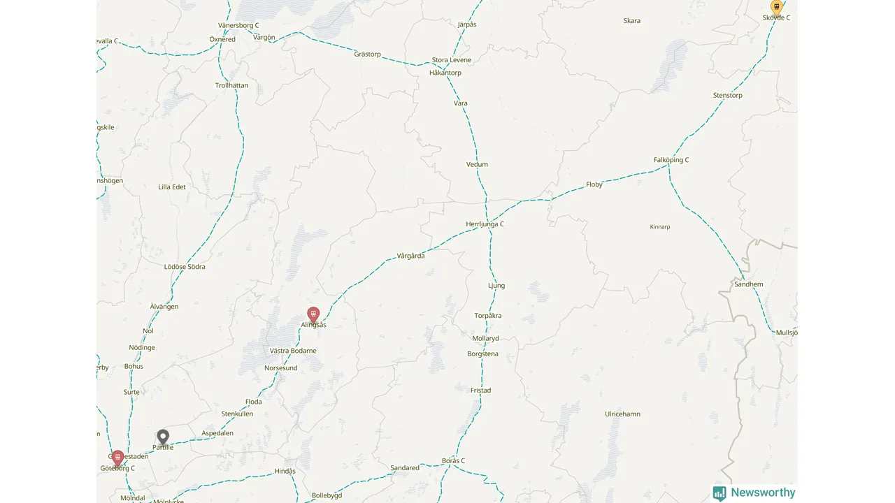 Kartdata från Mapbox, Newsworthy, OpenStreetMap och Trafikverket. Uppgifter om sträckor med passagerartrafik från jarnvag.net.