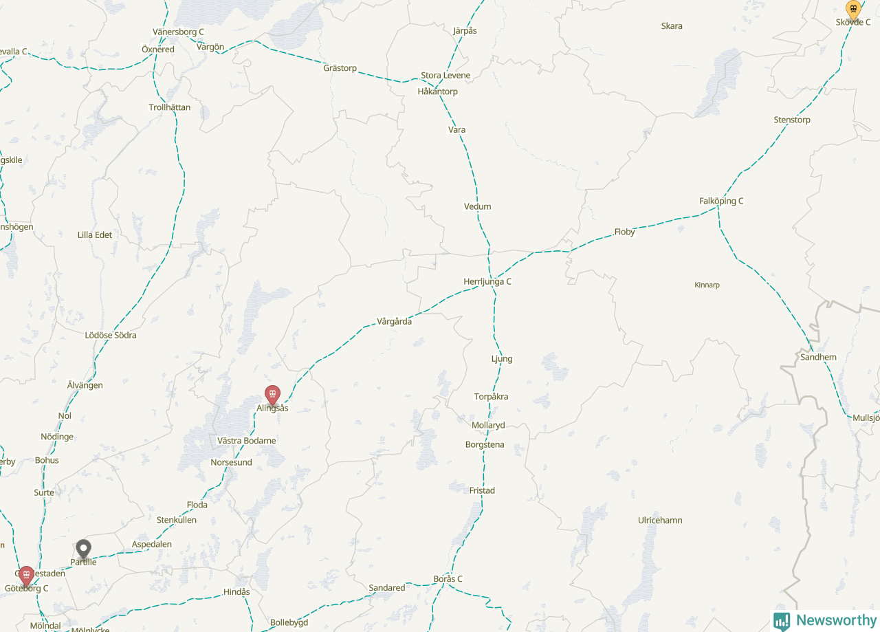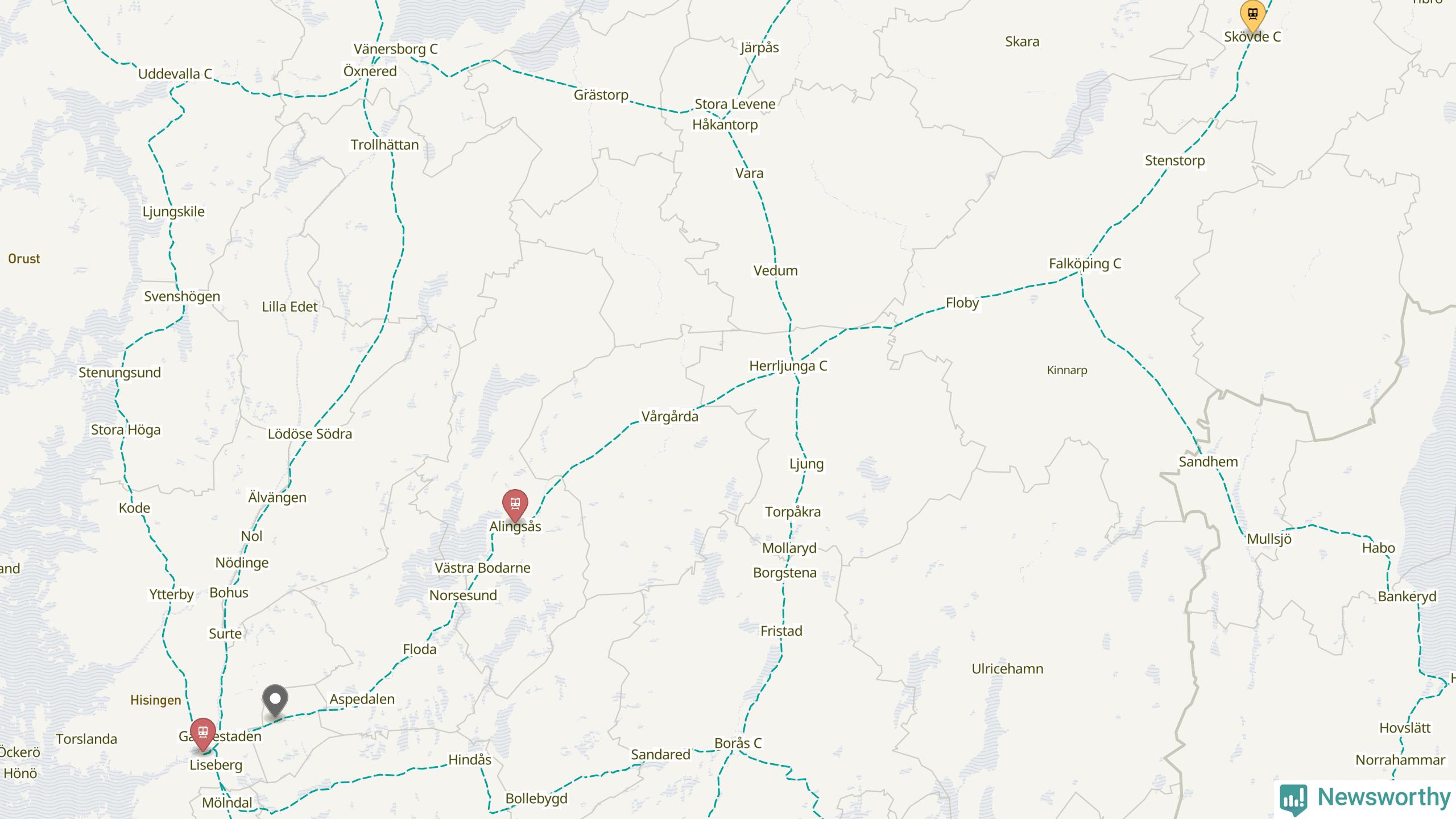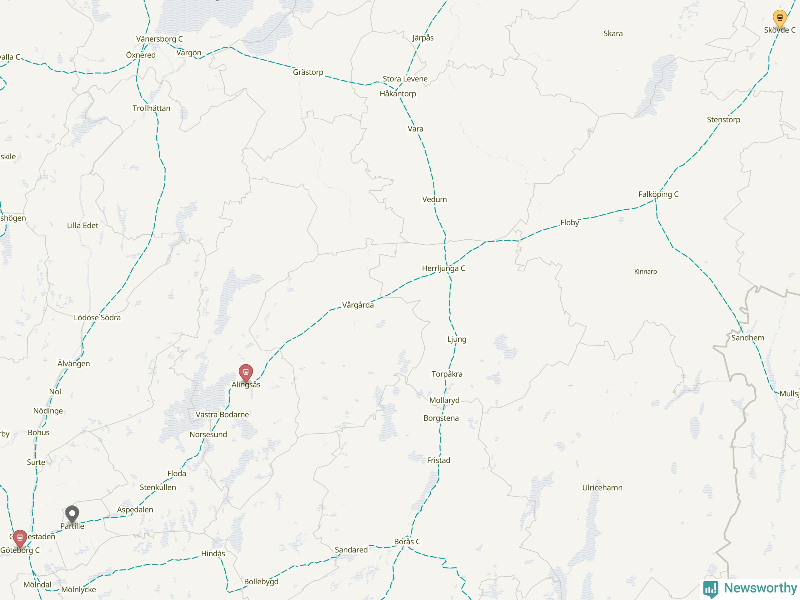 Kartdata från Mapbox, Newsworthy, OpenStreetMap och Trafikverket. Uppgifter om sträckor med passagerartrafik från jarnvag.net.