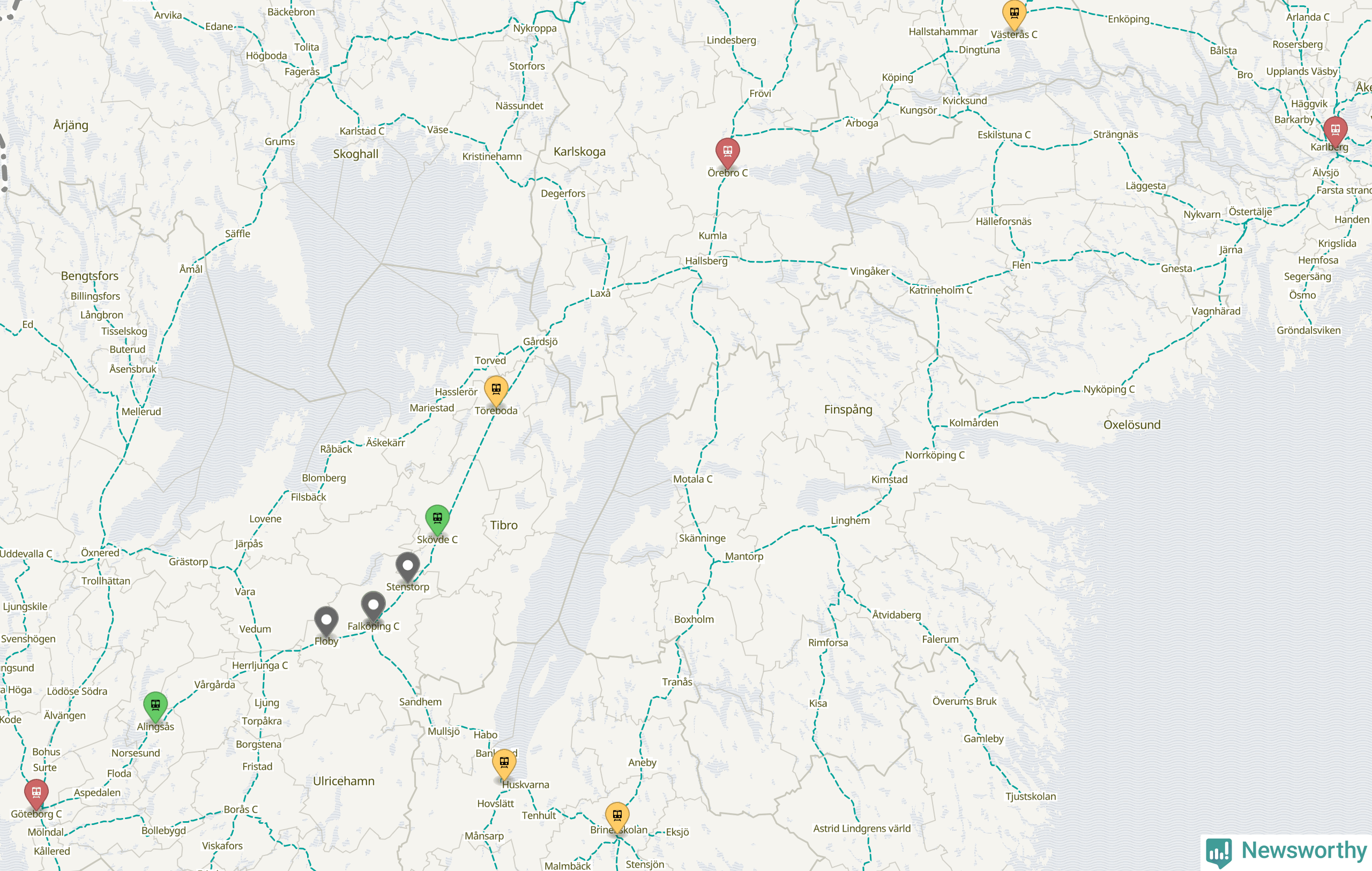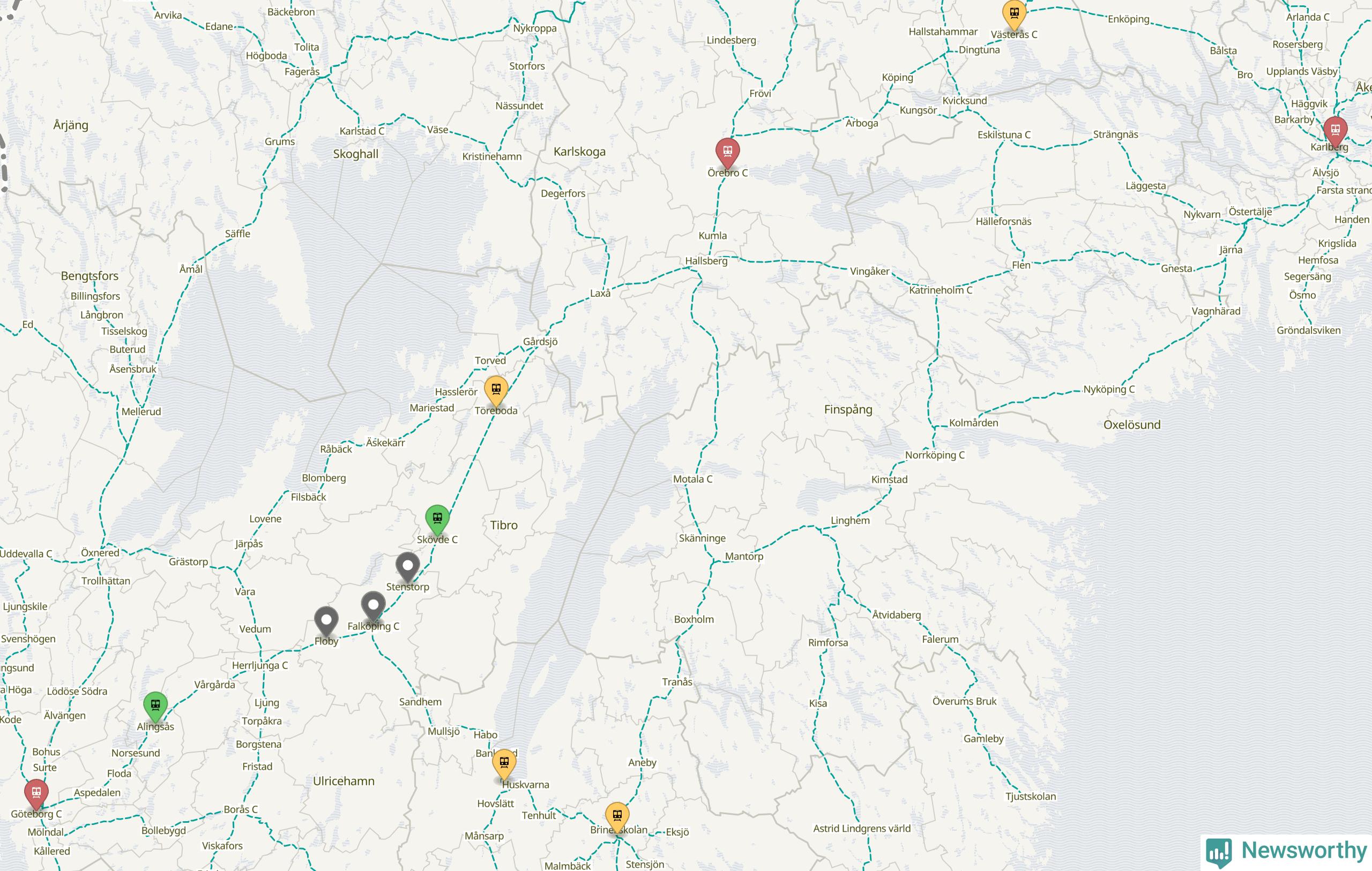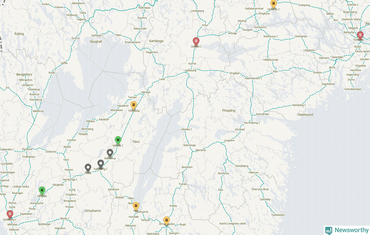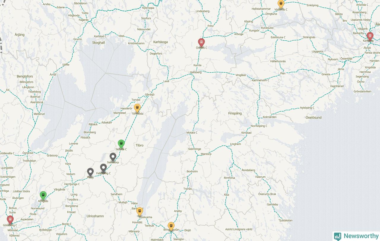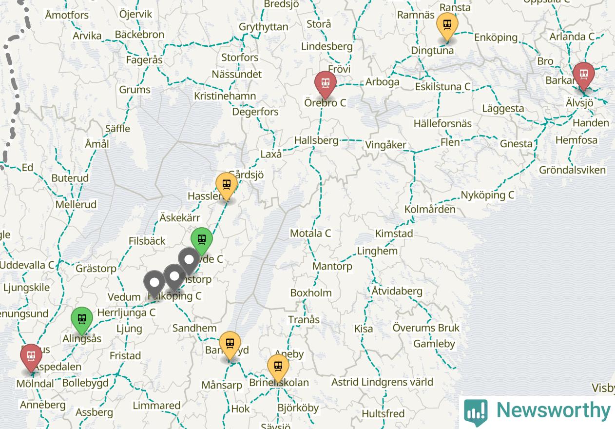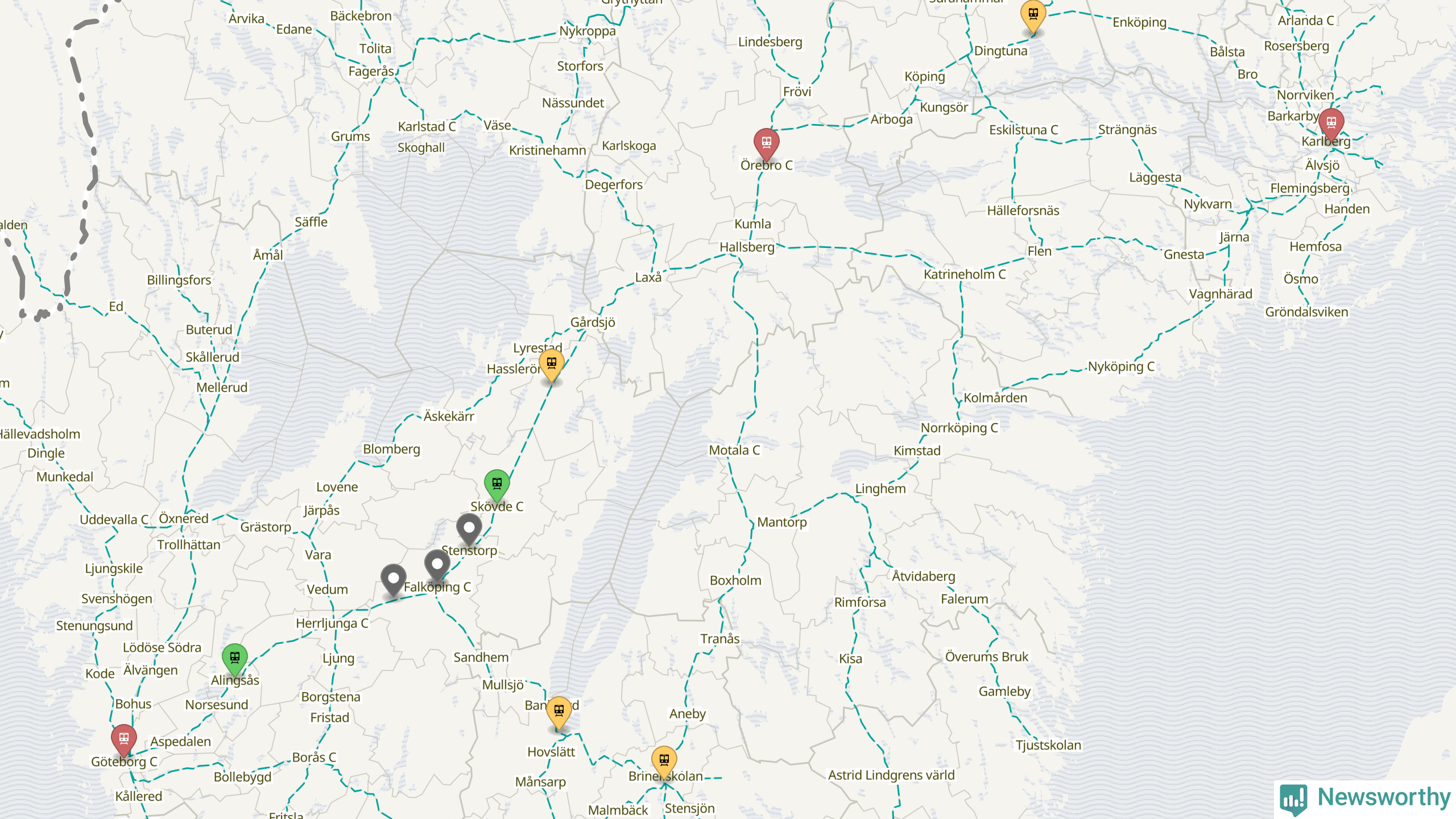 Kartdata från Mapbox, Newsworthy, OpenStreetMap och Trafikverket. Uppgifter om sträckor med passagerartrafik från jarnvag.net.