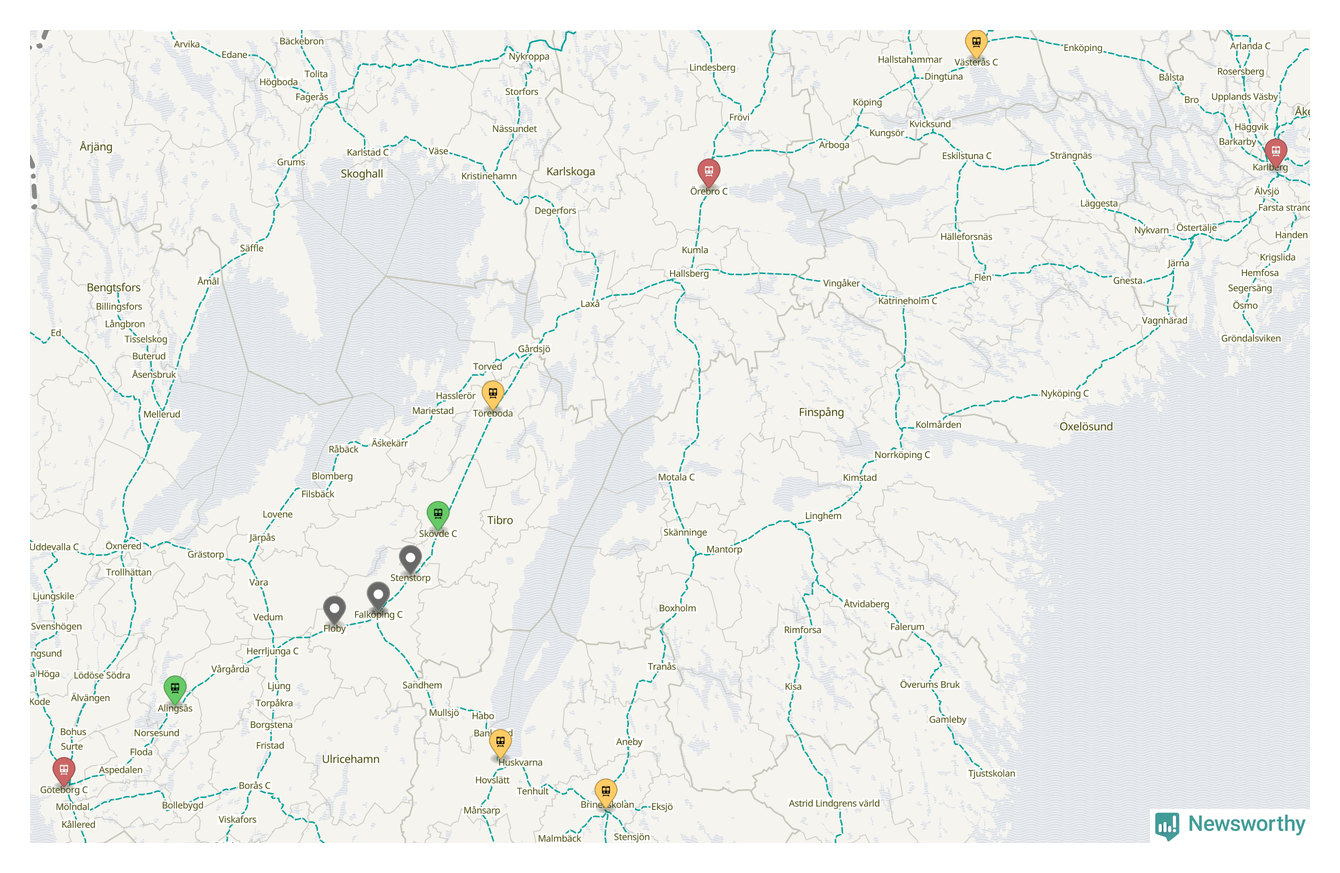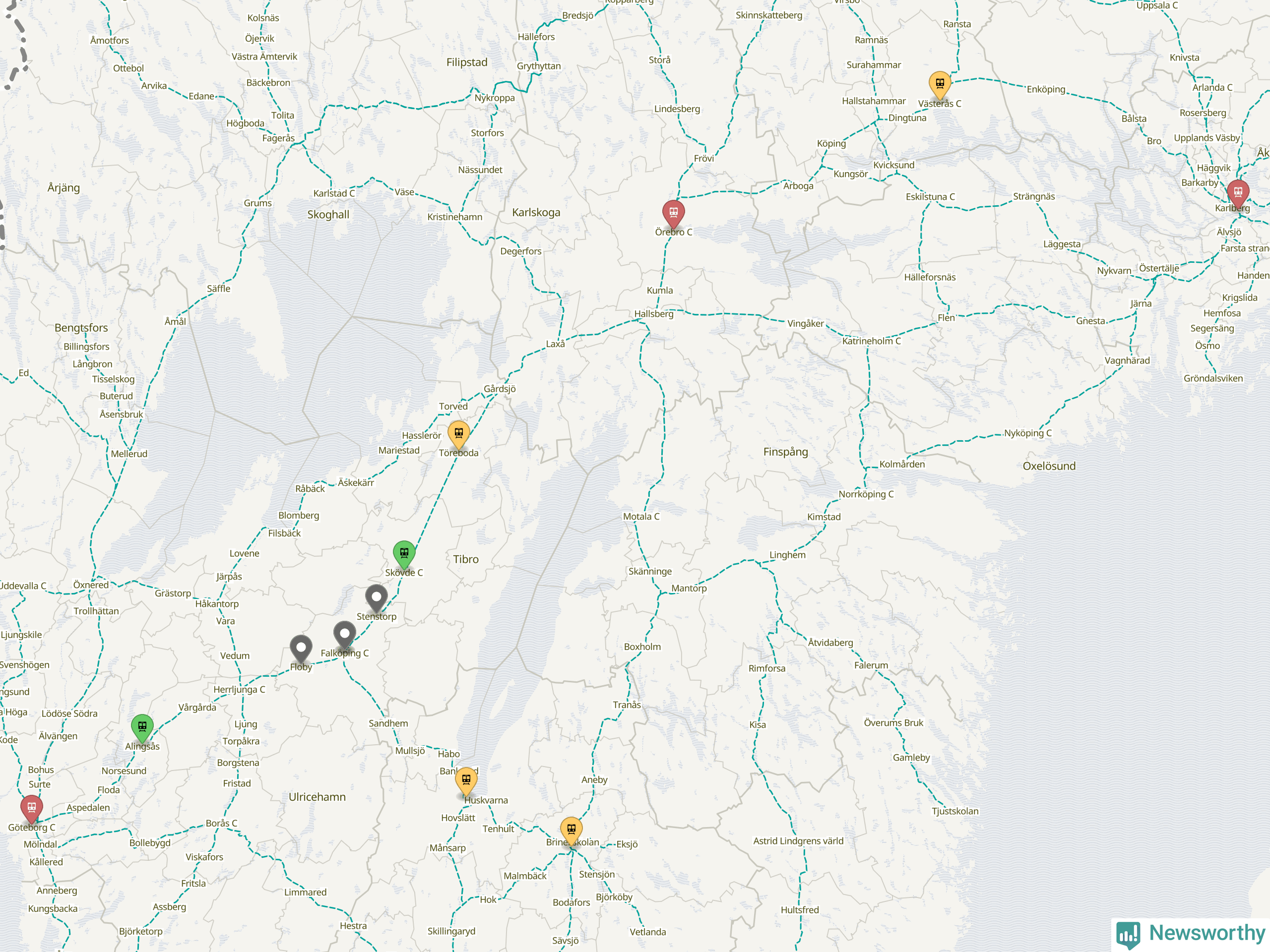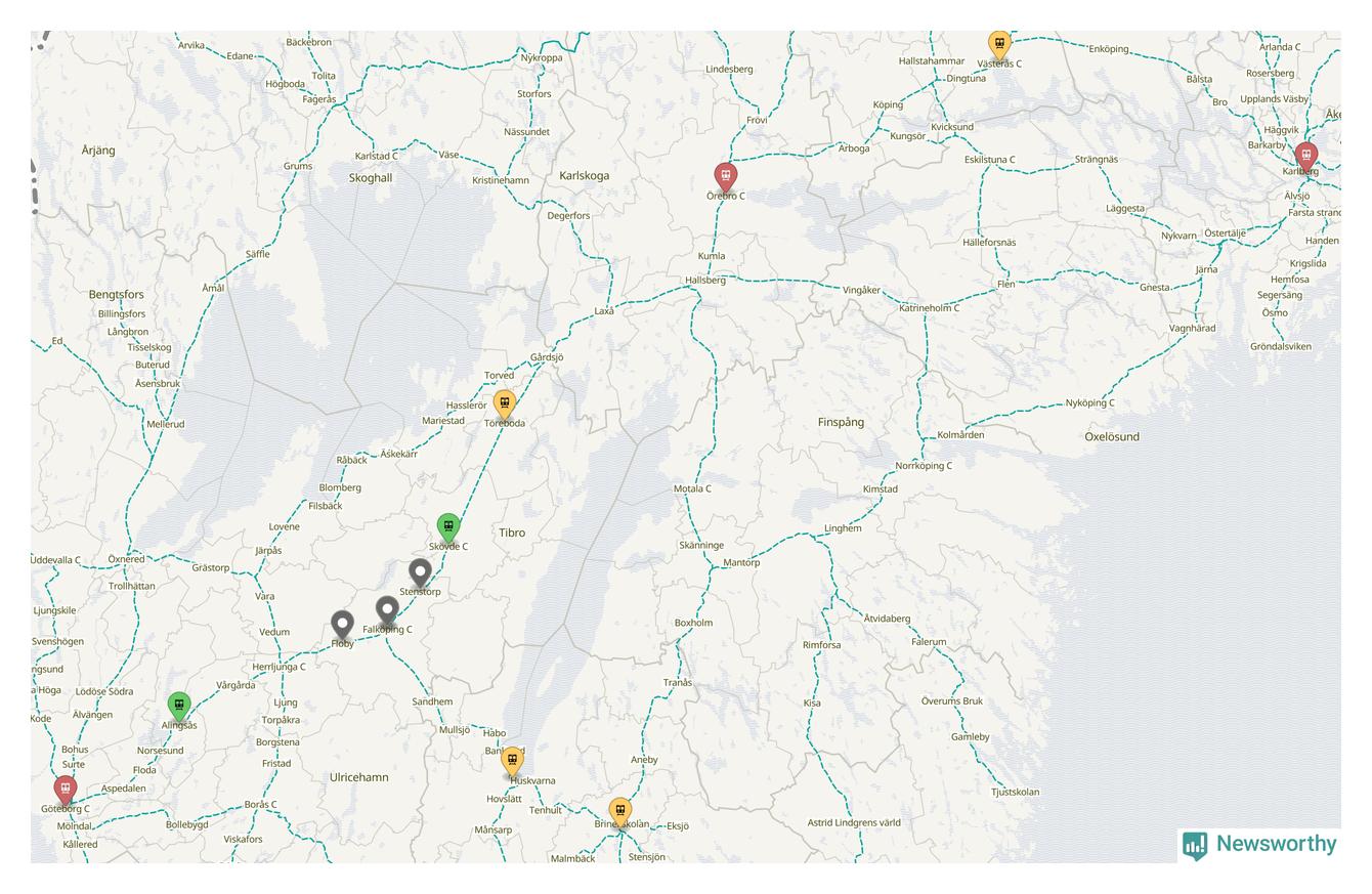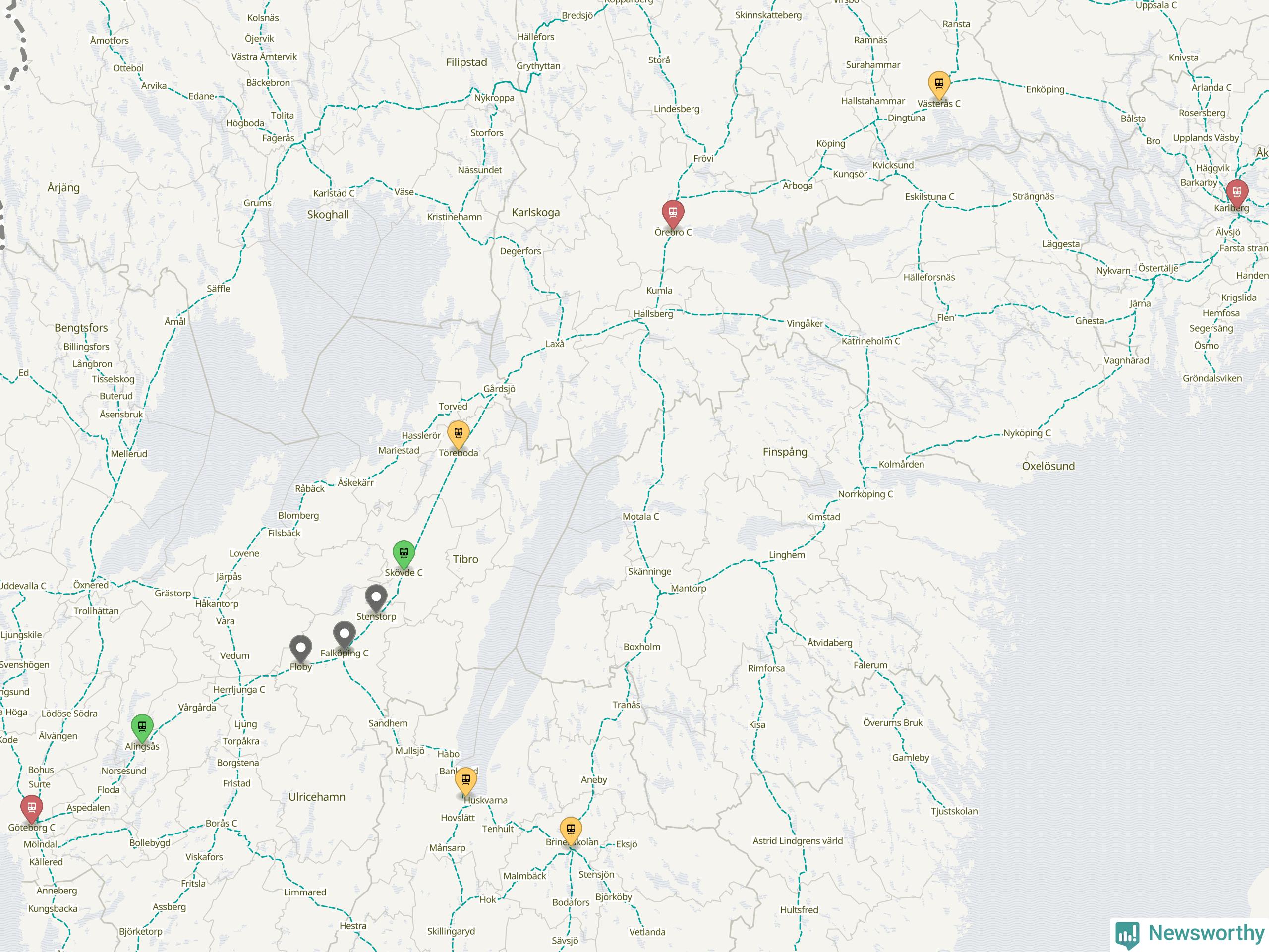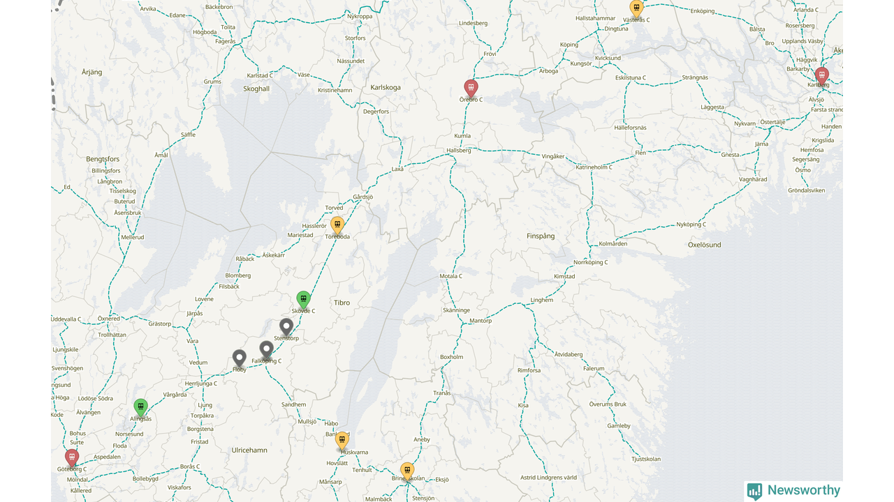 Kartdata från Mapbox, Newsworthy, OpenStreetMap och Trafikverket. Uppgifter om sträckor med passagerartrafik från jarnvag.net.
