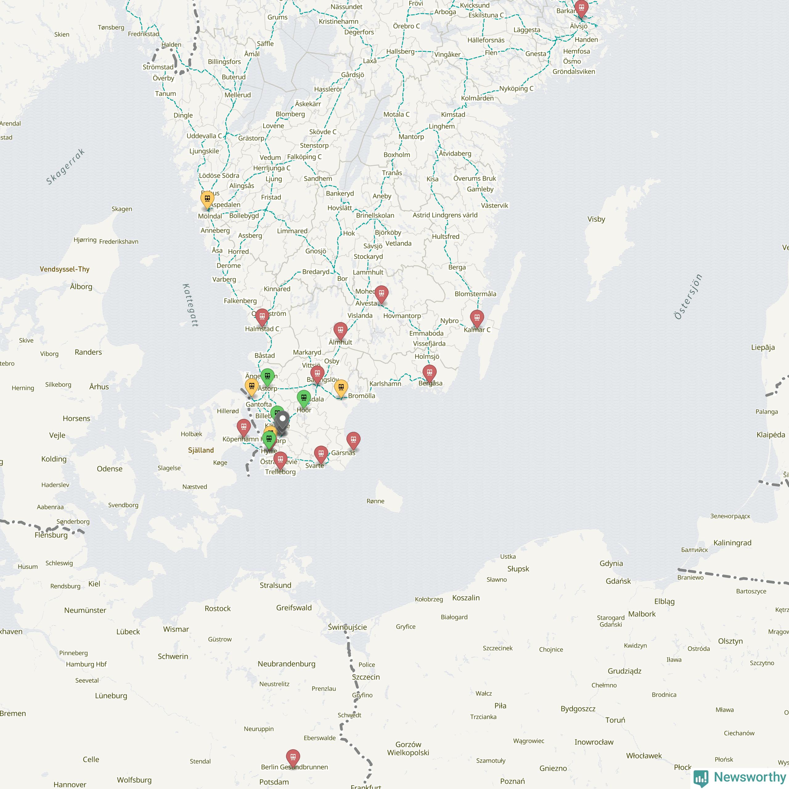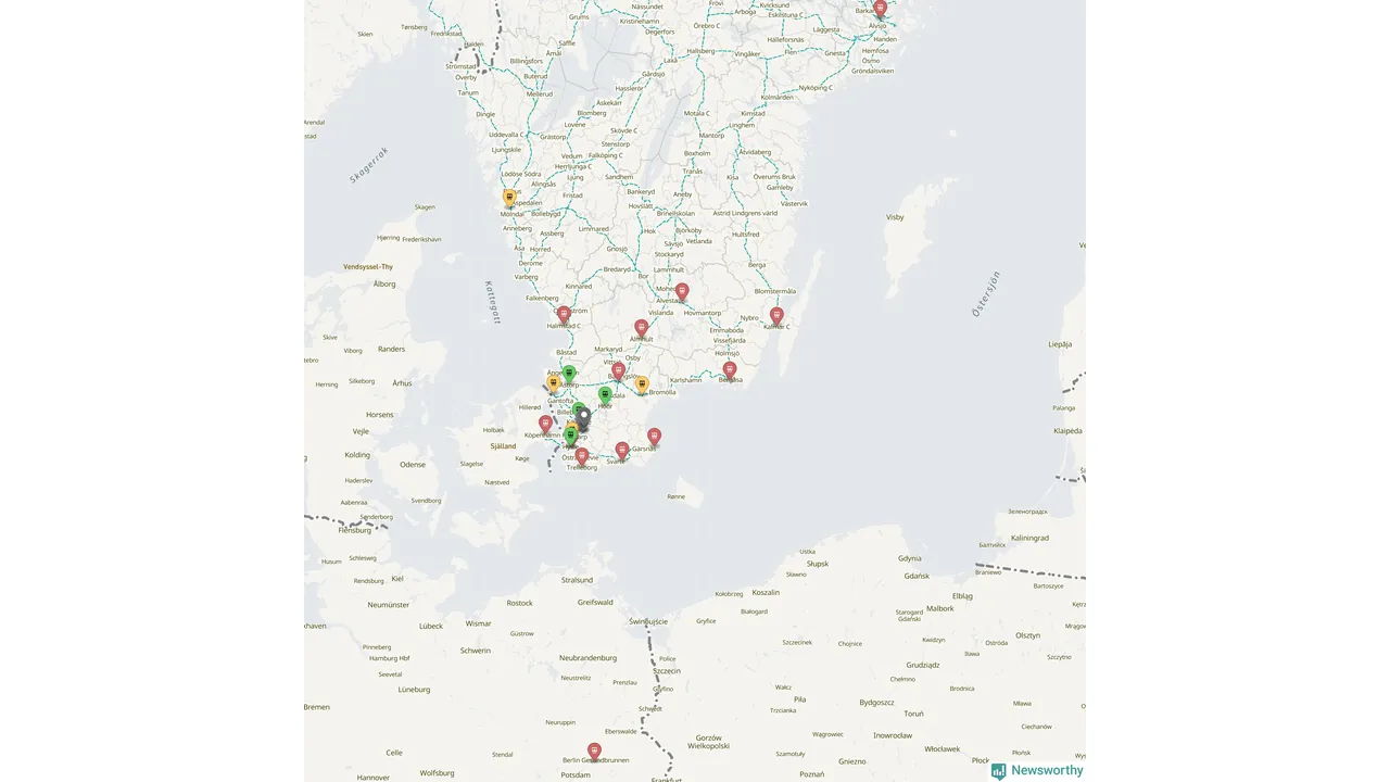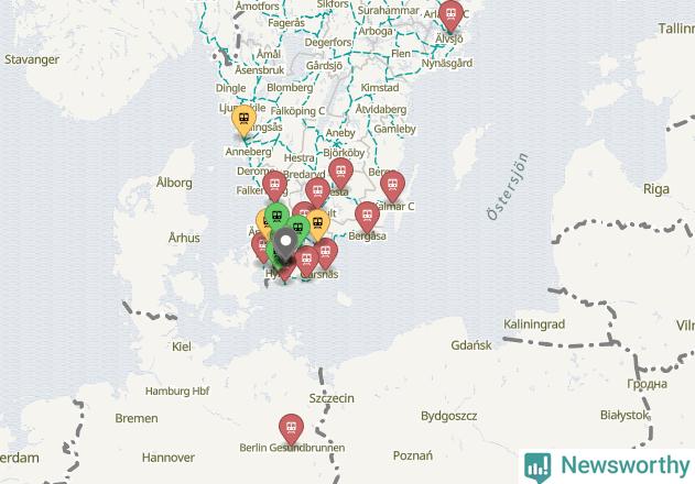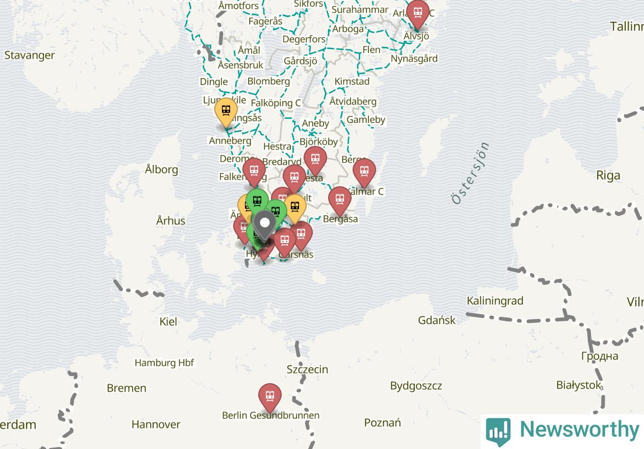 Kartdata från Mapbox, Newsworthy, OpenStreetMap och Trafikverket. Uppgifter om sträckor med passagerartrafik från jarnvag.net.