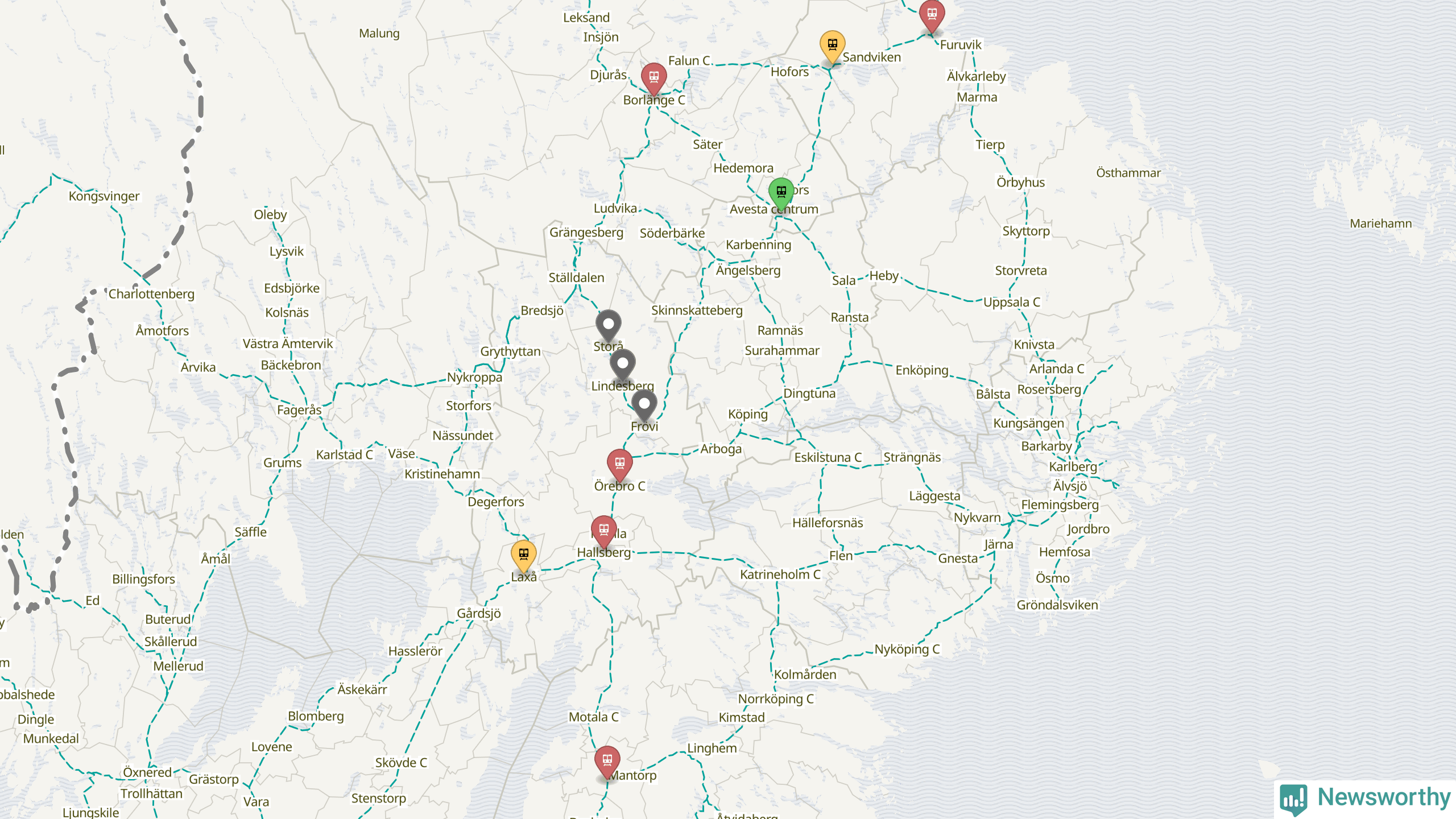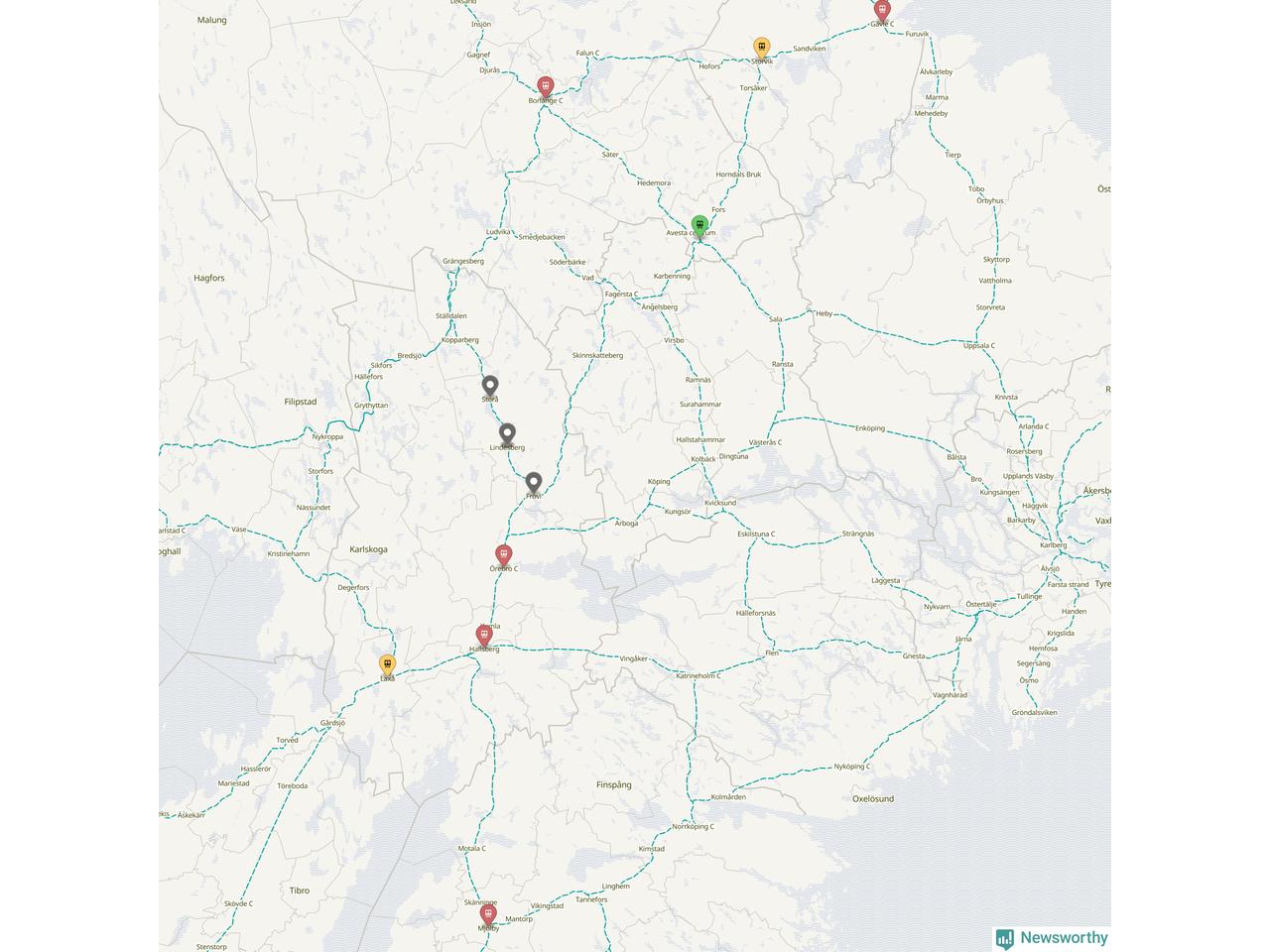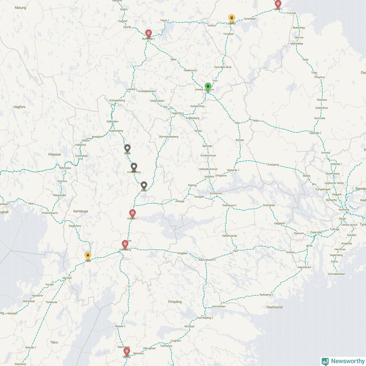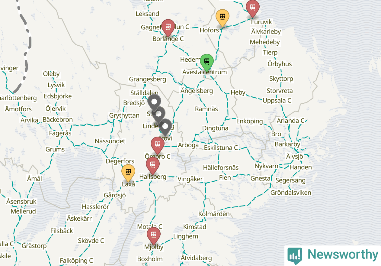 Kartdata från Mapbox, Newsworthy, OpenStreetMap och Trafikverket. Uppgifter om sträckor med passagerartrafik från jarnvag.net.