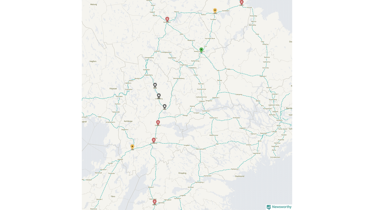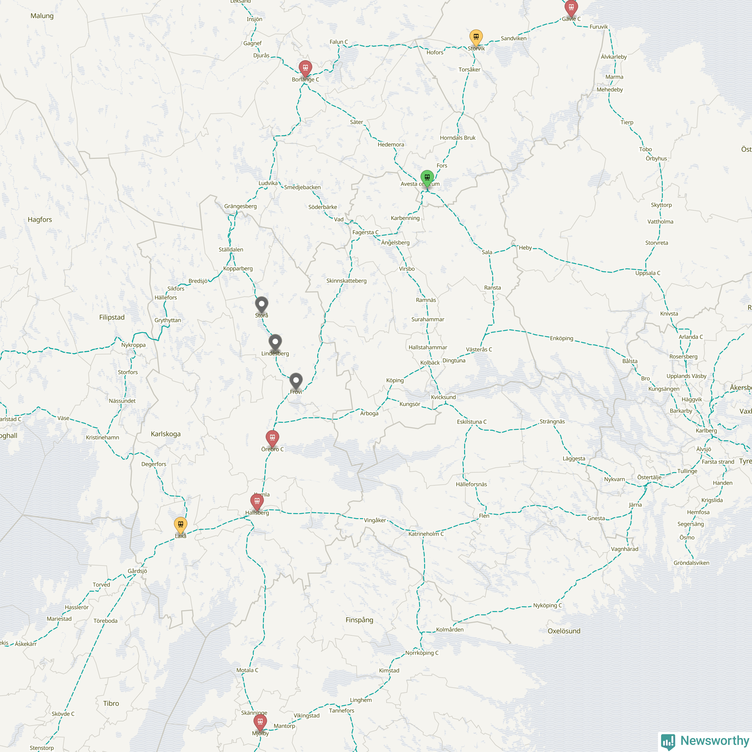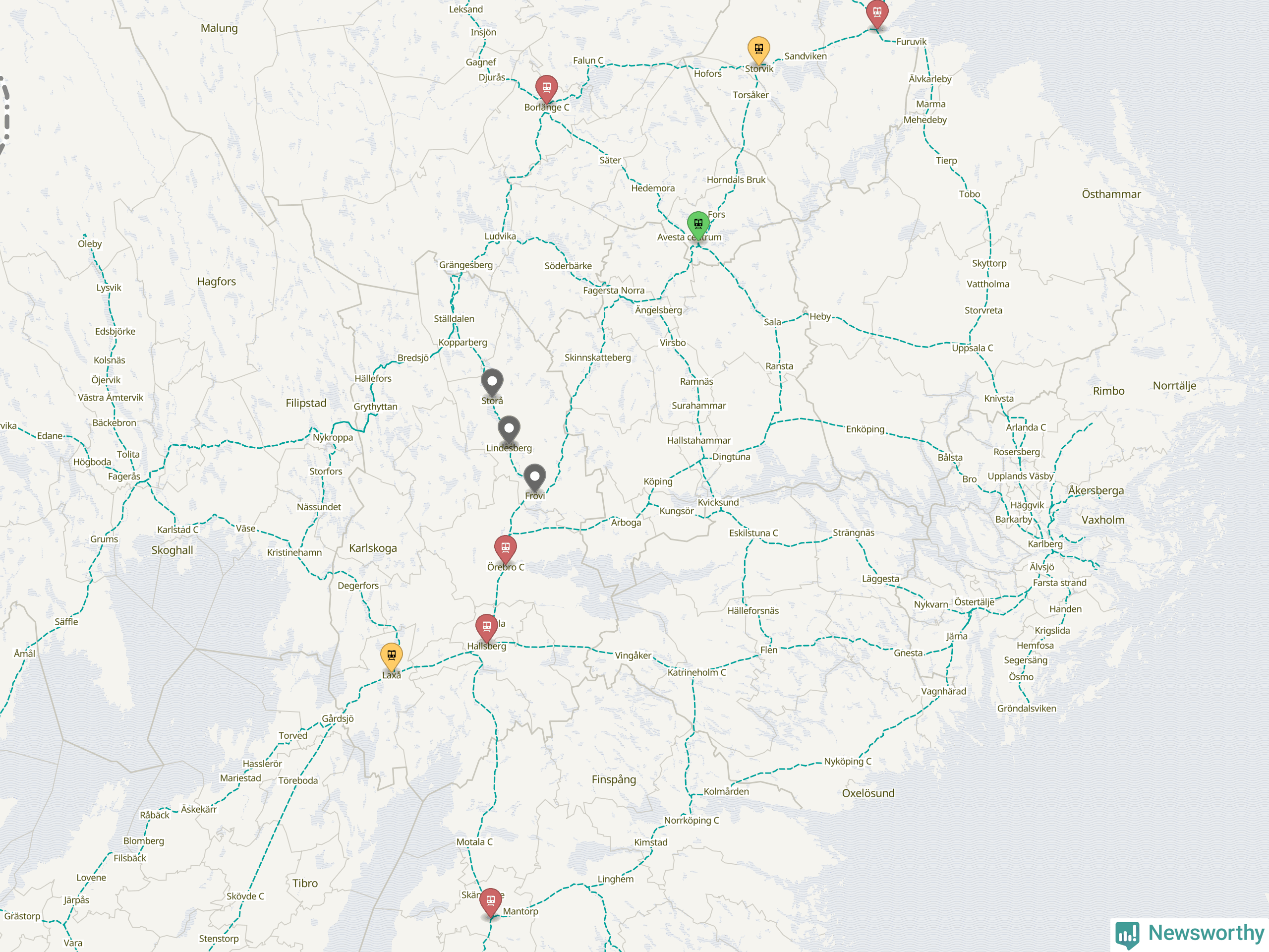 Kartdata från Mapbox, Newsworthy, OpenStreetMap och Trafikverket. Uppgifter om sträckor med passagerartrafik från jarnvag.net.