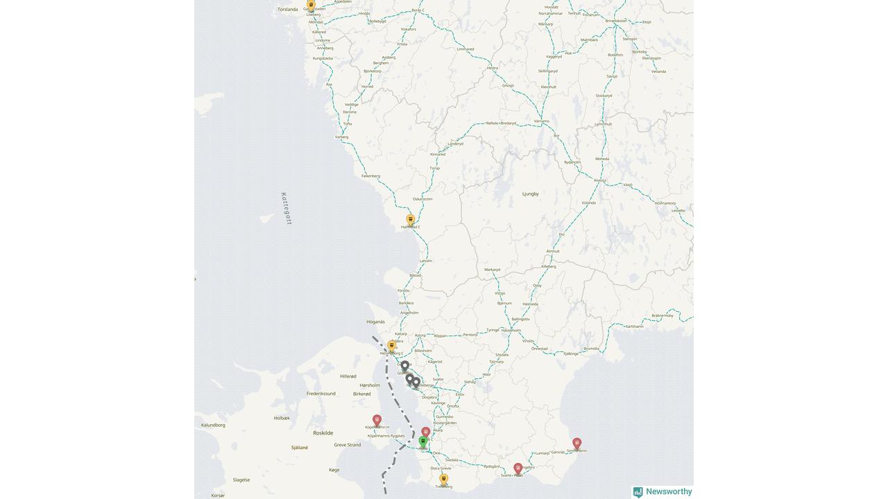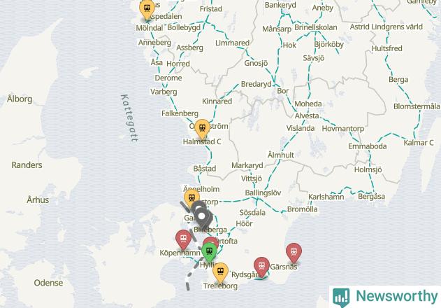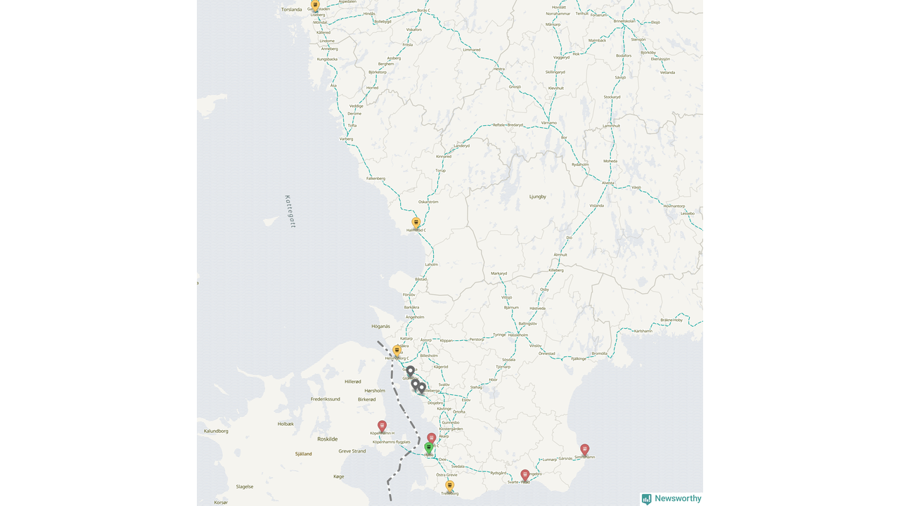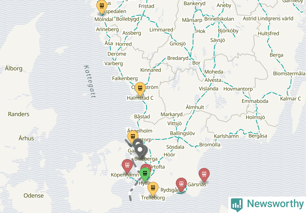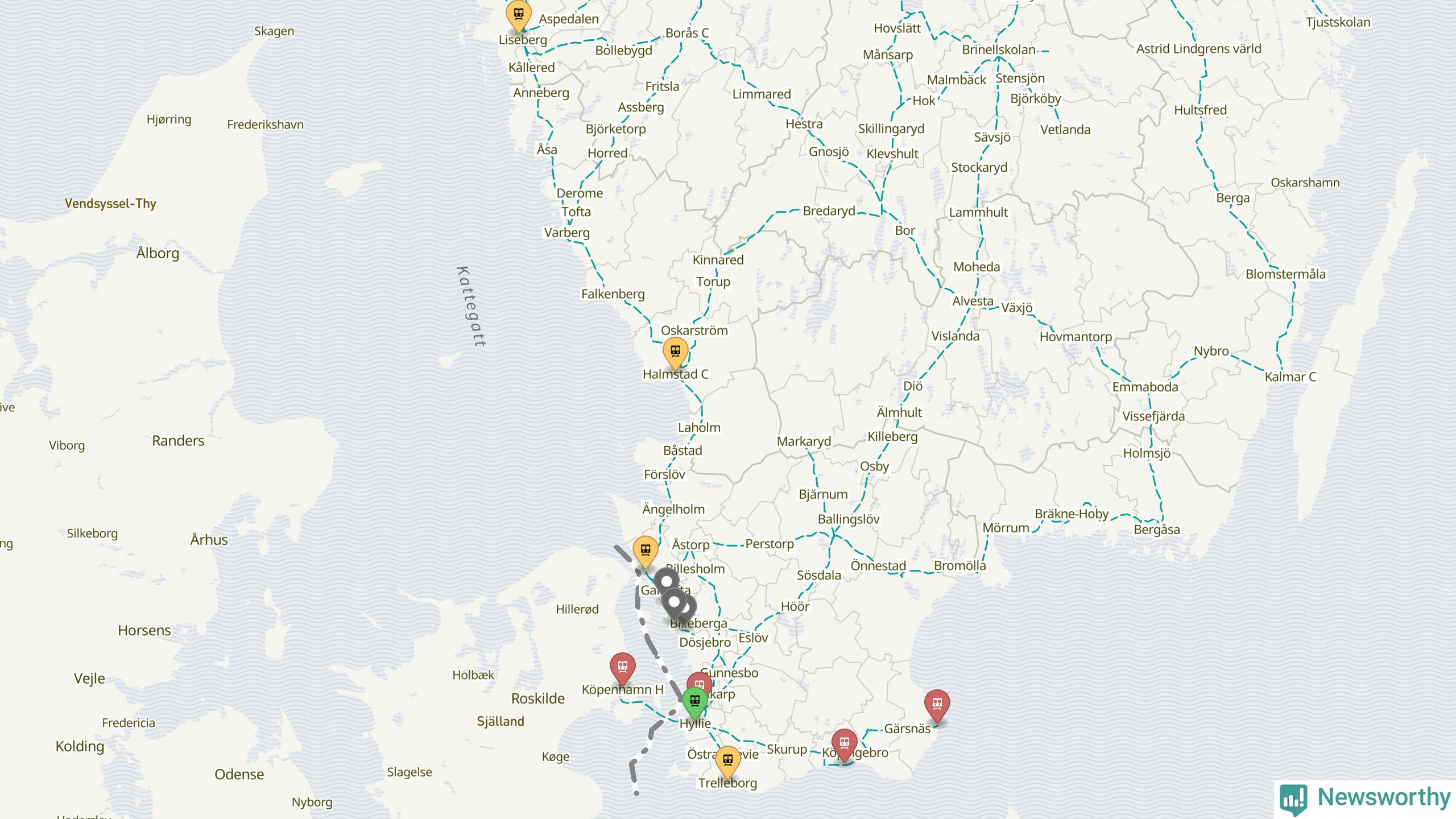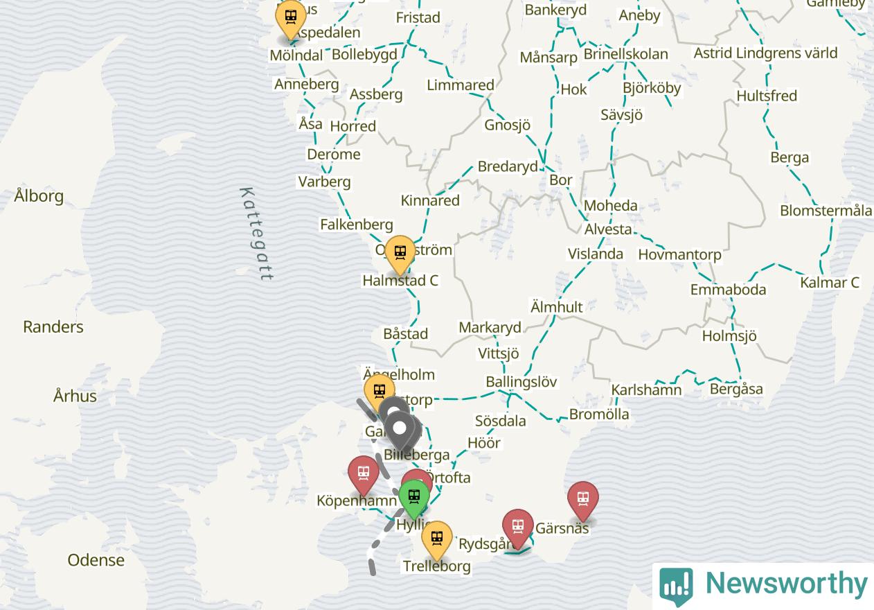 Kartdata från Mapbox, Newsworthy, OpenStreetMap och Trafikverket. Uppgifter om sträckor med passagerartrafik från jarnvag.net.