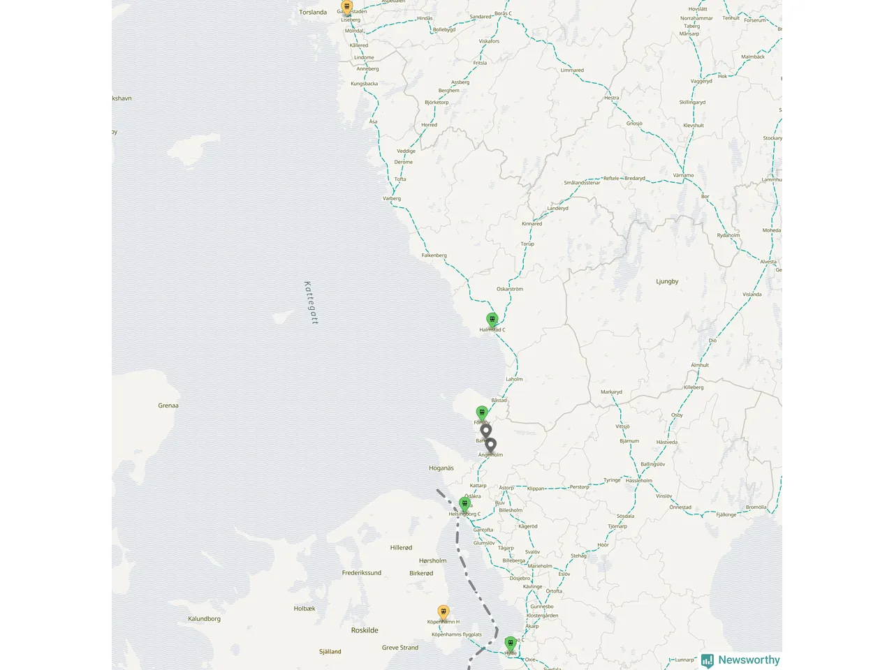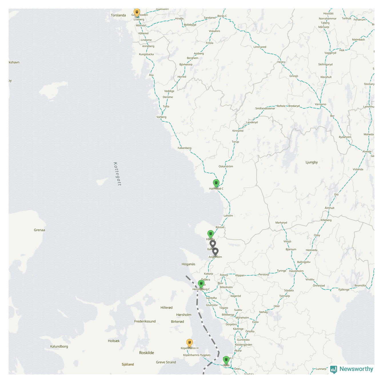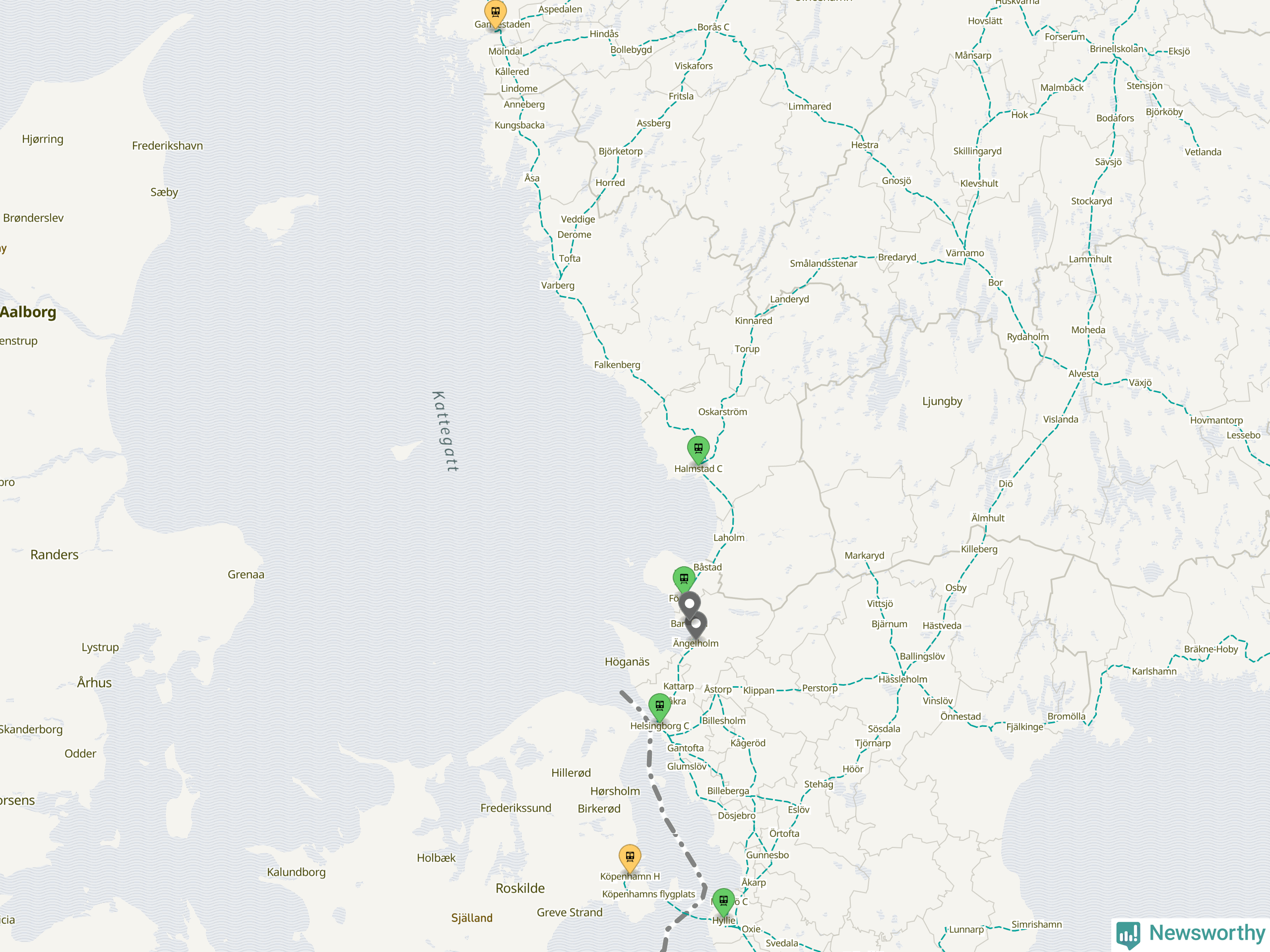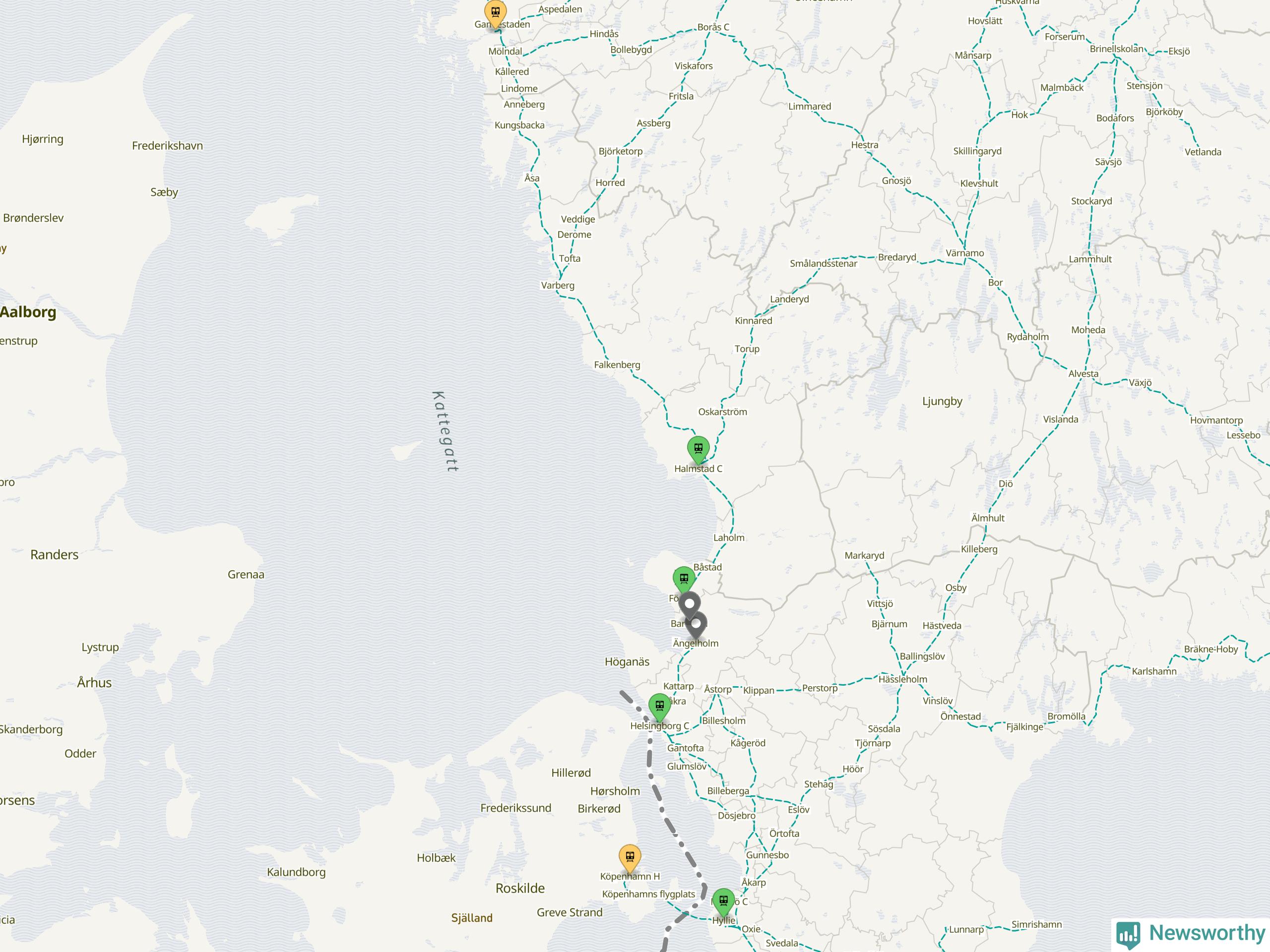 Kartdata från Mapbox, Newsworthy, OpenStreetMap och Trafikverket. Uppgifter om sträckor med passagerartrafik från jarnvag.net.