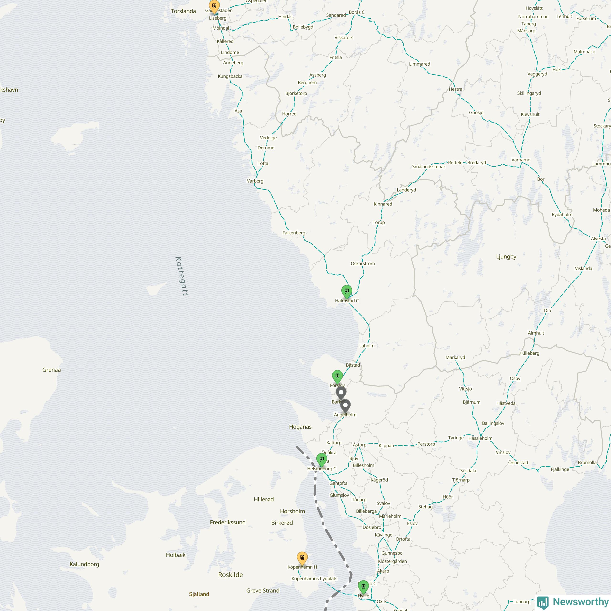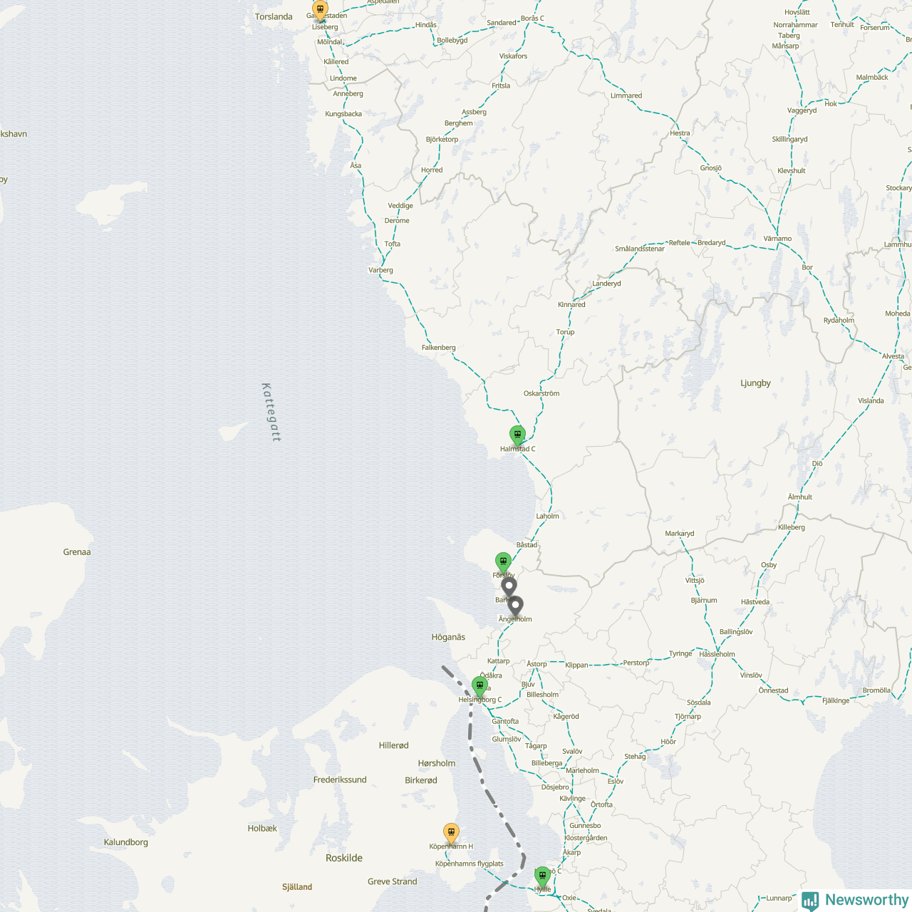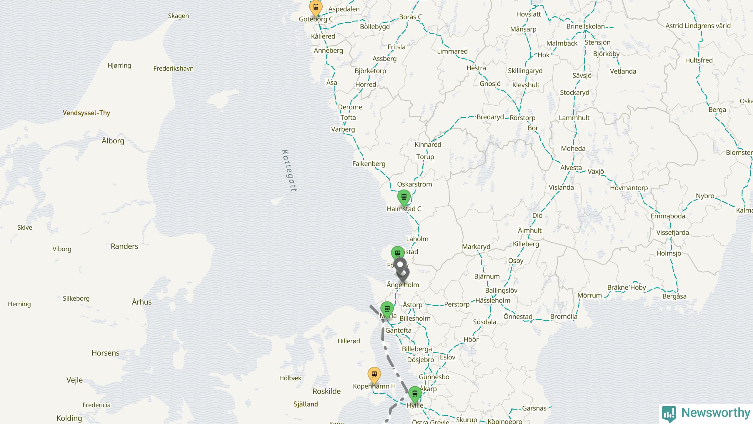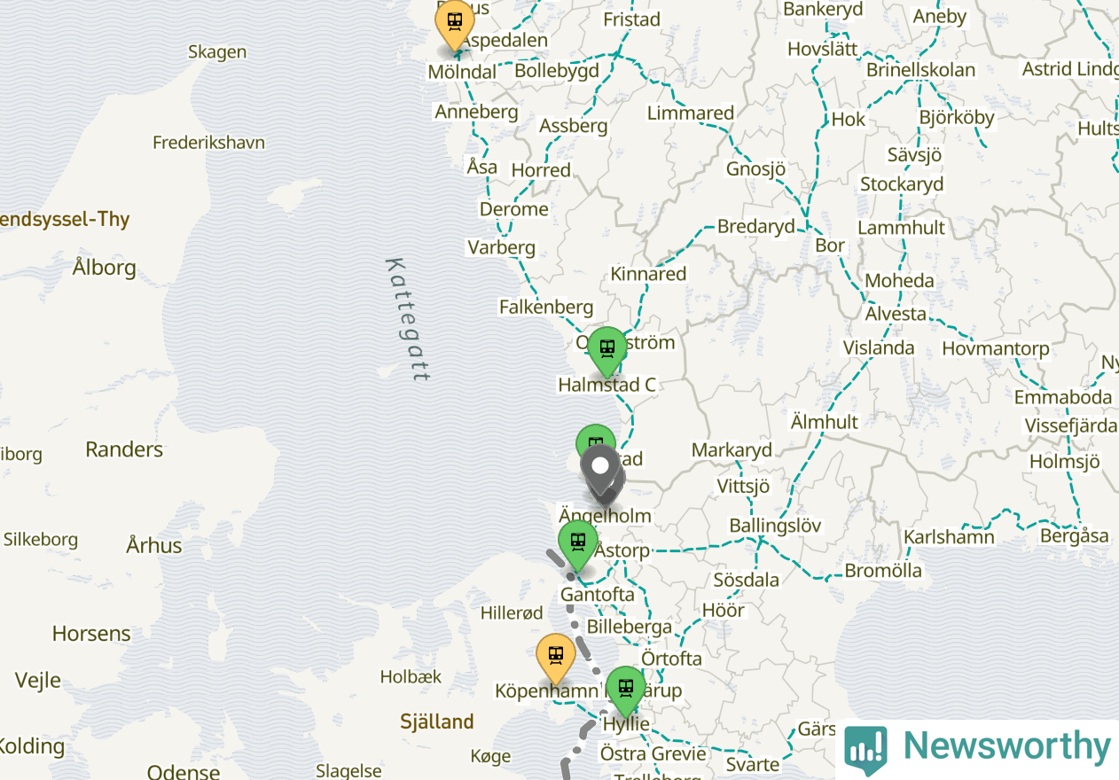 Kartdata från Mapbox, Newsworthy, OpenStreetMap och Trafikverket. Uppgifter om sträckor med passagerartrafik från jarnvag.net.