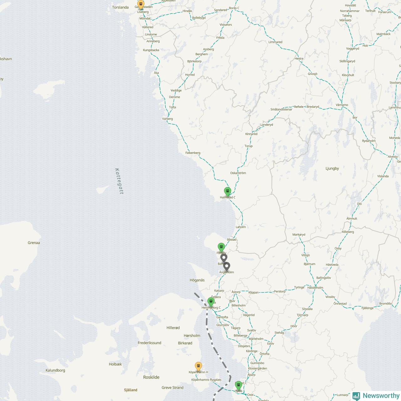 Andel försenade tåg från olika avgångsstationer till stationerna i Ängelholms kommun.