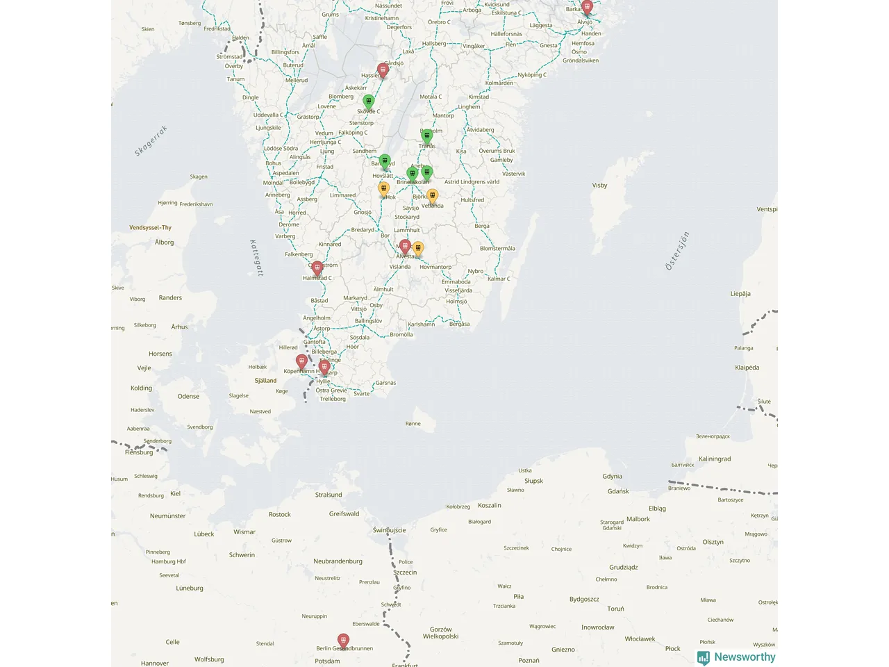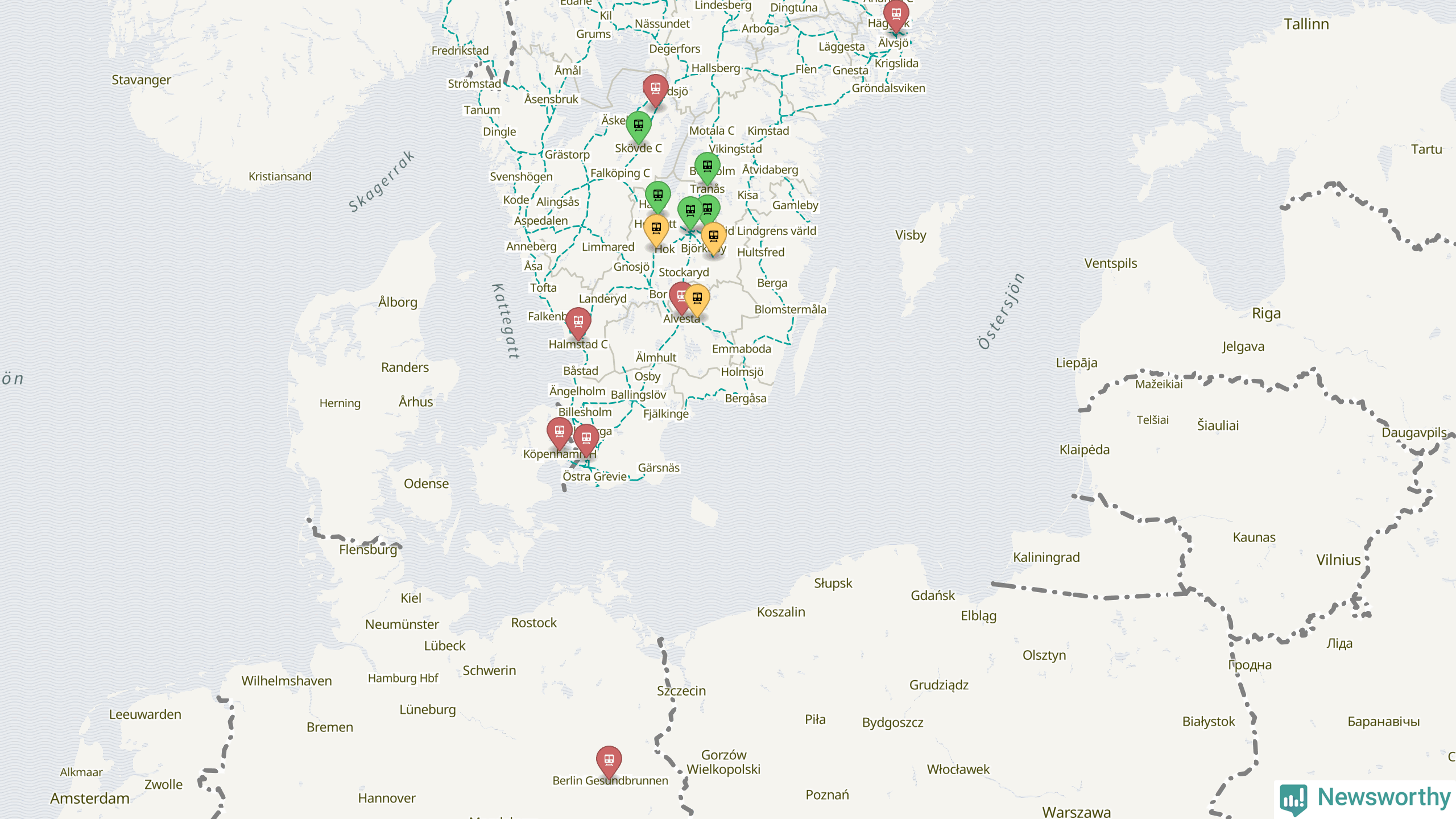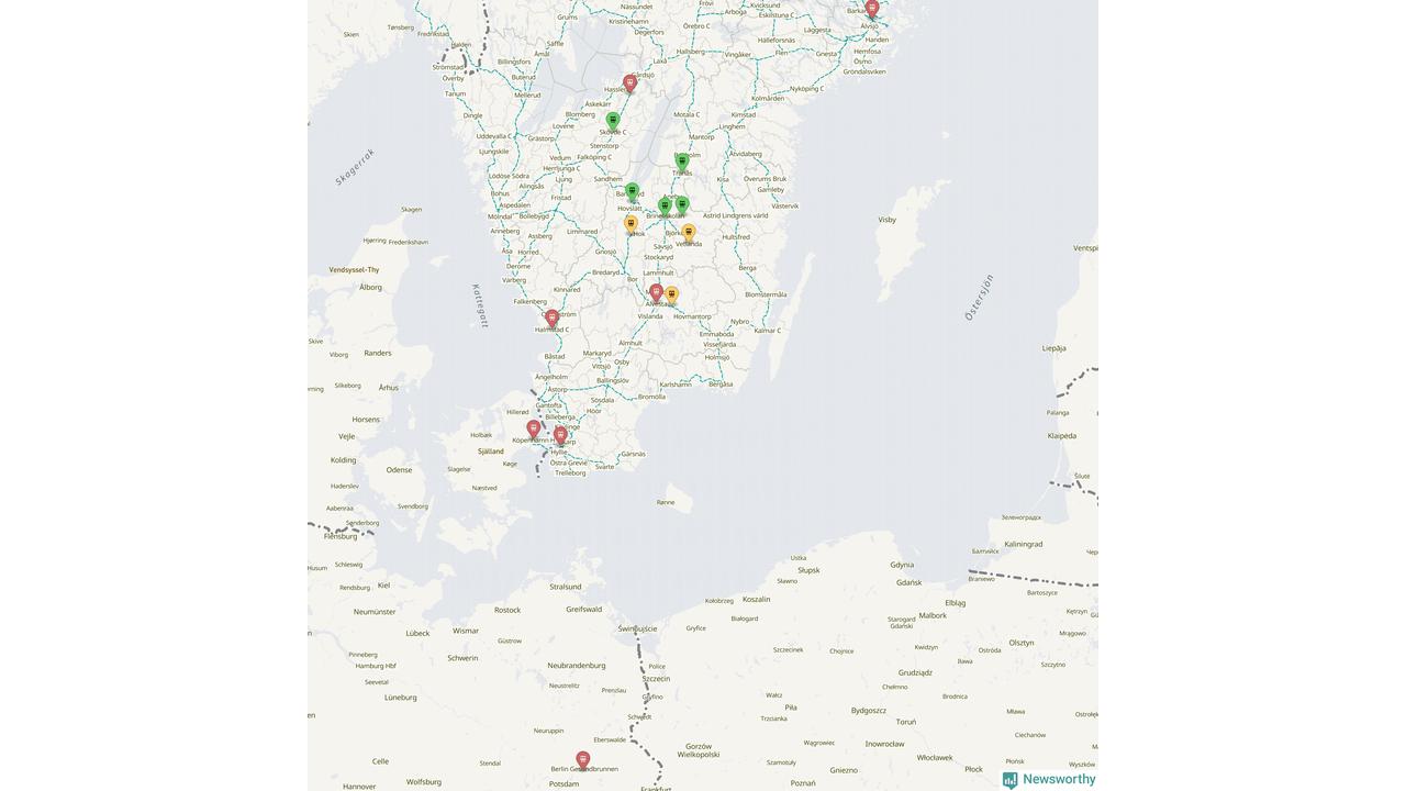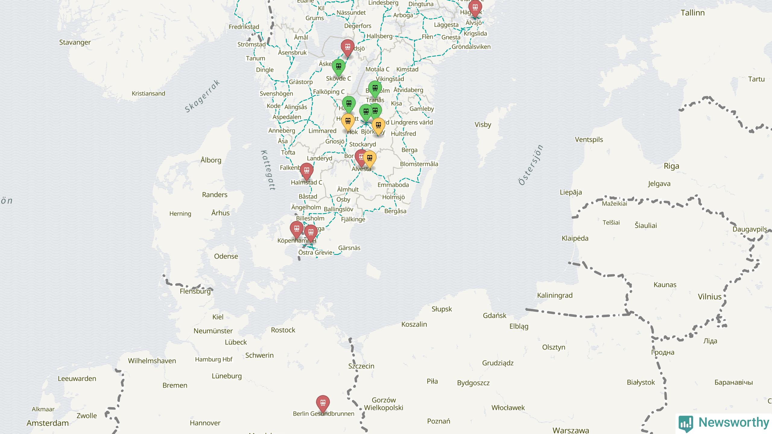 Kartdata från Mapbox, Newsworthy, OpenStreetMap och Trafikverket. Uppgifter om sträckor med passagerartrafik från jarnvag.net.