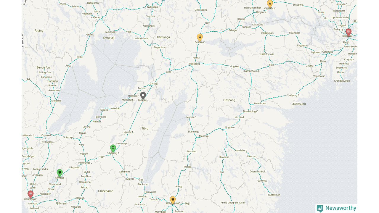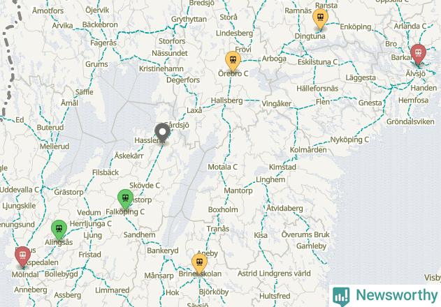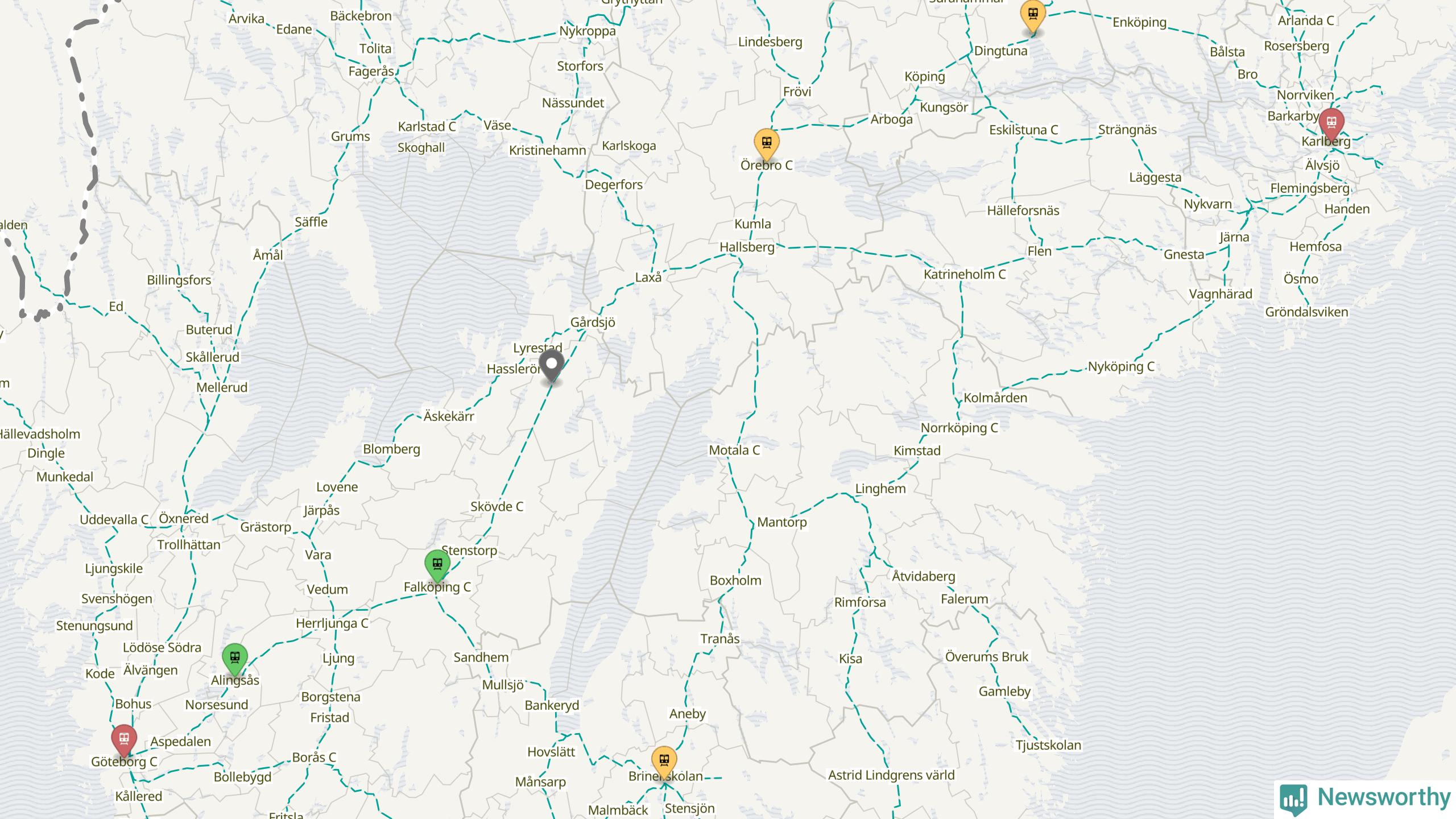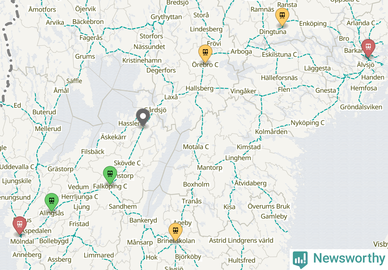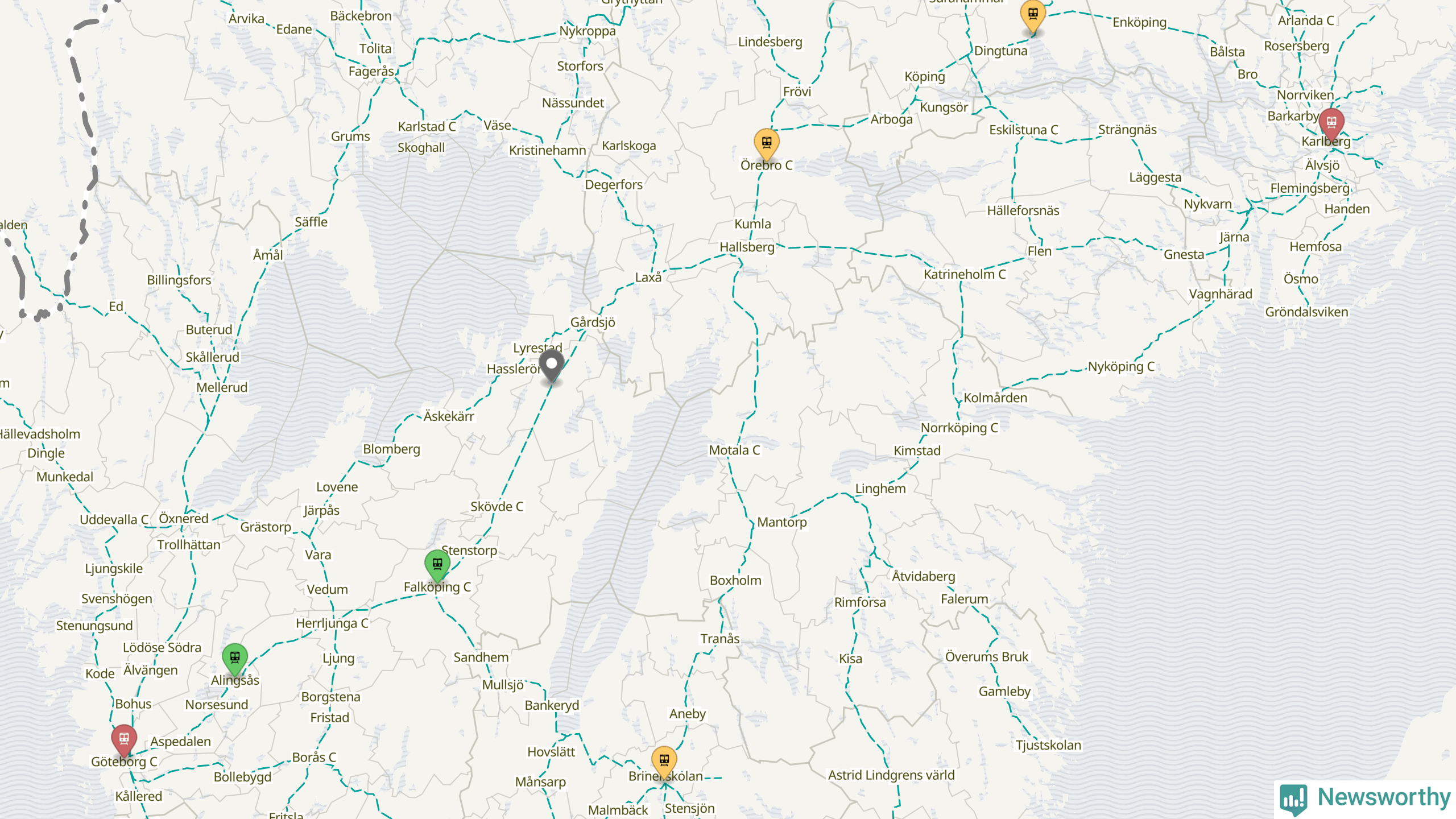 Kartdata från Mapbox, Newsworthy, OpenStreetMap och Trafikverket. Uppgifter om sträckor med passagerartrafik från jarnvag.net.