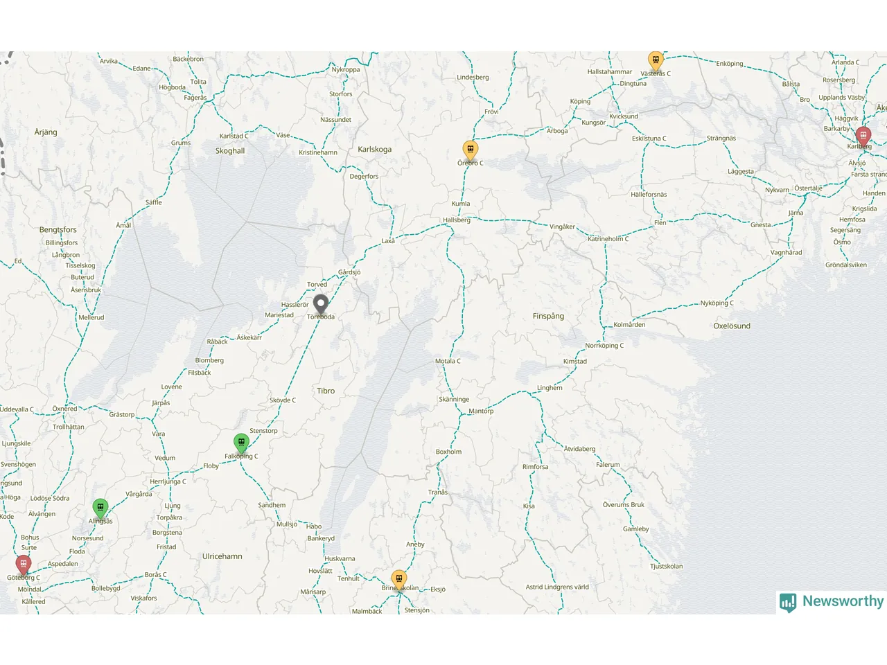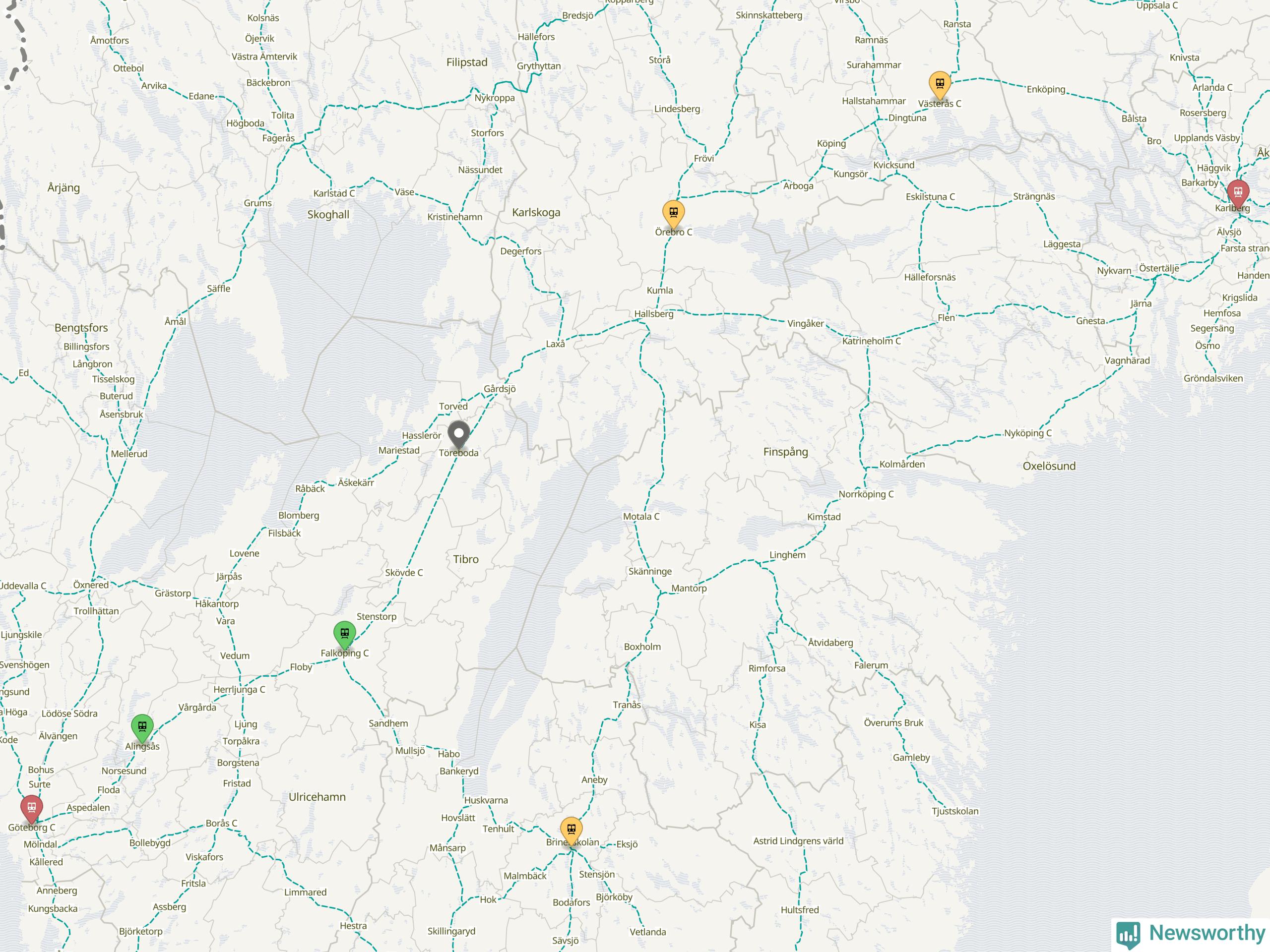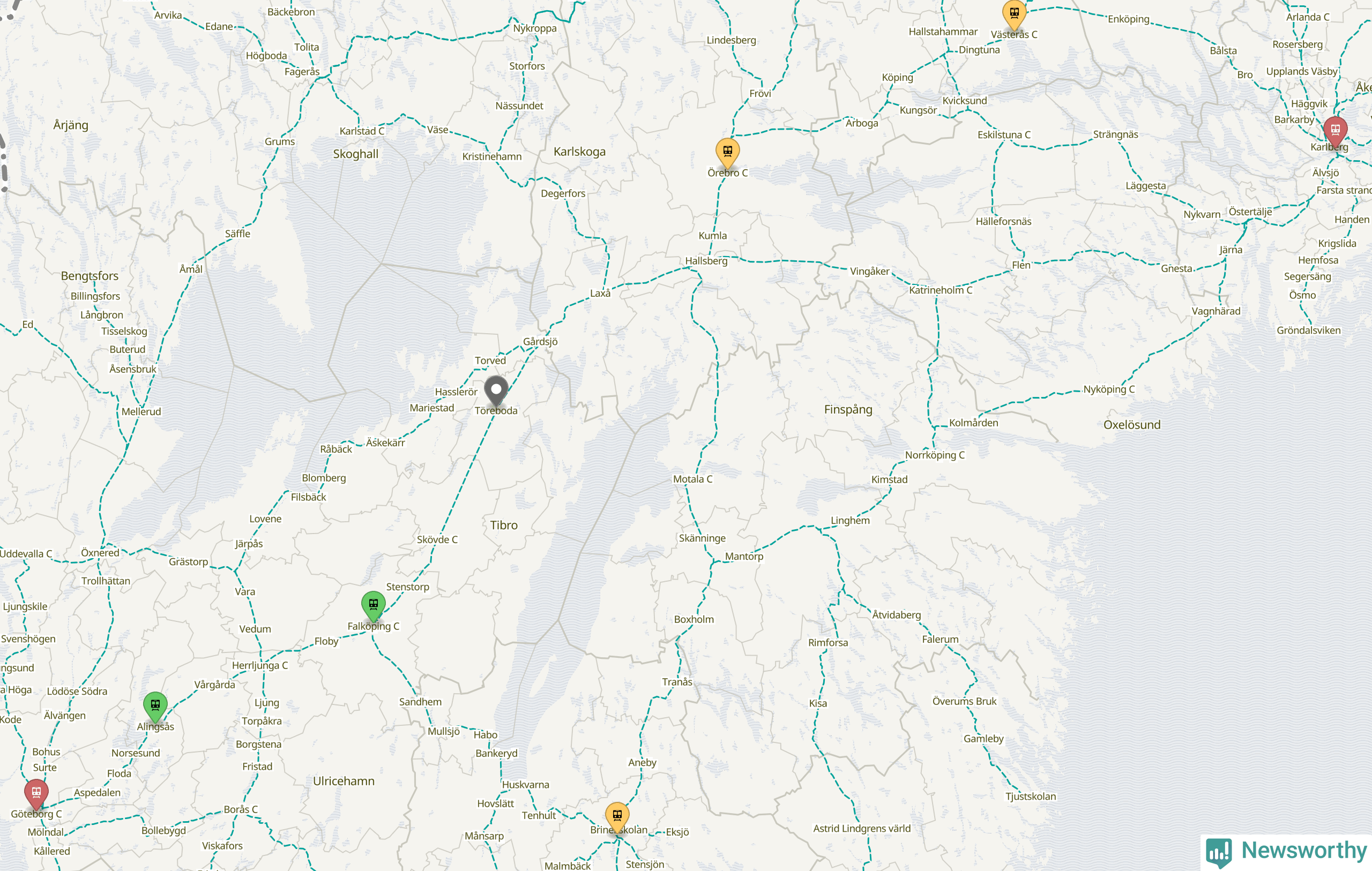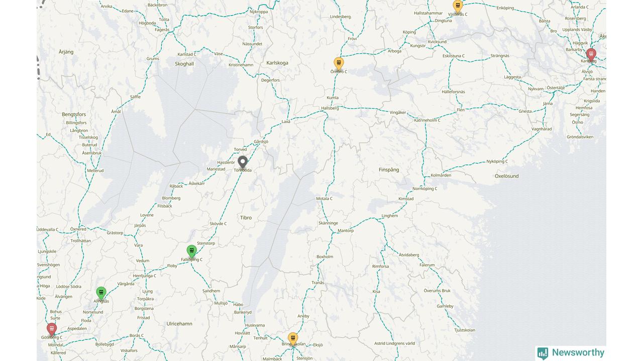 Kartdata från Mapbox, Newsworthy, OpenStreetMap och Trafikverket. Uppgifter om sträckor med passagerartrafik från jarnvag.net.