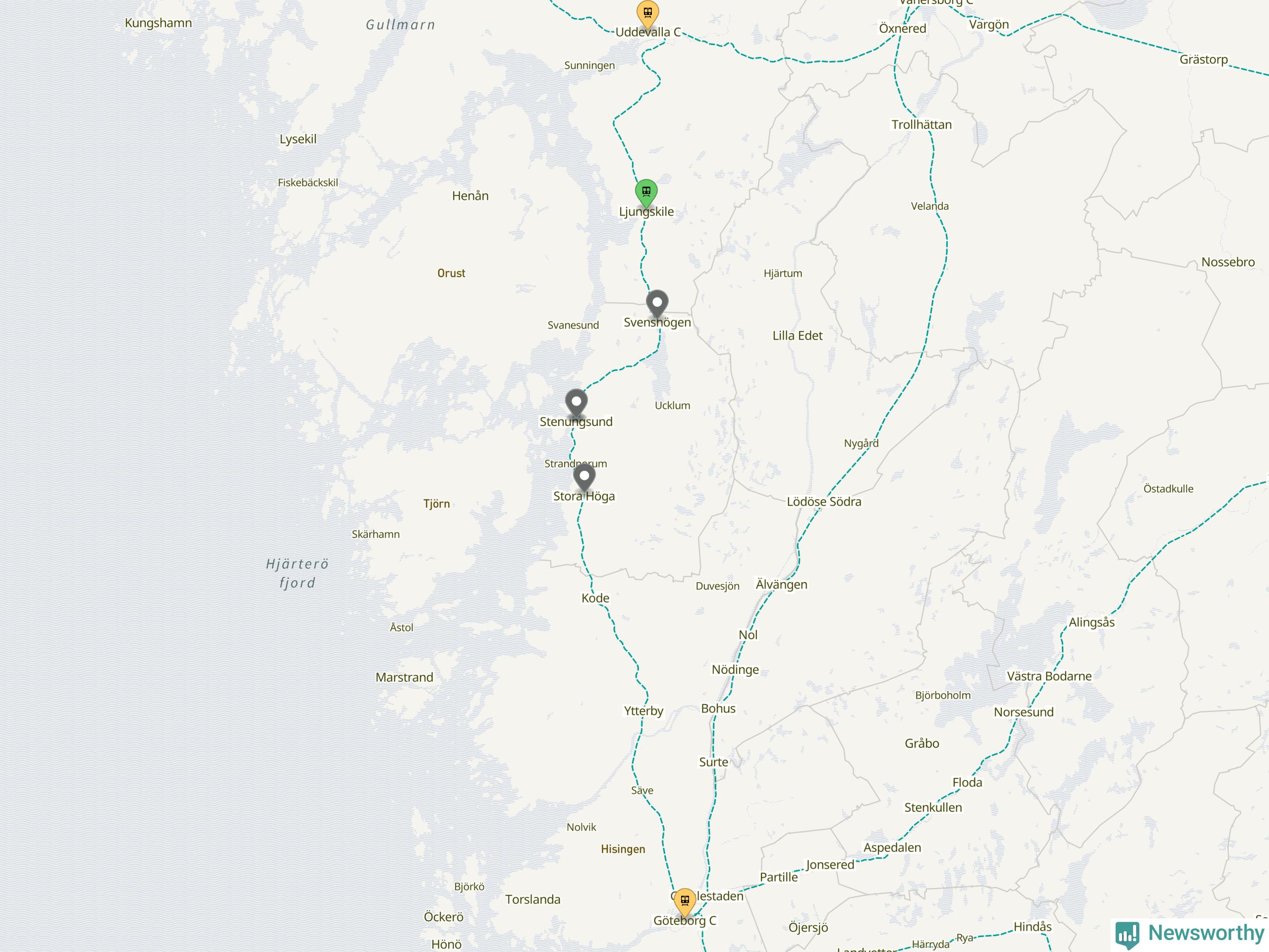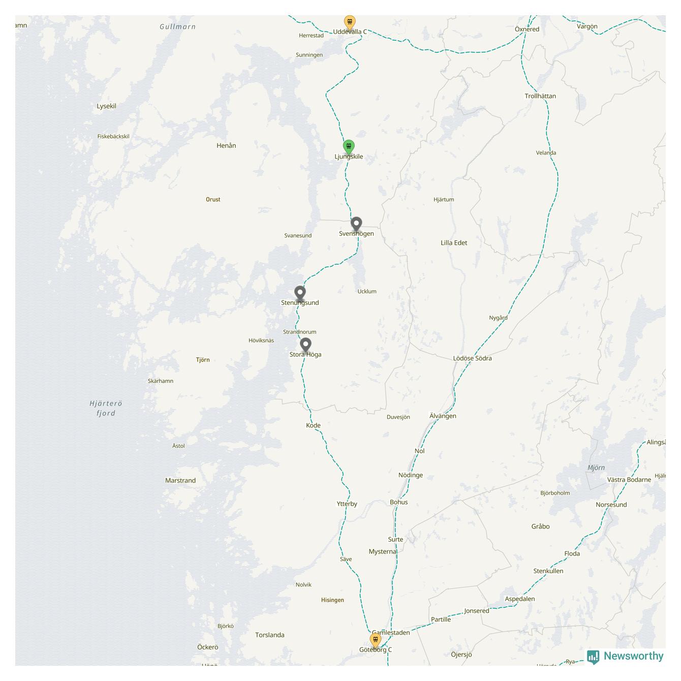 Av drygt 1 400 tåg som passerade Stenungsund, Stora Höga eller Svenshögen i september var 71 mer än fem minuter sena. Det motsvarar 5 procent, vilket är bättre än den nationella målsättningen som säger att inte mer än fem procent av tågen ska vara sena.