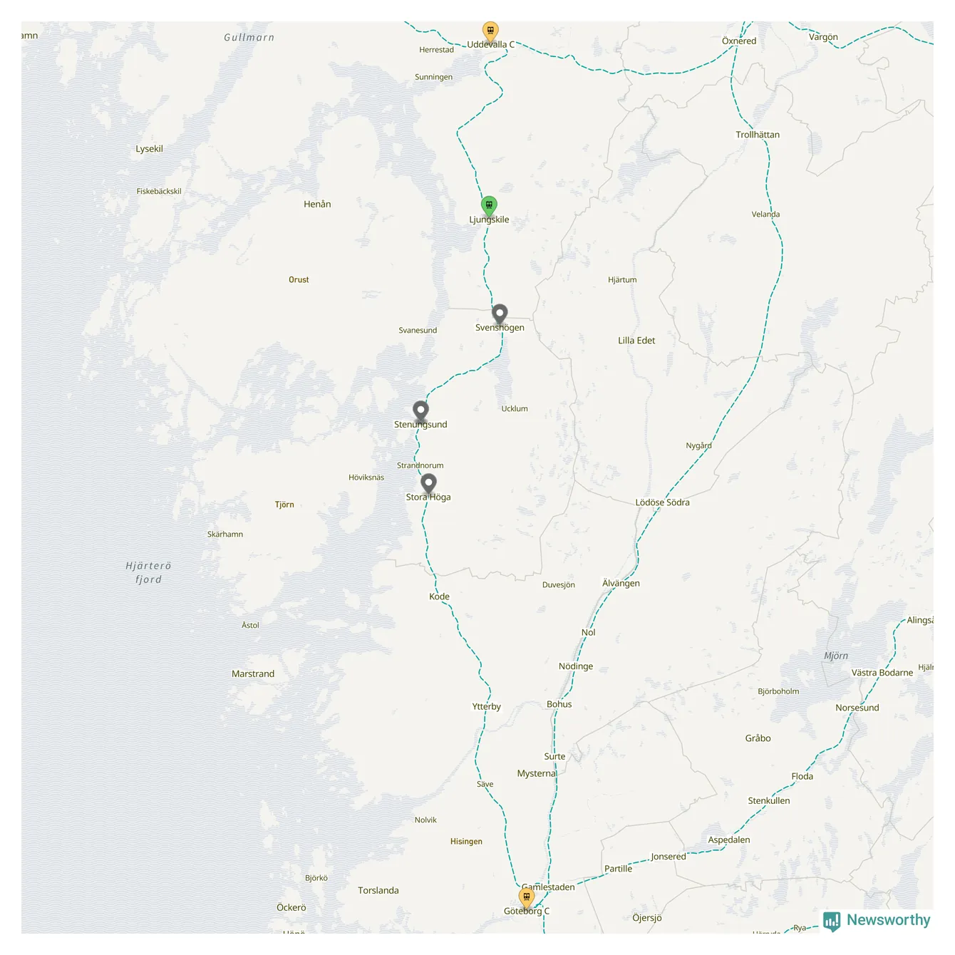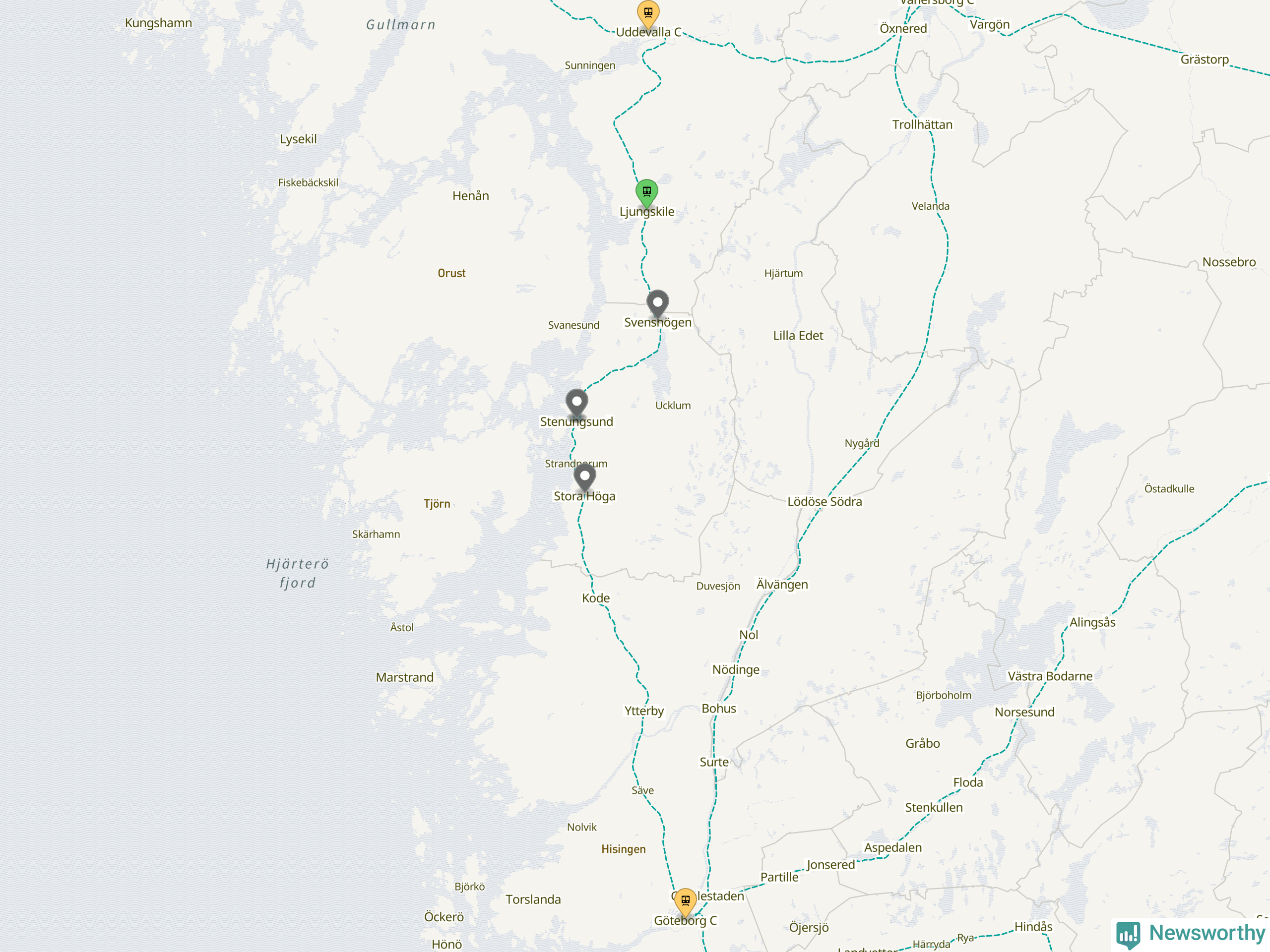 Kartdata från Mapbox, Newsworthy, OpenStreetMap och Trafikverket. Uppgifter om sträckor med passagerartrafik från jarnvag.net.