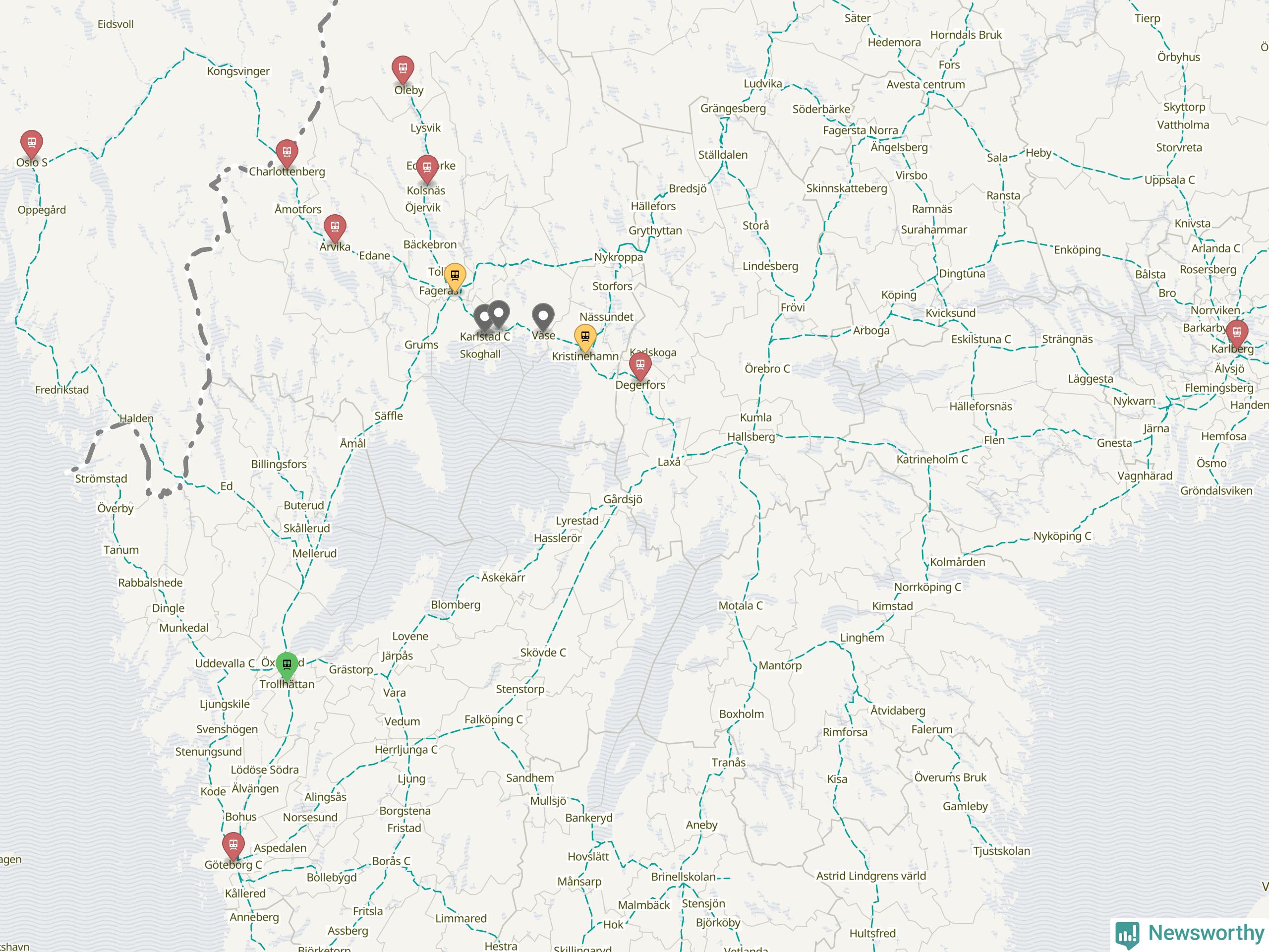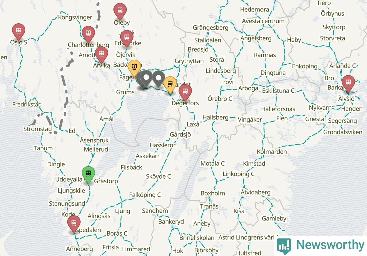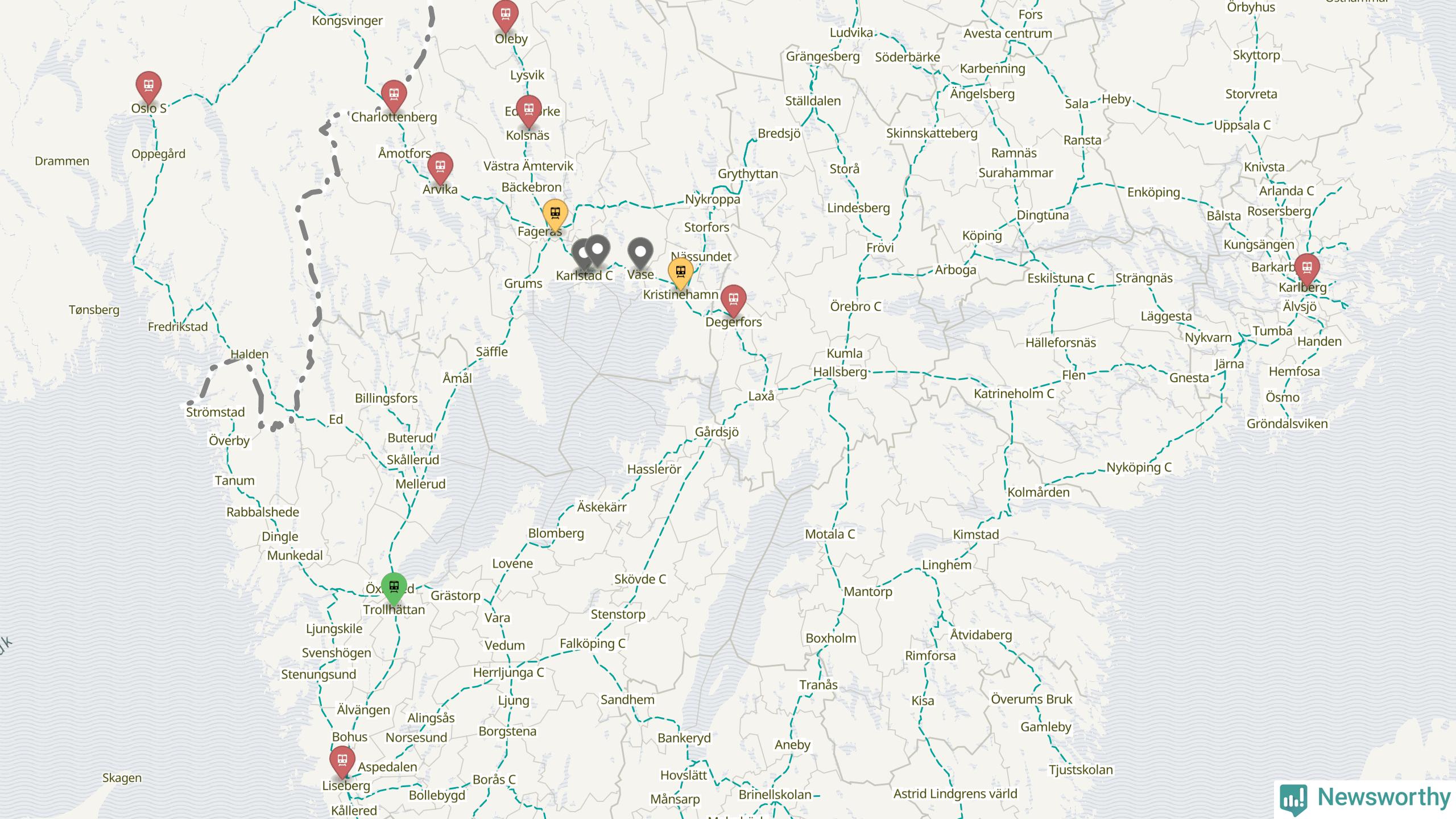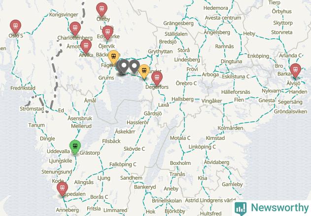 Kartdata från Mapbox, Newsworthy, OpenStreetMap och Trafikverket. Uppgifter om sträckor med passagerartrafik från jarnvag.net.